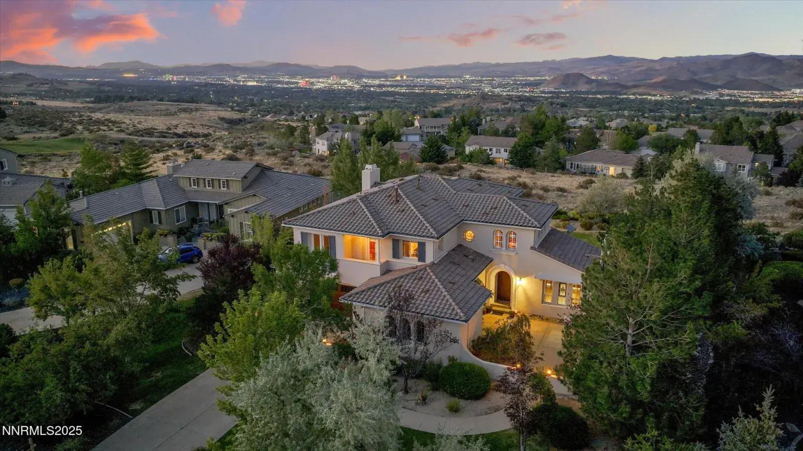 Perfectly positioned on a private cul-de-sac overlooking the 17th hole of the Legend Course, this 4,154-square-foot ArrowCreek residence on just under an acre, captures sweeping city and mountain views. Inside, elegant design meets everyday comfort with five bedrooms, a private office, and a den. The chef’s kitchen features granite countertops, high-end appliances, and an oversized island—perfect for entertaining. The primary retreat includes a cozy reading nook and fireplace, all framed by stunning city views. For those seeking elevation without extremes, resort-style amenities, and unmatched proximity to Lake Tahoe, this is it. ArrowCreek is Reno’s premier gated golf community, offering pools, spa, fitness center, tennis, pickleball, dog park, scenic trails, and 24-hour security—all included with HOA. Residents also enjoy the privilege of living within The Club at ArrowCreek, featuring two championship 18-hole courses and upscale dining. Following a recent 60 million expansion, the Club now offers a 25,000-square-foot pool complex with three pools, an expanded clubhouse with refined dining and event spaces, a state-of-the-art fitness center, and an indoor pickleball facility, creating a true resort lifestyle just minutes from Tahoe.