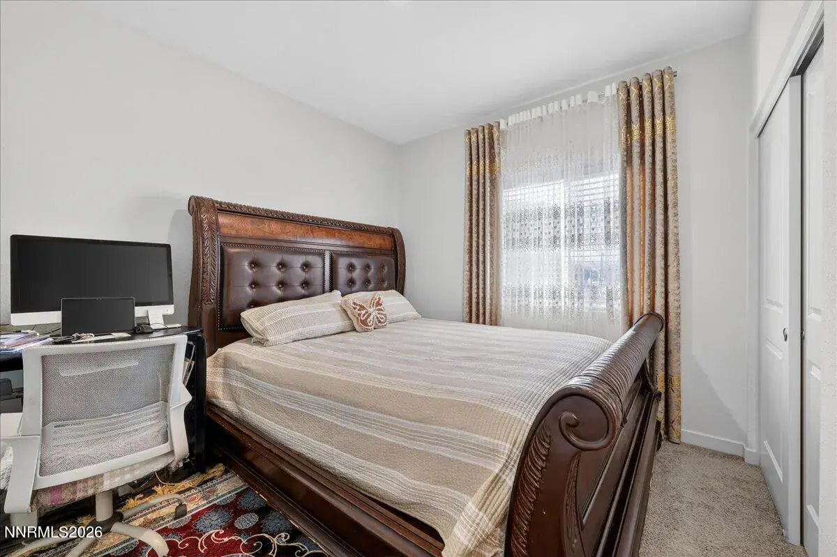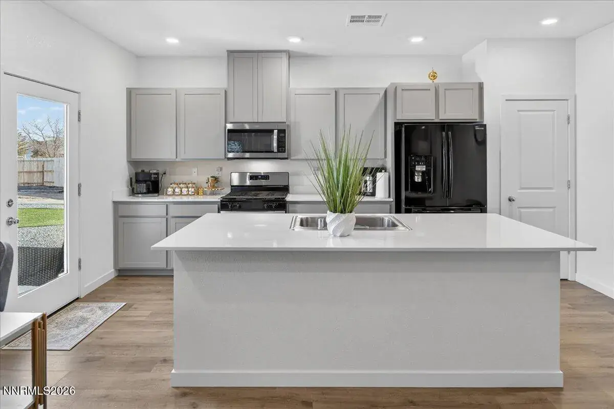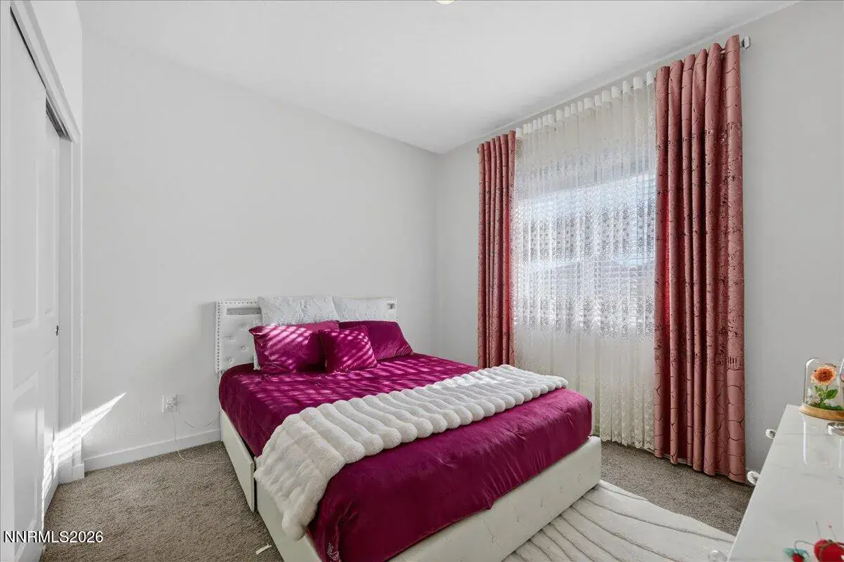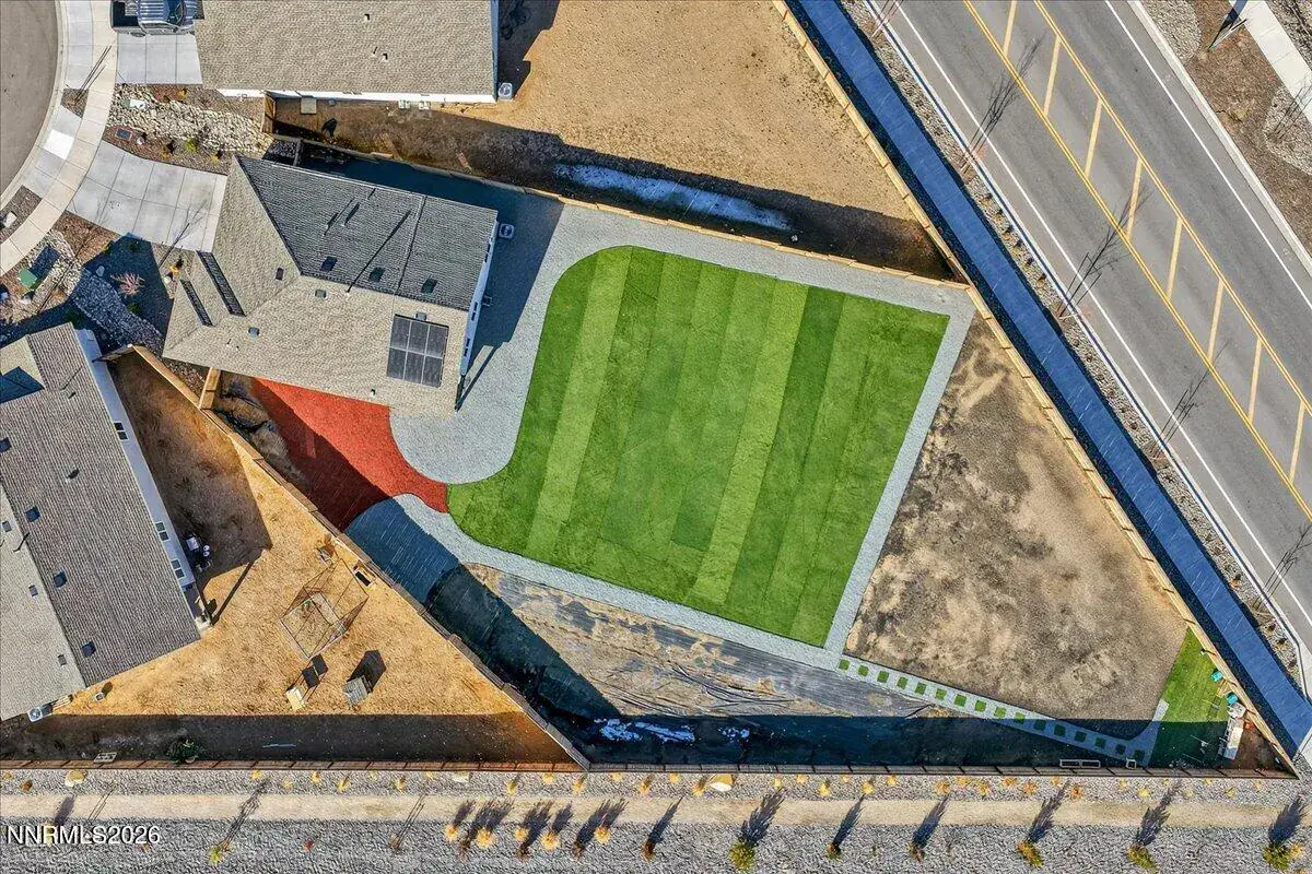 Rare North Valleys Opportunity with Massive Oversized Lot and Assumable Loan. Nearly new 2024 single-story home offering 3 bedrooms, 2 bathrooms, and 1,503 sq ft of modern living on a lot nearly four times larger than most in the neighborhood. Enjoy mountain views, smart-home features, and an assumable loan opportunity. Refrigerator, washer, and dryer included (as-is). The front yard is professionally landscaped for low maintenance, while the expansive backyard has been landscaped yet still offers plenty of room for your final touches, perfect for a future pool, outdoor entertaining, or a custom retreat. Additional highlights include a 2-car garage, smart security system with solar floodlight cameras, and convenient freeway access to shopping, parks, and downtown Reno. A rare combination of newer construction, oversized lot, and flexible outdoor potential. Don’t miss it.