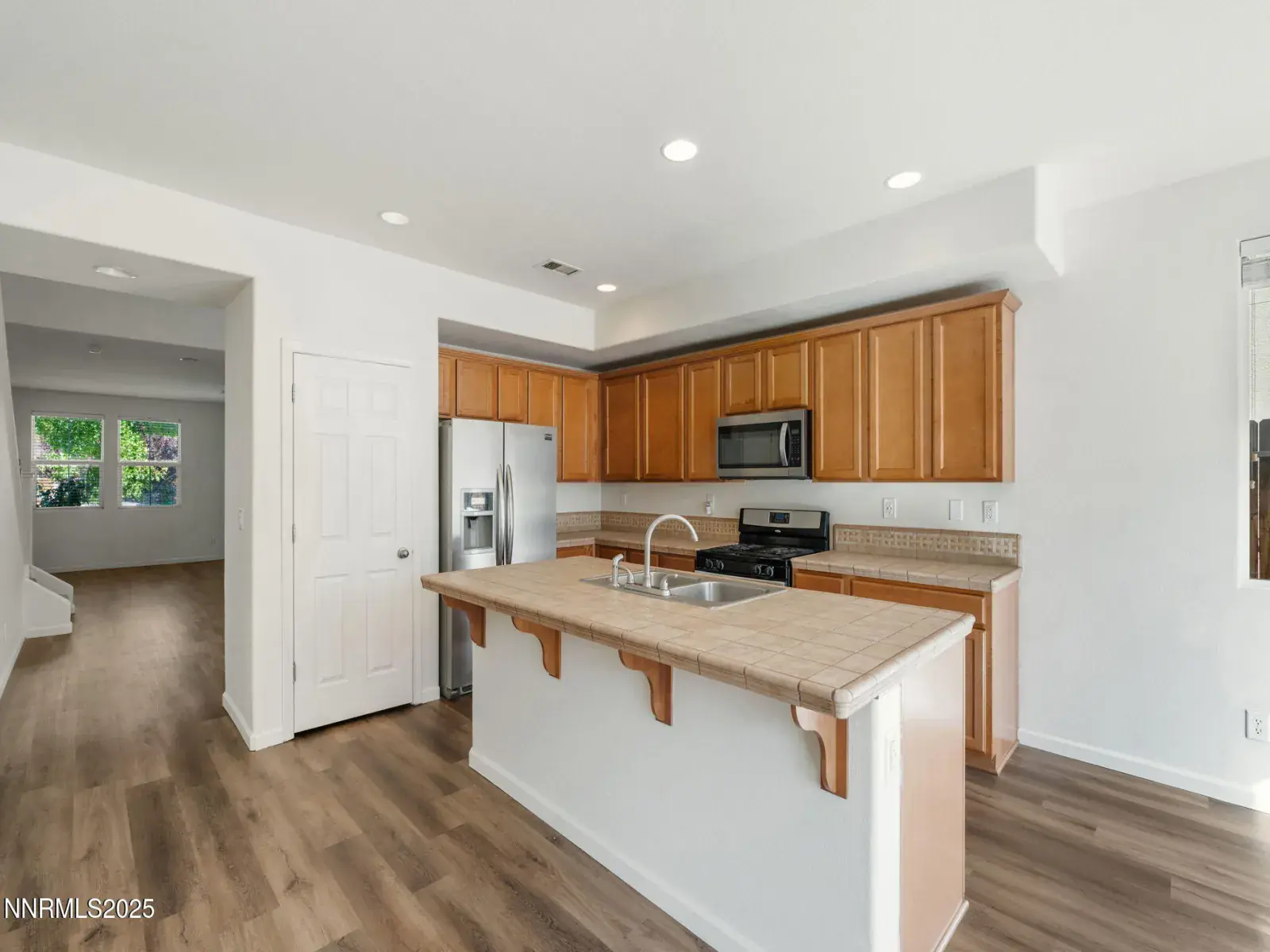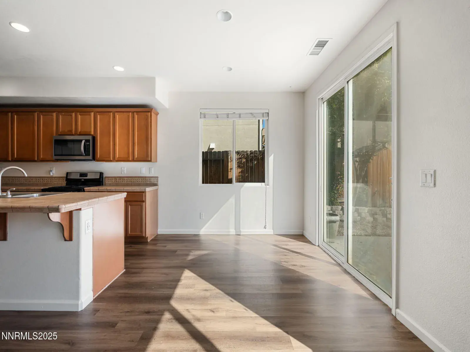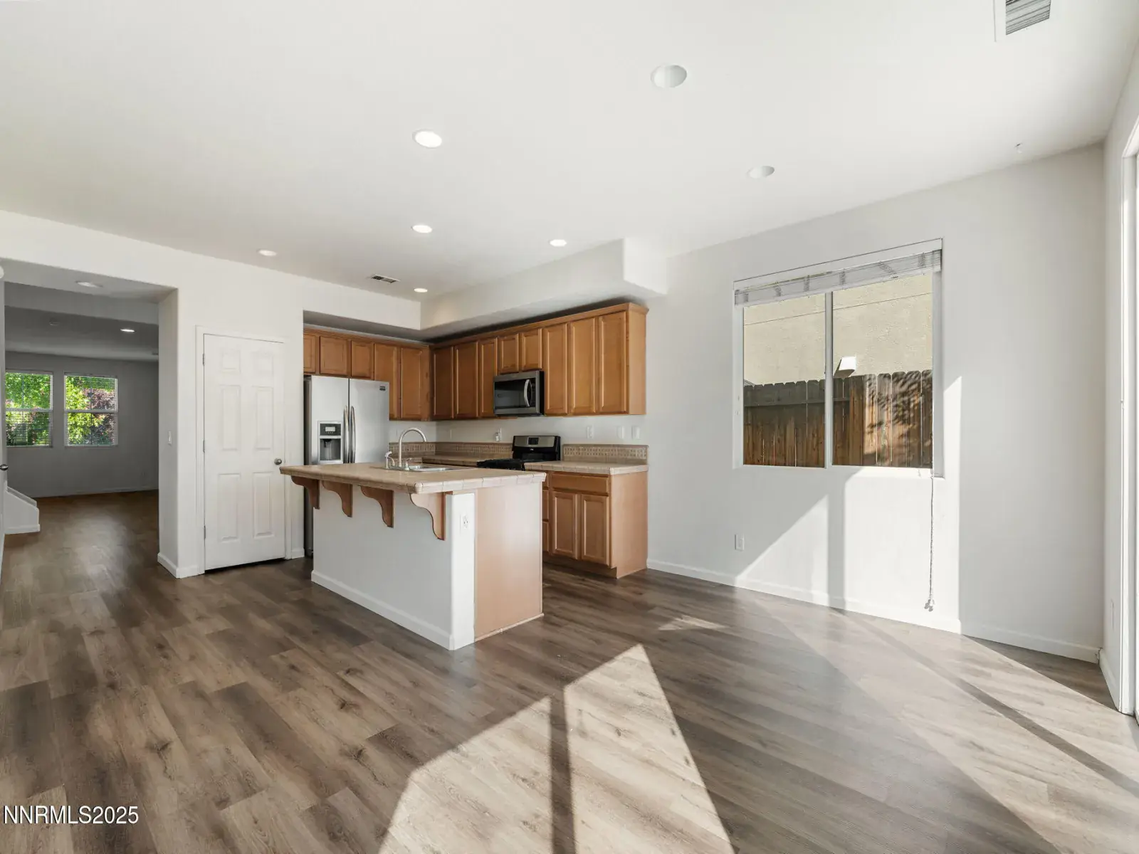 The home you’ve been waiting for is here. With 4 beds, 3 full baths, and a 3-car garage, this South Reno gem in the Cyan neighborhood is designed for both comfort and style. As you step inside, high ceilings and a welcoming separate living room immediately make you feel at home. A formal dining space flows into the open family room and kitchen, creating the perfect place to gather for dinners, celebrations, or quiet nights in. On the main level, a full bedroom and bath offer the ideal setup for guests or multigenerational living. Upstairs, the versatile loft is ready to be your office, media room, or cozy retreat. The spacious primary suite invites you to relax, complete with two walk-in closets for plenty of storage. Two additional bedrooms and a full bath complete the upper level, giving everyone their own space. Step outside to a fully landscaped backyard that’s both private and low-maintenance, perfect for morning coffee, weekend barbecues, or simply enjoying Reno’s fresh air. With brand-new LVP flooring and fresh paint throughout, this home feels warm, modern, and ready for your story to begin. Surrounded by parks, walking paths, and with easy access to South Meadows Parkway, Veterans Parkway, and major employers, this location balances convenience with a quiet neighborhood feel. Don’t miss the chance to make this house your home; it has everything you’ve been searching for.