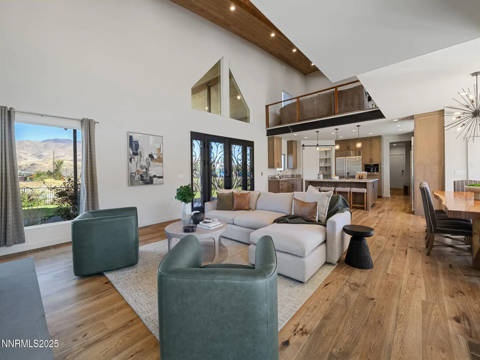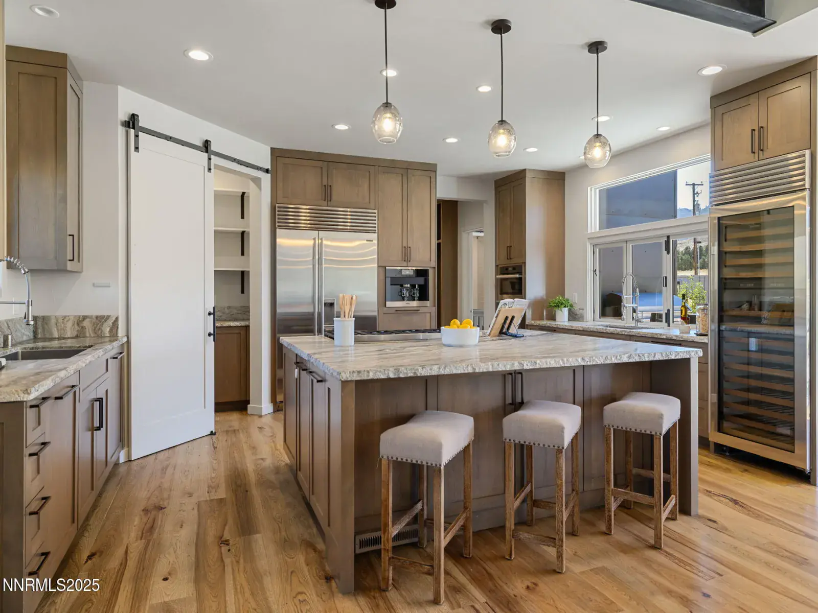 Discover refined mountain living near the California border in this 4,901 sq. ft. estate where modern architecture and natural beauty meet. This estate offers 4 bedrooms + office, 5.5 baths of custom living space on a private acre with panoramic views of the Toiyabe National Forest and Sierra Nevadas. The chef’s kitchen is a true centerpiece with Sub-Zero and Miele appliances, dual Bosch dishwashers, built-in coffee station, 140-bottle wine fridge, and a folding pass-through window to the outdoor kitchen. The primary suite on the main level has its own wing, featureing dual walk-in closets with rolling ladder, heated tile floors, steam shower, and private laundry access. Two additional bedrooms with en-suite baths are also located on the entry floor, creating a convenient layout for family and guests. The finished lower level offers a Dolby Atmos theater, wet bar, wine cellar, and hidden gun room, while the outdoors are highlighted by 1,700+ sq. ft. of terraces, a hot tub, firepit, playground, and space for horses or small livestock. With a 5-car + RV garage and shop, gated acre lot, and sweeping views of the Sierra Nevadas, this property blends high-end design with Nevada mountain lifestyle. Explore the full gallery, video tour, and detailed features at the property website.