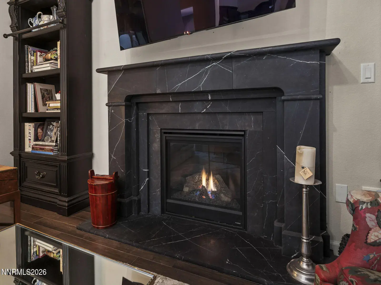 Beautifully appointed 3-bedroom, 3-bath residence showcasing refined finishes and an exceptional open-concept design. High ceilings, warm designer tones, upgraded wood flooring, and an elegant custom marble fireplace mantle create a sophisticated yet inviting atmosphere. The chef-inspired kitchen features upgraded quartz counters and cabinetry, a large island with seating, and seamless flow into the main living and dining areas—ideal for both entertaining and everyday comfort. Separate laundry room with abundant storage. Spacious secondary bedroom with a full bath and walk-in closet, a private third guest bedroom at the front of the home, and a separate formal dining room. Plantation shutters and upgraded window shades throughout enhance both style and function. Enjoy a cool, east-facing backyard with tranquil fountain, covered patio with ceiling fan, and expansive sliding doors from the kitchen for effortless indoor/outdoor living. Located in the desirable 55+ Carmella Ranch community offering clubhouse, resort-style pool, fitness center, and vibrant activities including pickleball. Convenient to shopping with picturesque Mt. Rose views throughout the neighborhood. Truly exceptional.