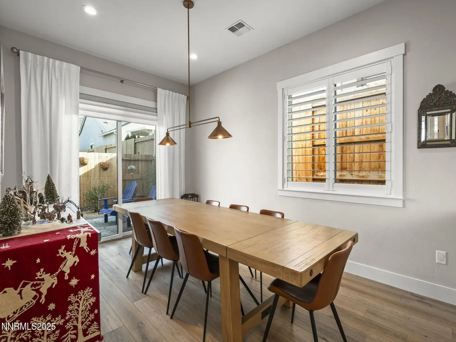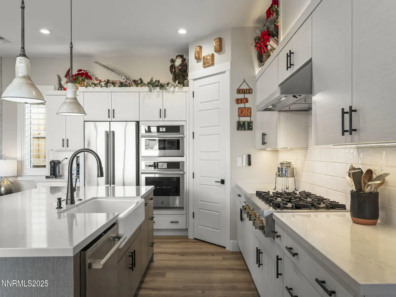 Welcome to this stunning 2-bedroom, 2-bath, 1,978 sq ft home built in 2023, perfectly positioned on a desirable corner lot in the sought-after Regency at Caramella Ranch. With approximately 255,000 dollars in thoughtfully curated upgrades, this home offers modern luxury, comfort, and effortless indoor-outdoor living. Inside, you’ll find an open and flexible floor plan filled with natural light, highlighted by luxury laminate flooring, solid wood interior doors, large ceiling fans throughout, and plantation shutters. The great room features a gas fireplace with blower for maximum heat, accented by a stunning tiled fireplace mantel wall, creating a warm and elegant focal point. Recessed lighting and upgraded fixtures elevate every space. The gourmet kitchen is a true showstopper, featuring top-of-the-line JennAir appliances, upgraded cabinetry and hardware, cabinet lighting, soft-close cabinets and drawers, slide-out shelving, and premium countertops—designed for both beauty and functionality. One of the home’s most impressive features is the 16-foot wall of folding glass doors, seamlessly connecting the interior to the outdoors. Complete with a disappearing screen, this space is perfect for enjoying warm summer evenings without worrying about bugs. The dining room offers added convenience with battery-operated Roman shades. Step outside to a fully landscaped backyard oasis, designed for low maintenance and high enjoyment. Features include xeriscape landscaping, a beautiful paver pathway, multiple patio spaces, a raised patio with gas fire pit, landscape lighting in both the front and backyard, an automatic drip irrigation system, a gas-plumbed BBQ hookup, and a patio wired for stereo sound—perfect for entertaining. The primary bathroom showcases luxury finishes, including top-of-the-line Roburn medicine cabinets, while thoughtful details like soft-close toilet seats reflect the attention to quality throughout the home. Residents of Regency at Caramella Ranch, an exceptional 55+ community, enjoy resort-style amenities including a grand clubhouse, indoor and outdoor pools, a state-of-the-art fitness center, pickleball and bocce ball courts, and a full calendar of activities. Fitness and lifestyle classes range from yoga, Pilates, Tai Chi, and water aerobics to creative pursuits like painting. An on-site event planner coordinates community gatherings, including a popular summer concert series and countless social events. This home offers a rare opportunity to enjoy luxury, lifestyle, and low-maintenance living in one of South Reno’s most desirable communities. The sellers will be taking the following with them: water features in the courtyard, TV mounts, the pendant lights over the kitchen island, the garage cabinet above the work bench, and the BBQ in the backyard. The ceiling above the kitchen island will be capped at both spots where the pendants were. Future owners can then choose their style of lighting once they own it.