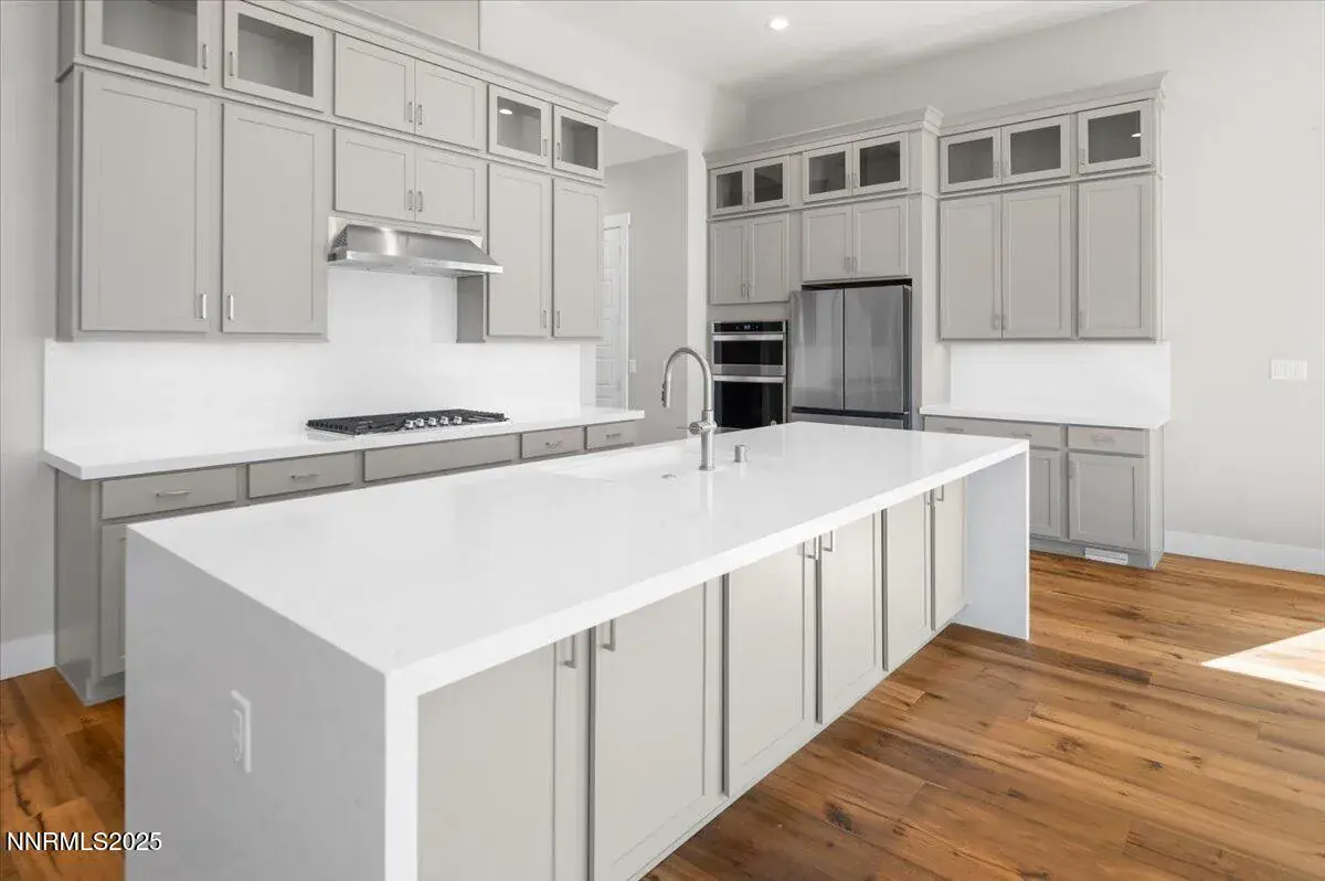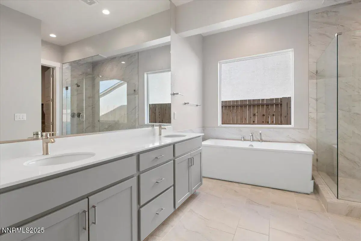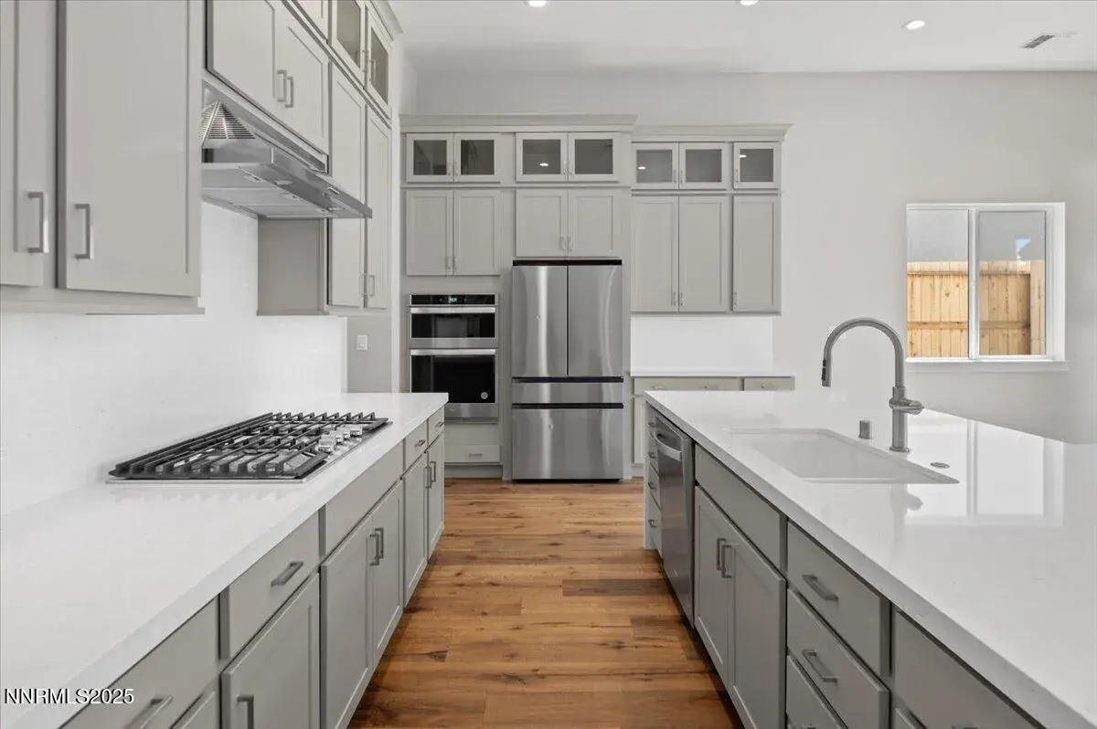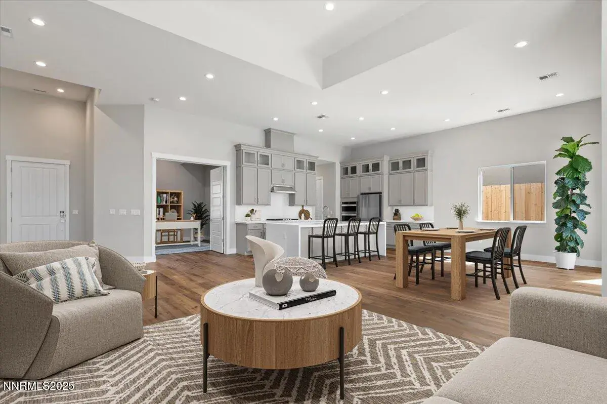 Welcome to 2982 Saddle Peak Dr, a multi-generational home where modern design and effortless elegance come together in one of South Reno’s most sought-after neighborhoods. This beautifully designed 3-bedroom, 4-bathroom home spans 2,955 square feet, offering soaring ceilings, wide-plank hardwood floors, a chef’s kitchen with waterfall quartz countertops, and an expansive open-concept layout ideal for both daily living and entertaining. Large western sliding doors lead to a covered patio and low-maintenance backyard, perfect for enjoying Reno’s four-season lifestyle. Located in the heart of Carmella Ranch, residents enjoy resort-style amenities including a pool, jacuzzi-spa, fitness center, clubhouse, and scenic walking trails. Surrounded by stunning Sierra views, this home is also just minutes from top-rated schools, The Summit Mall, local dining, golf courses, and Highway 580-offering easy access to Lake Tahoe and Downtown Reno.