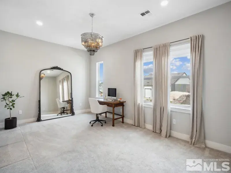 STUNNING AND MODERN masterpiece! You’ll find timeless luxury and high-end living in this fabulous single-story home. Open floor plan concept, soaring ceilings, dedicated office (not included in bedroom count), and so much more. Extensively landscaped including a retaining wall, covered and uncovered patio area, and a gated dog run. The three-car garage has been upgraded to include 16 commercial electrical outlets. Lovely views of Mt Rose from the back yard. Top notch HOA amenities!