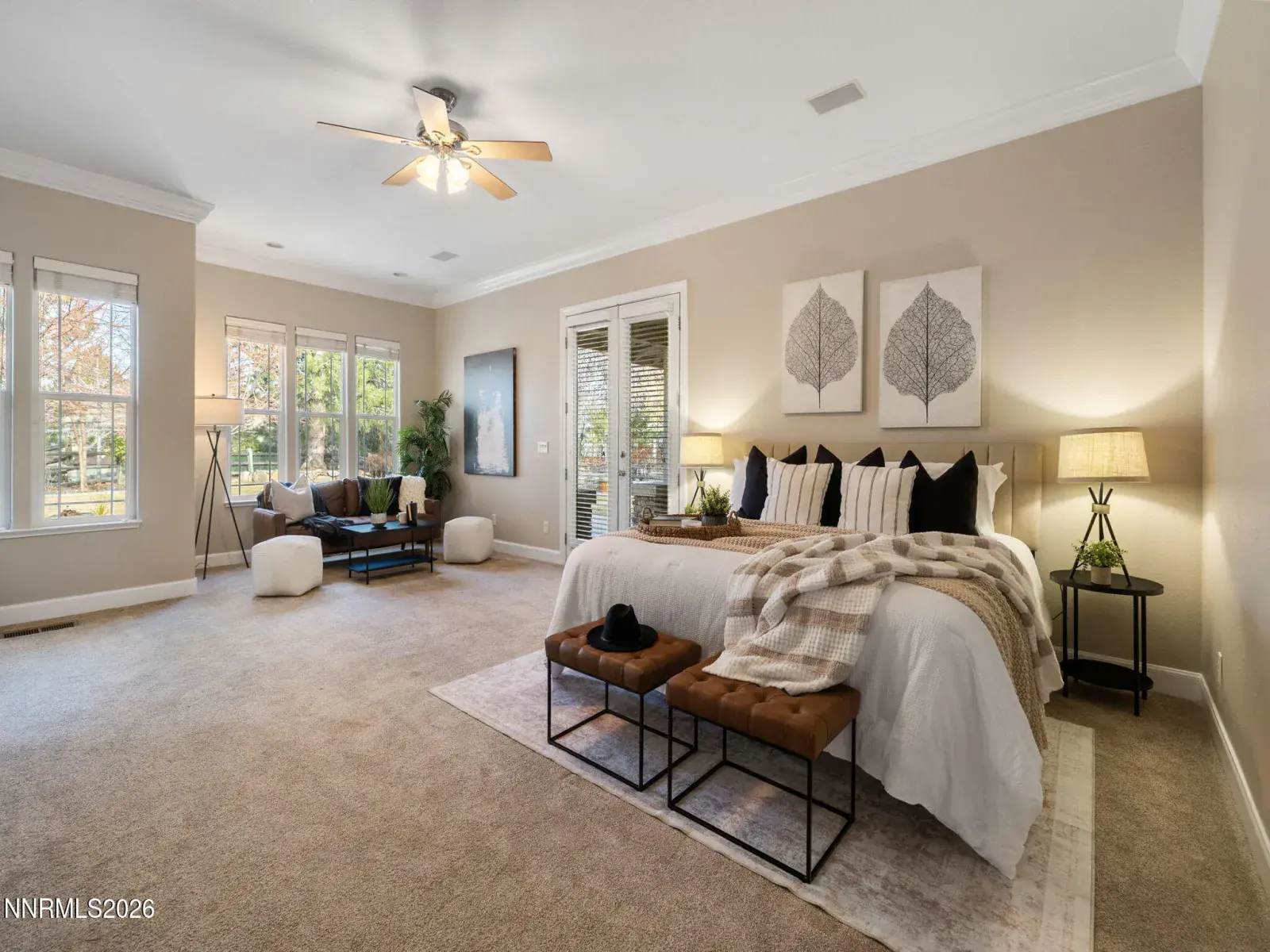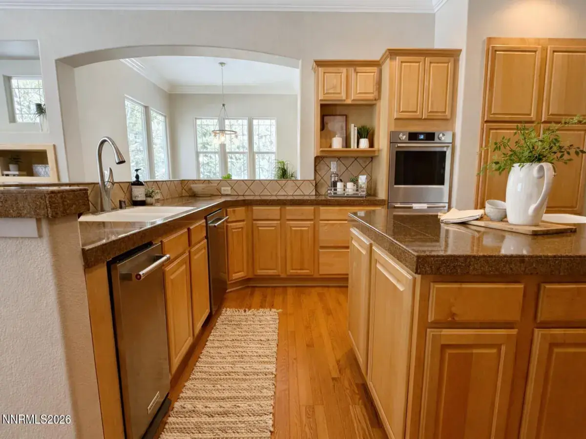 BRAND NEW STAINLESS APPLIANCES INSTALLED IN THE KITCHEN AND FRESHLY PAINTED THROUGHOUT. From the moment you walk in you can feel the pride of ownership. Located behind the gates of Mountainshyre in the sought-after neighborhood of Caughlin Ranch, this beautiful single-story home offers an ideal layout with the primary suite thoughtfully separated from the remaining bedrooms. Featuring 4 bedrooms plus an office, 2.5 baths, and 3 car garage the home is designed for both comfort and functionality. The kitchen is a chef’s dream with double ovens, multiple sinks, a butler’s pantry, ample prep space, breakfast nook, and breakfast bar. The laundry room doubles as a mudroom and includes its own sink for added convenience. Additional features include newly painted and crown molding throughout, wood floors, central vacuum, a new hot water heater, and a spacious primary suite with a huge walk-in closet. Step outside to discover a private garden oasis – immaculately maintained with lush landscaping, a large patio, and grass. The backyard is fully fenced, stubbed for a gas BBQ, and perfect for peaceful relaxation or entertaining. Enjoy scenic walking trails right in the neighborhood, and take advantage of the home’s central location, just minutes from the Reno-Tahoe Airport, shopping, dining, and more.