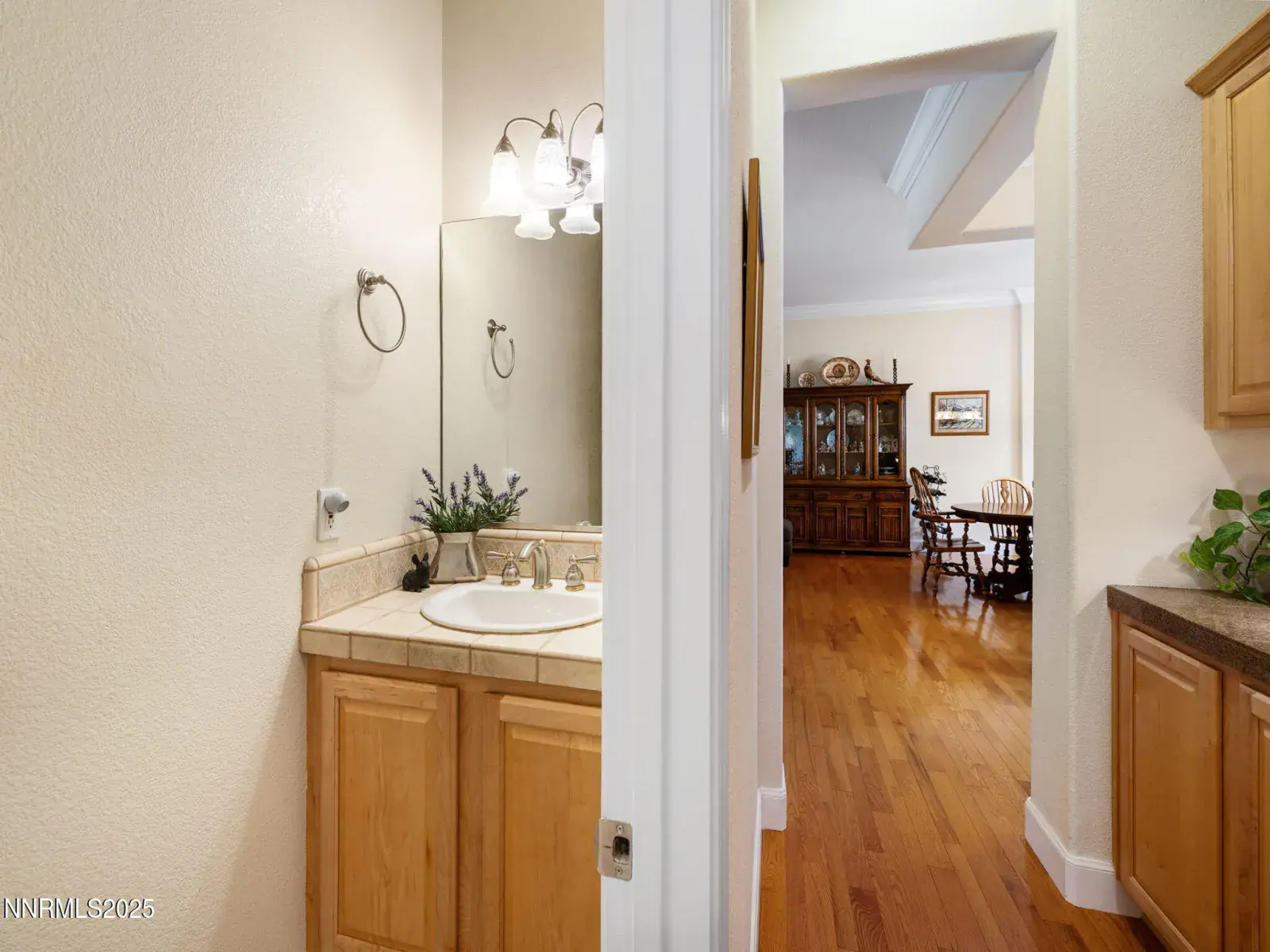 From the moment you walk in you can feel the pride of ownership. Located behind the gates of Mountainshyre in the sought-after neighborhood of Caughlin Ranch, this beautiful single-story home offers an ideal layout with the primary suite thoughtfully separated from the remaining bedrooms. Featuring 4 bedrooms plus an office, 2.5 baths, and 3 car garage the home is designed for both comfort and functionality. The kitchen is a chef’s dream with double ovens, multiple sinks, a butler’s pantry, ample prep space, breakfast nook, and breakfast bar. The laundry room doubles as a mudroom and includes its own sink for added convenience. Additional features include wood floors, crown molding throughout, central vacuum, a new hot water heater, and a spacious primary suite with a huge walk-in closet. Step outside to discover a private garden oasis – immaculately maintained with lush landscaping, a large patio, and grass. The backyard is fully fenced, stubbed for a gas BBQ, and perfect for peaceful relaxation or entertaining. Enjoy scenic walking trails right in the neighborhood, and take advantage of the home’s central location, just minutes from the Reno-Tahoe Airport, shopping, dining, and more.