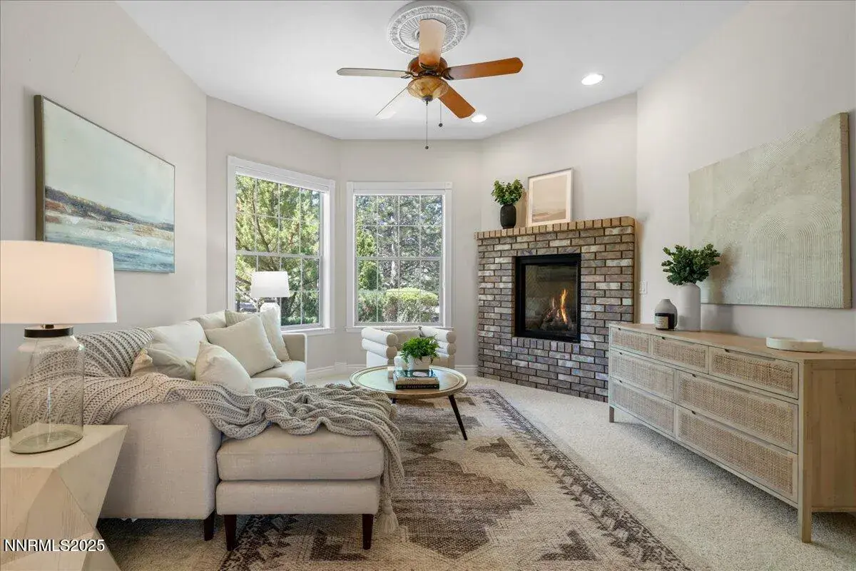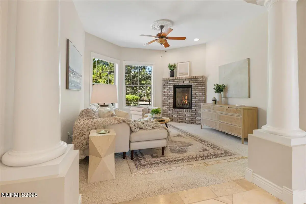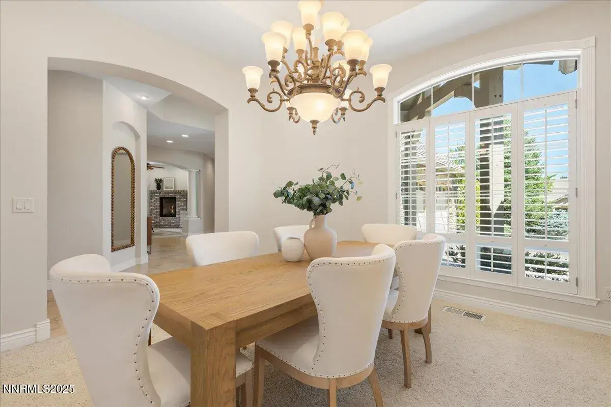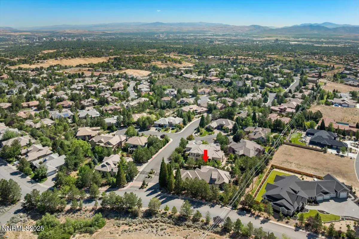 New year, new home, in Caughlin Ranch! Reno’s premier gated enclave nestled in the scenic foothills, just minutes from everything yet worlds away in feel! This elegant single-story residence offers luxury, space, and serenity on a beautifully manicured 0.41-acre lot. Inside, you’ll find a thoughtfully designed layout with 4 spacious bedrooms, a dedicated office, two living areas, and formal dining, ideal for both everyday living and entertaining. Soaring ceilings, natural light, and travertine flooring create an airy, sophisticated atmosphere. The gourmet kitchen is a chef’s dream, featuring top-tier newer KitchenAid appliances and a Viking 36″ 6-burner gas cooktop. Granite countertops, extensive cabinetry with pull-outs, a walk-in pantry, and custom upgrades complete the space. The primary suite is a true retreat, with a cozy fireplace, direct patio access, a spa-inspired bath with dual shower heads, a soaking tub, and a large walk-in closet. Throughout the home, enjoy high-end touches like plantation shutters, upgraded fans, and three custom gas fireplaces. Step outside to your private backyard sanctuary, shaded by mature trees, with a lush lawn and a stunning custom wood pergola perfect for relaxing or entertaining. The oversized 3-car garage offers space for vehicles and storage. Living in Caughlin Ranch means immediate access to 20+ miles of walking and biking trails, just steps from Village Green Park with tennis courts, playgrounds, and outdoor events. You’re zoned for top-rated schools, Caughlin Ranch Elementary, Swope Middle, and Reno High and only minutes from shops, dining, and everyday conveniences. Commute easily: 10 minutes to Downtown Reno or the Reno-Tahoe International Airport, and just 40 minutes to world-class skiing and Lake Tahoe adventures. Discover refined living in one of Reno’s most sought-after communities. Home is currently destaged, photos reflect prior staging