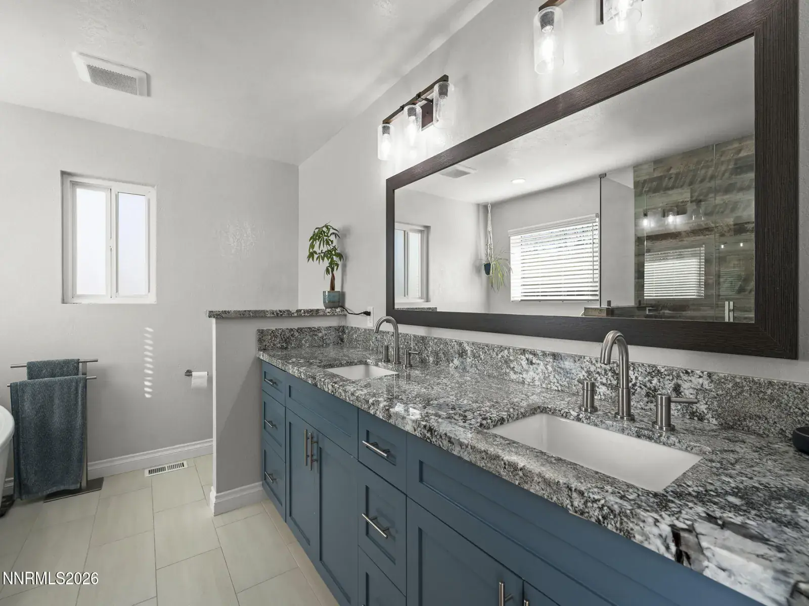 Completely remodeled and located in desirable Southwest Reno, this stunning 5-bedroom, 3-bath home offers 3,688 sq ft of living space, including a 366 sq ft unfinished utility room for added flexibility, all situated on a generous 0.27-acre lot. A new front porch with low-maintenance composite decking welcomes you inside, where you’ll find refinished wood floors throughout, newer Stainmaster pet carpet with upgraded pad, and upgraded LED lighting. The home features unusually large bedrooms and closets for its era. Upstairs, both bathrooms have been fully remodeled with new tile, cabinetry, fixtures, tubs, and toilets. The spacious primary suite includes its own mini-split heating and cooling system and a luxurious spa-like bathroom with a freestanding soaking tub, oversized shower, and all-new stone, tile, cabinetry, and fixtures. Downstairs offers exceptional versatility and could easily function as an in-law or multi-generational living space with its own entrance, living room, two bedrooms, and a separate updated bathroom. Major system upgrades include a new furnace and A/C in 2024 with a humidifier, and a new tankless water heater in 2025. Several upstairs windows have been replaced, and a three panel slider enhances indoor-outdoor living. The backyard is built for entertaining and utility, featuring an automatic gate, expansive paver patio, fire pit, RV parking with electrical hookups, French drains, and a replaced sewer line from the street to the pavers. This is a rare opportunity to own a fully remodeled, no-HOA home with 5 bedrooms, 3 full baths, and the flexibility for dual living spaces…all on a spacious 0.27-acre lot in one of Reno’s most sought-after neighborhoods. Agents, please see private remarks.
