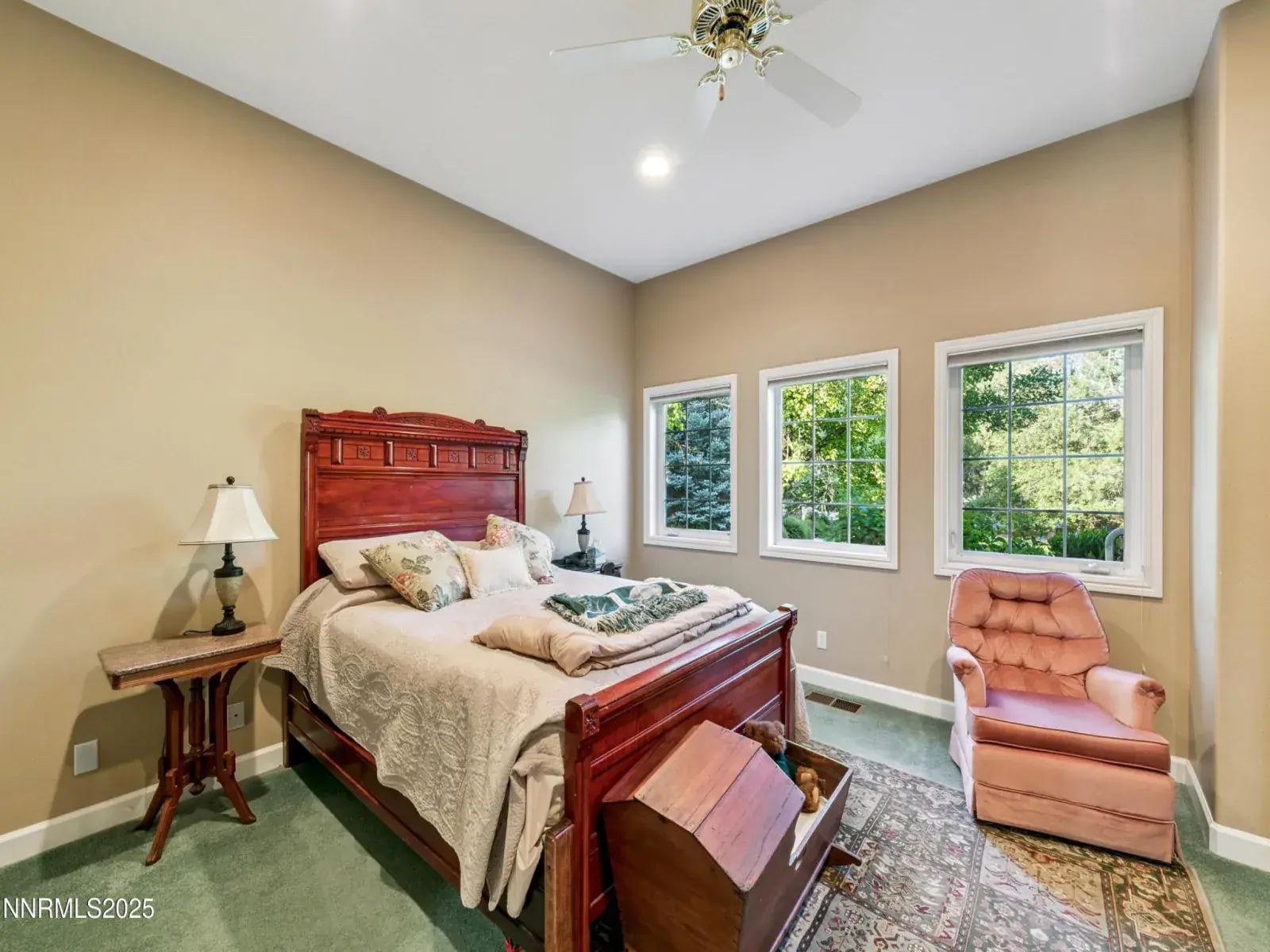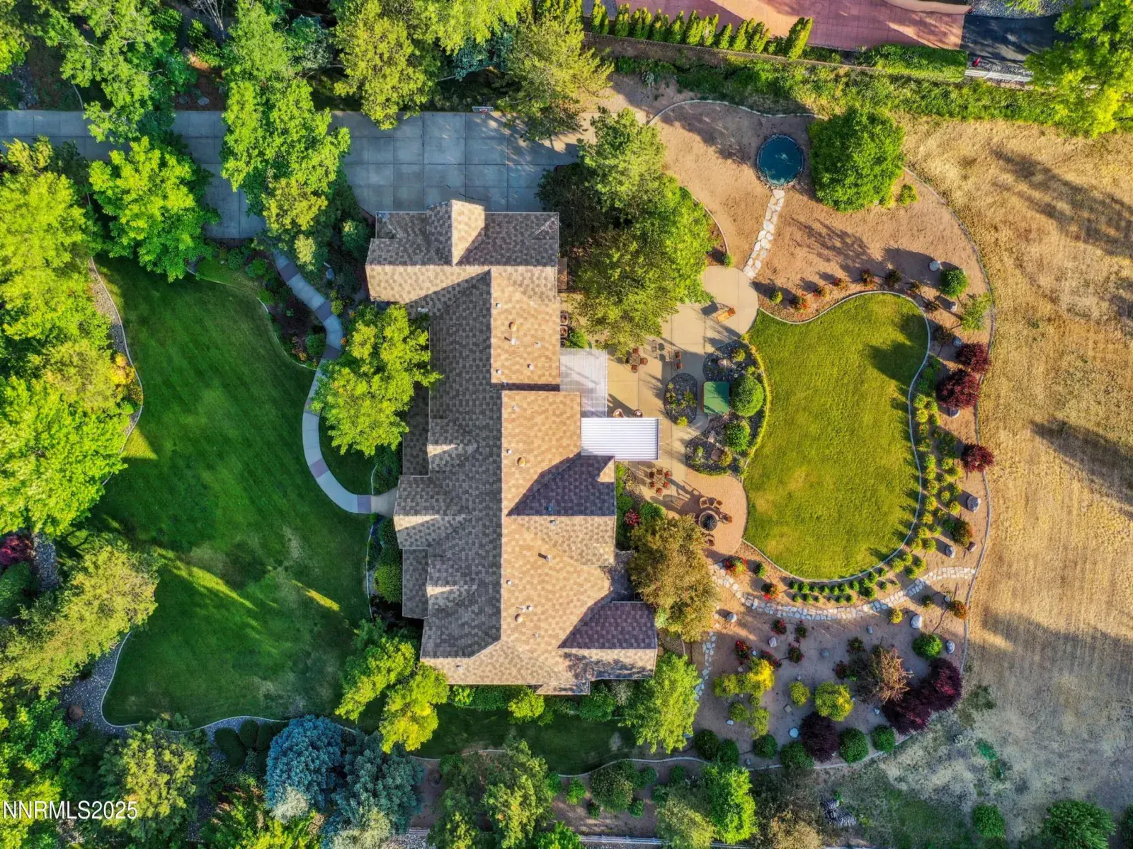 Set on a private 2.137-acre parcel in Reno’s established Country Estates neighborhood, this custom residence offers 7,983 square feet of thoughtfully designed living space where refined comfort meets timeless appeal. Mature trees and beautifully landscaped grounds provide a serene, park-like setting that feels both secluded and well connected to the best of south Reno. Inside, soaring ceilings, abundant natural light, and clean architectural lines create a sense of openness and ease. The heart of the home is a well-appointed kitchen with quartz countertops, a generous center island, and a walk-in pantry—flowing seamlessly into the spacious living and dining areas designed for both everyday comfort and memorable entertaining. With six bedrooms—four featuring en suite bathrooms and two sharing a Jack & Jill—the layout offers flexibility for a variety of lifestyles. A seventh bedroom is currently used as a theater room, offering additional versatility. The main-level primary suite is a true retreat, complete with a spa-inspired bath, dual vanities, a soaking tub, steam shower, private water closet, and an expansive walk-in closet. Additional features include two half baths (one on each level), two laundry rooms (upstairs and downstairs, with an extra refrigerator), front and back staircases, an exercise room, and a bonus room (not included in the square footage; buyers to verify). Outdoors, enjoy the expansive lawn, mature landscaping, and a covered patio ideal for alfresco dining, peaceful mornings, and relaxed gatherings. A spacious three-car garage and ample storage complete the package. This rare offering combines privacy, scale, and timeless architecture with convenient access to shopping, trails, and I-580—creating an exceptional lifestyle opportunity in one of Reno’s most enduring neighborhoods.