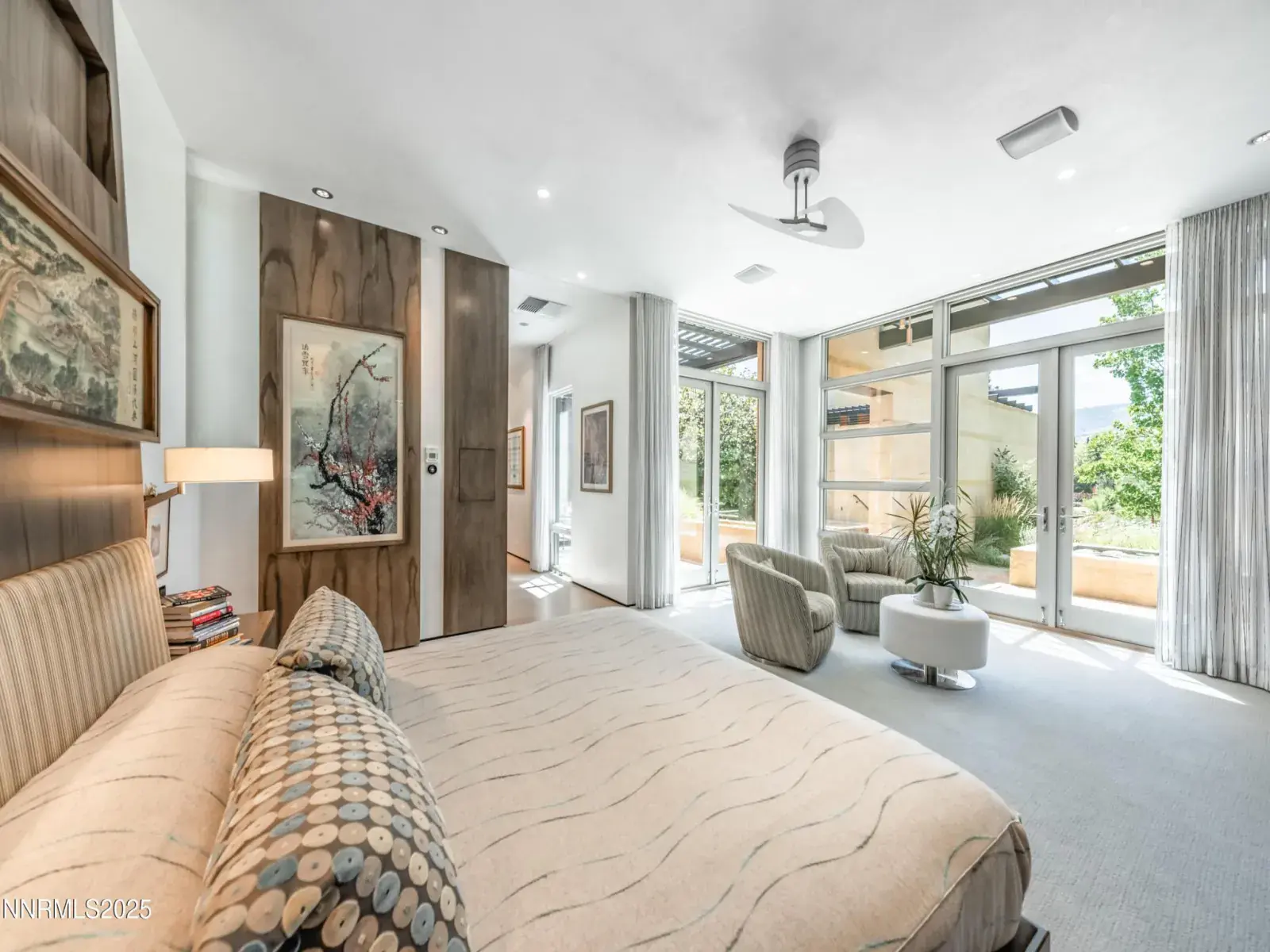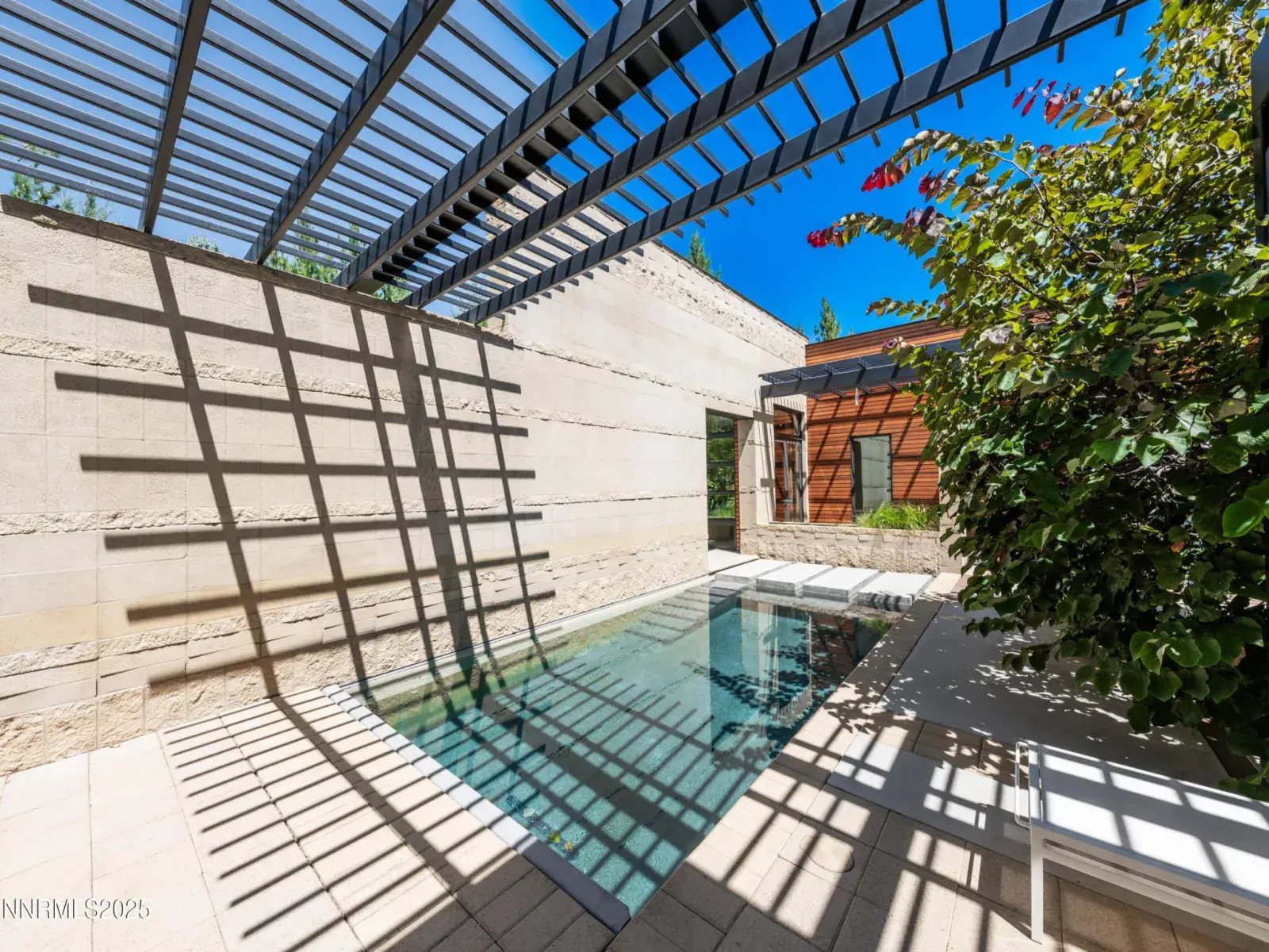 This architecturally significant home, constructed with concrete, metal, and wood siding elements, harmonizes modern design with its natural surroundings. Its state-of-the-art systems include hydronic heating powered by solar energy and evaporative cooling, offering both comfort and sustainability. The seamless connection between indoor and outdoor spaces is a defining feature, with the courtyard and pool creating a tranquil retreat. Art lovers and architecture enthusiasts alike will appreciate the home’s thoughtful design and integration with the environment.