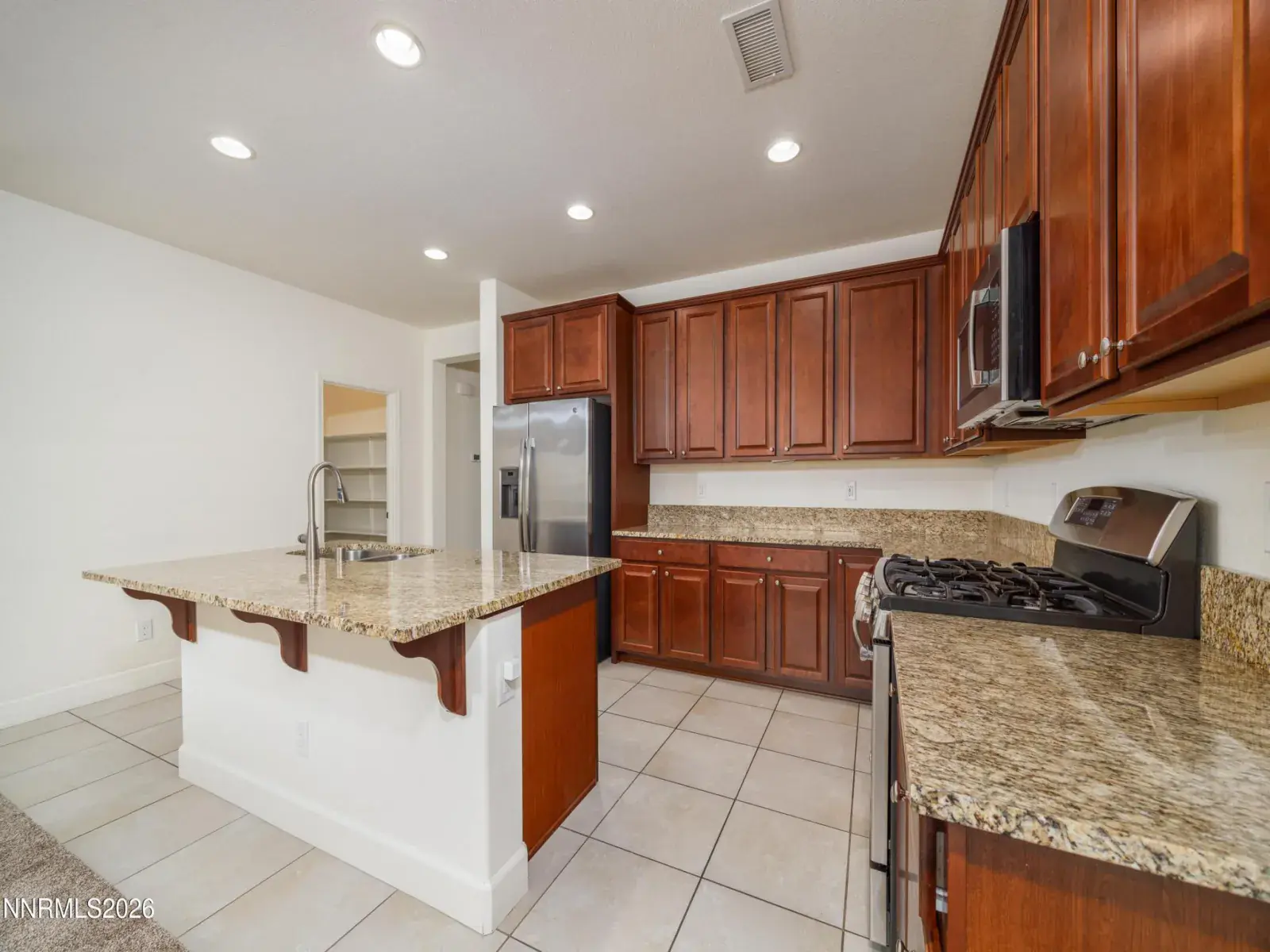 Beautifully maintained single-story home located in south Reno with beautiful mountain views! This inviting residence features an open-concept floor plan with abundant natural light, high ceilings, brand new carpet and thoughtful finishes throughout. The kitchen offers granite countertops, rich cabinetry, stainless steel appliances, a large center island with breakfast bar, and ample storage—perfect for both everyday living and entertaining. The spacious primary suite includes a walk-in closet and a well-appointed bathroom with dual sinks, soaking tub, and separate walk-in shower.