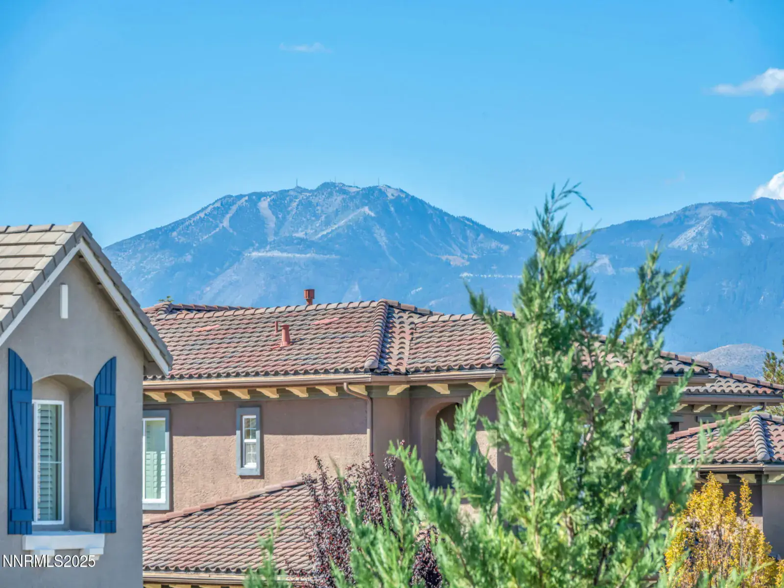 Introducing 9845 Copenhagen Way ~ this gorgeous three bedroom plus large loft area home showcases beautiful views of Mt. Rose, a very big plush landscaped back yard, raised vegetable planters and is also big enough to add a swimming pool. The many upgrades included are extra high ceilings, 8′ doors, wood floors, 2″ wood window blinds, ceiling fans in every room, upgraded kitchen appliances, quartz center island, upgraded back splash, granite counters in the master bath, upgraded tile in bathrooms, alarm system, big storage space under the stairway and storage racks in the garage. Situated on an oversized corner .276 acre lot and only one of four Hemmingway plans. The Saddle Ridge gated community offers residents exclusive access to resort-style amenities including a clubhouse, tennis and pickle-ball courts, a beautiful in-ground pool, playgrounds, scenic walking trails, and a manned security gate. All within close proximity to world class skiing and the beautiful Lake Tahoe.