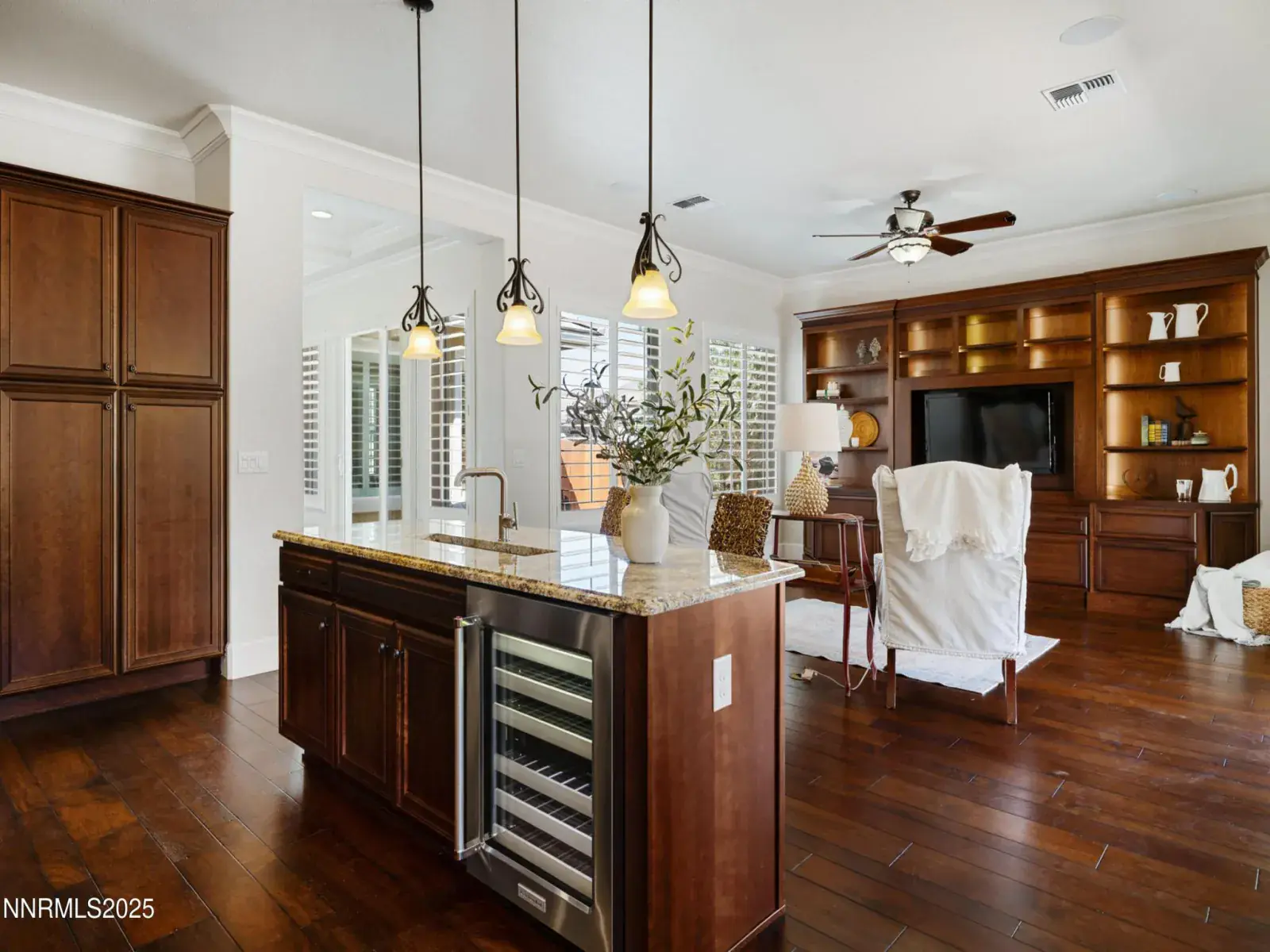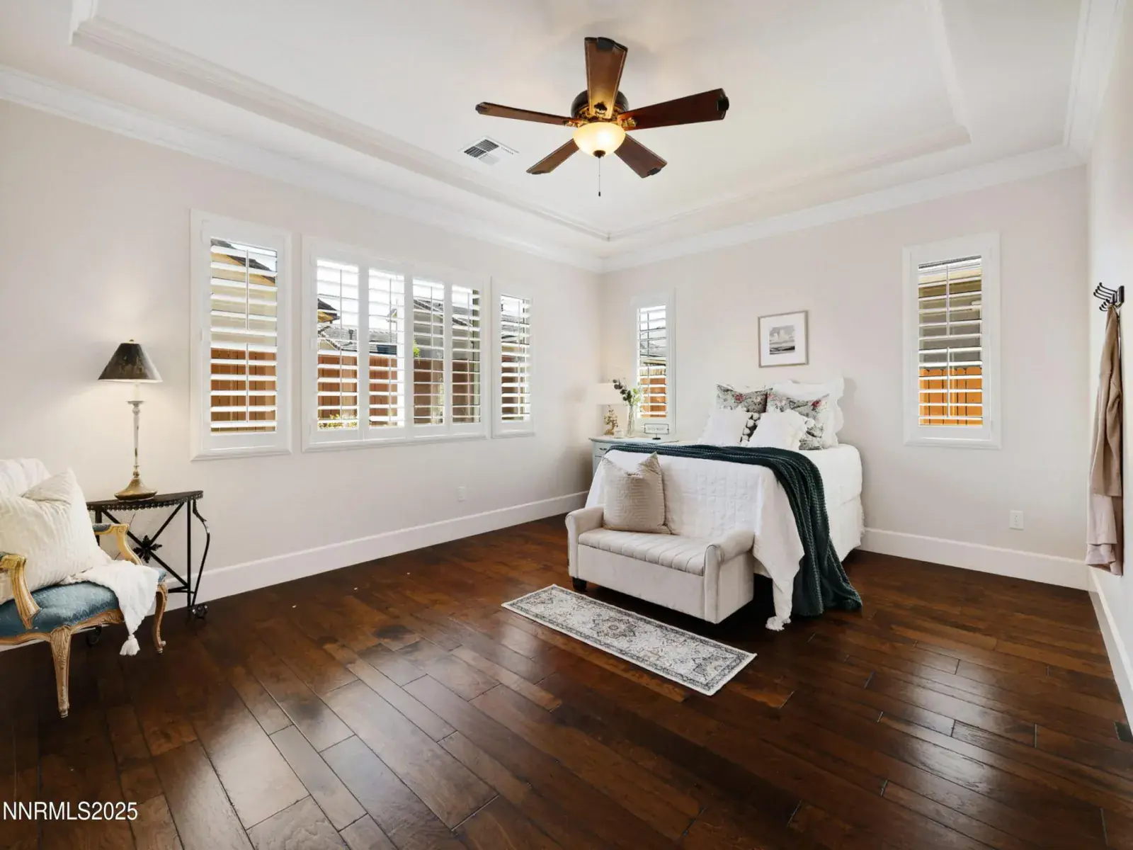 This Regency at Presidio offers turnkey luxury, thoughtful upgrades, and effortless 55+ living in one of Reno’s most desirable active-adult communities. With 2 bedrooms, 2.5 bathrooms, and 2,223 square feet, this home blends style, comfort, and convenience in a layout designed for both daily living and entertaining. Step outside to experience three separate, beautifully landscaped outdoor spaces: a private courtyard for morning coffee, a side patio perfect for intimate gatherings, and a backyard ideal for relaxing or entertaining. Each space is low-maintenance and thoughtfully designed to maximize privacy and enjoyment, while keeping you just steps from the clubhouse and community amenities, including fitness, walking paths, and social activities. Inside, the home is filled with upgrades that would cost tens of thousands to replicate today. Hardwood floors flow throughout the main living spaces, complemented by custom cabinetry, built-ins, and premium storage solutions. The kitchen features soft-close cabinets, full-extension drawers, and the KitchenAid Gourmet Package with built-in refrigerator and wine fridge, making hosting effortless. The primary suite is a private sanctuary, complete with frameless rain-style glass, solar tube lighting, and upgraded finishes, while bathrooms and living areas reflect quality craftsmanship and attention to detail throughout. Technology and comfort are seamlessly integrated, including a home theater sound package, upgraded HVAC, radiant barrier roof, insulated walls, and advanced window treatments, creating a home that’s as efficient as it is elegant. Every detail—from courtyard gates and in-ground lighting to upgraded doors and garage-yard access—enhances the sense of luxury and ease. Highly regarded by neighbors as one of the top homes on the market, 2220 Arpagos Lane delivers turnkey living with upgrades, privacy, and style that are rarely available in Presidio. For those seeking move-in ready perfection in a vibrant 55+ community, this home is an extraordinary opportunity to enjoy lifestyle, comfort, and convenience all in one exceptional package.