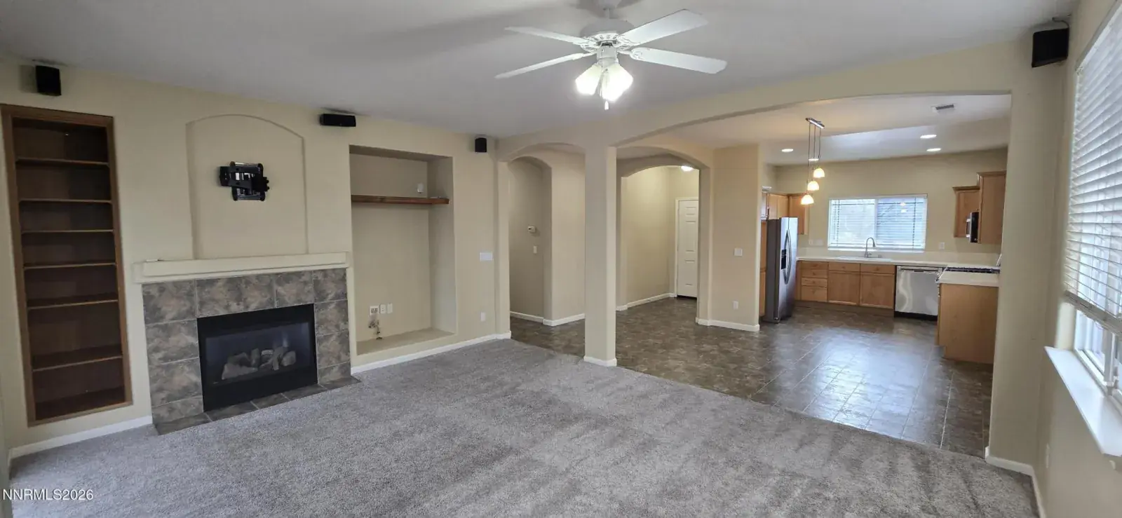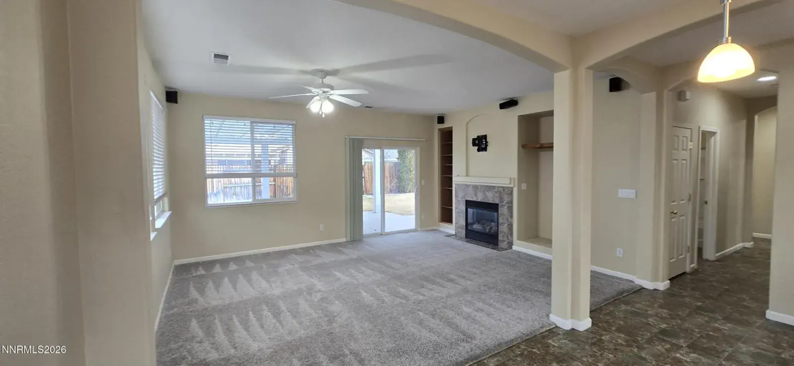 Immaculate single-story home on a quiet corner lot in Double Diamond. Beautifully landscaped, private backyard with expansive patio space covered by two pergolas—ideal for outdoor living. Open kitchen features mountain views, light wood cabinetry and upgraded appliances, including Bosch dishwasher and gas range. High ceilings and abundant natural light throughout. Hard-surface flooring in high-traffic areas with plush carpeted bedrooms. Living room offers gas fireplace and surround sound. Additional highlights include central A/C, two-tone neutral interior paint, numerous ceiling fans, concrete tile roof, and stucco exterior. Refrigerator, washer, and dryer included. Zoned for Double Diamond Elementary, Depoali Middle, and Damonte Ranch High School. Near two parks, shopping, medical services, dining, and with easy access to Veterans Pkwy and I-580.