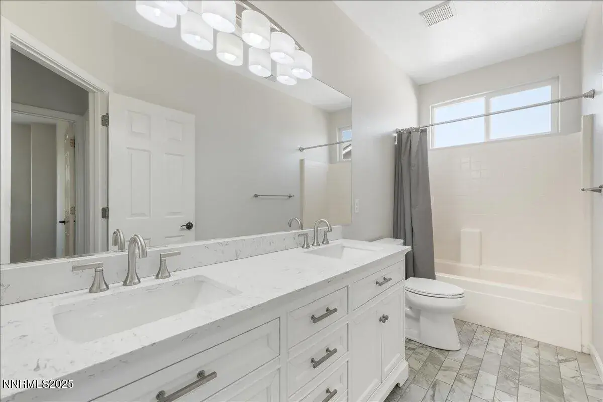 Beautifully Upgraded Home in South Meadows! Tucked away on a quiet cul-de-sac and backing to Comstock Park, this highly desirable floorplan offers 4 bedrooms (including one on the main level), 3 full baths, and an upstairs bonus area. Recent upgrades include newer carpet, luxury vinyl flooring, modern gray tile in the kitchen and baths, fresh interior paint, updated bathrooms, and a fully remodeled kitchen with granite countertops. The open-concept family room features a cozy fireplace and flows seamlessly into the kitchen. Additional highlights include ceiling fans, stylish light fixtures, and low HOA fees. Ideally located across from the park and just minutes to shopping, dining, and quick freeway access.