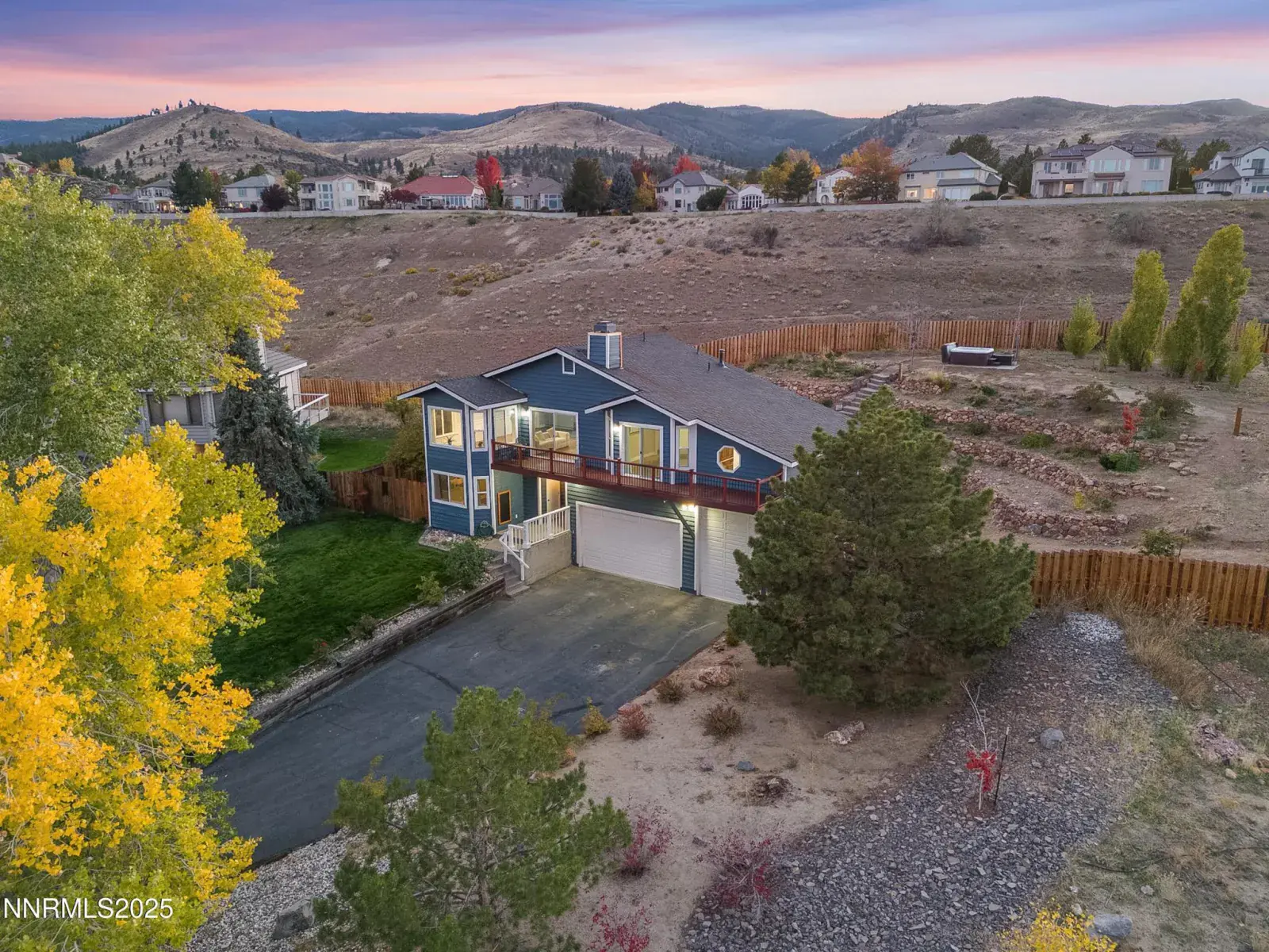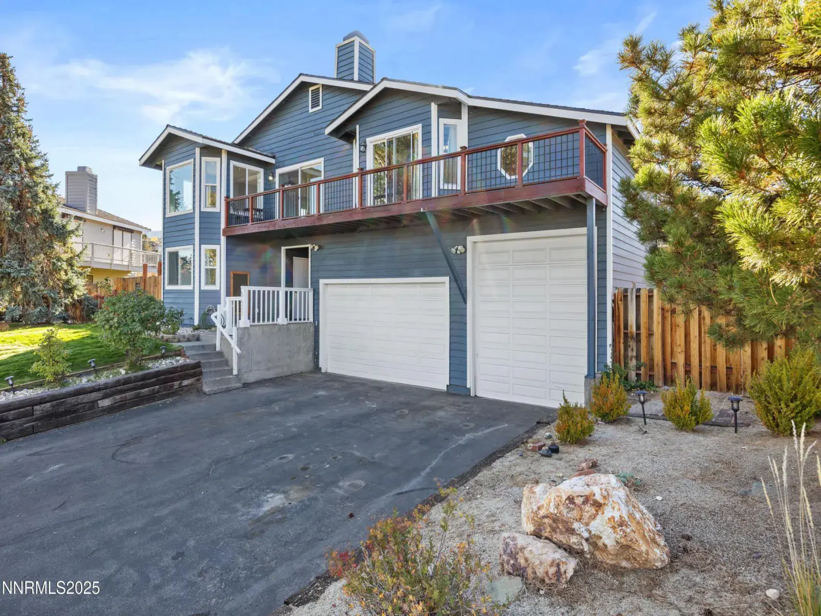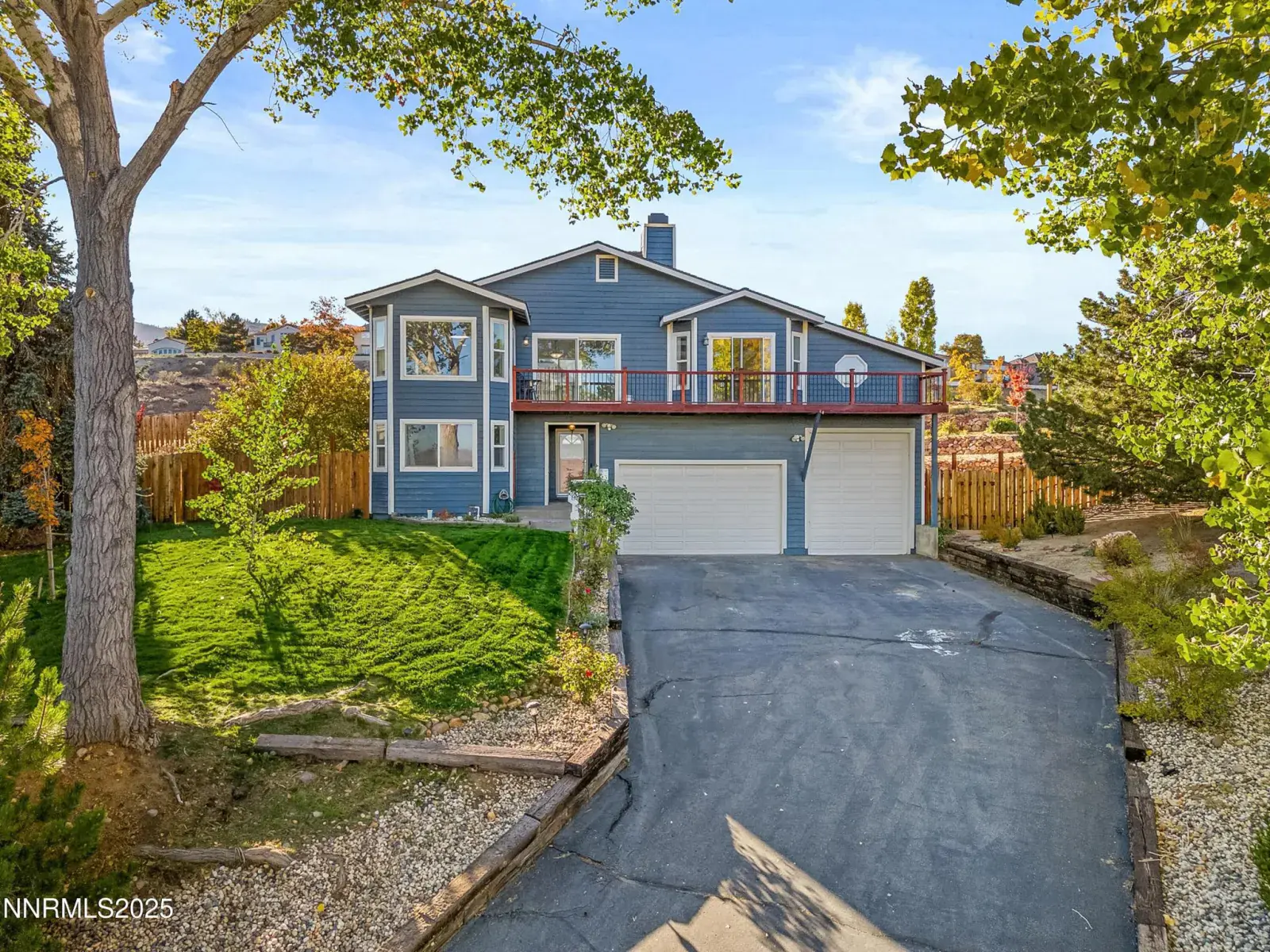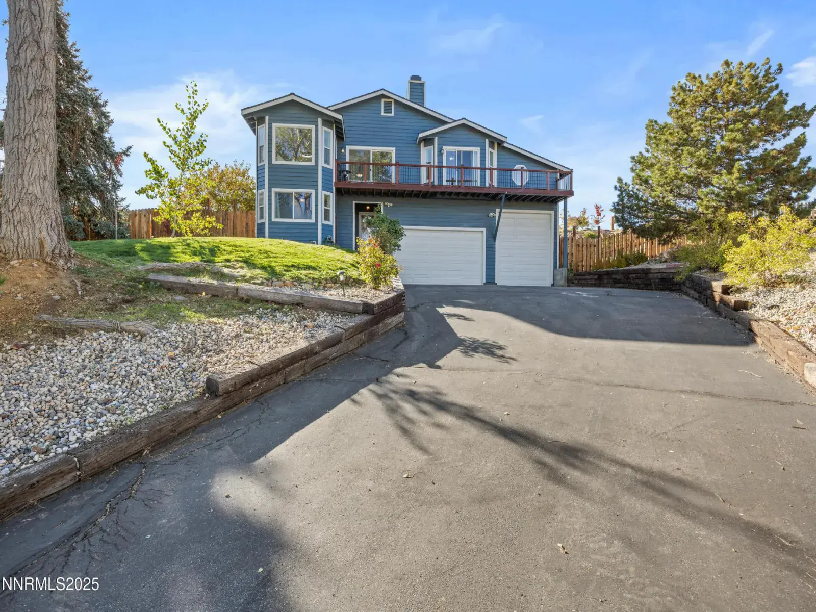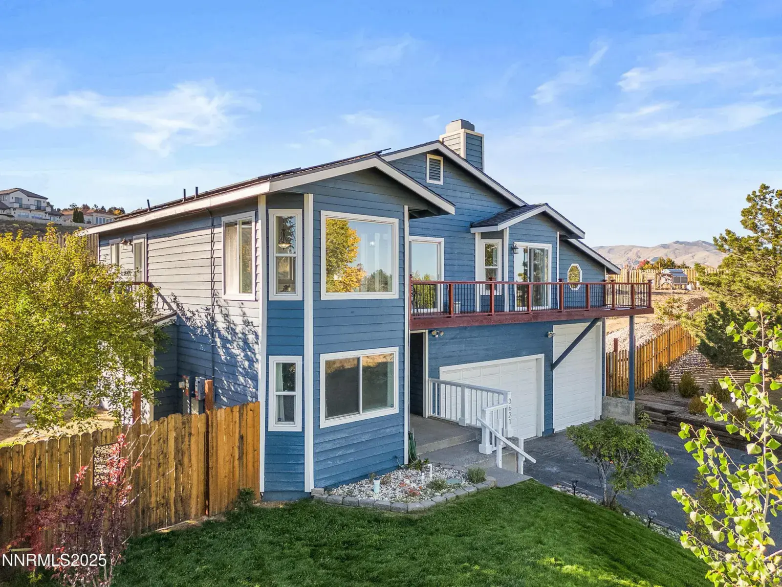 Your opportunity to own a home on an acre in one of the most highly desired neighborhoods of Old Southwest Reno has arrived! As you drive up to this gorgeous Caughlin Ranch home located in a quiet culdesac, you will be pleasantly surprised to see an oversized three car garage which features an RV garage in the third space. Upon entry, you will find teak hardwood floors, two bedrooms, a full bathroom, and the laundry area. As you walk up the stairs you will see the beautiful living space with views of the city from both the slider and large dining room windows, as well as the primary bedroom and attached flex space. With multiple decks along the front, side, and back of the home, there is no shortage of VIEWS. This home has been thoughtfully updated with stunning teak hardwood flooring installed in 2020, new roof (2020), siding painted in 2020, paid off solar installed in 2023, New AC and Furnaced installed in 2024, Tankless water heater installed in 2024, new fence in 2020, kitchen remodel in 2025, front and backyard irrigation, and a perfectly private split level backyard space with NO rear neighbors and walking steps to the hot tub pad — where you get the most stunning views from during your soak sesh. Do not miss your opportunity to call this one of a kind house a HOME.