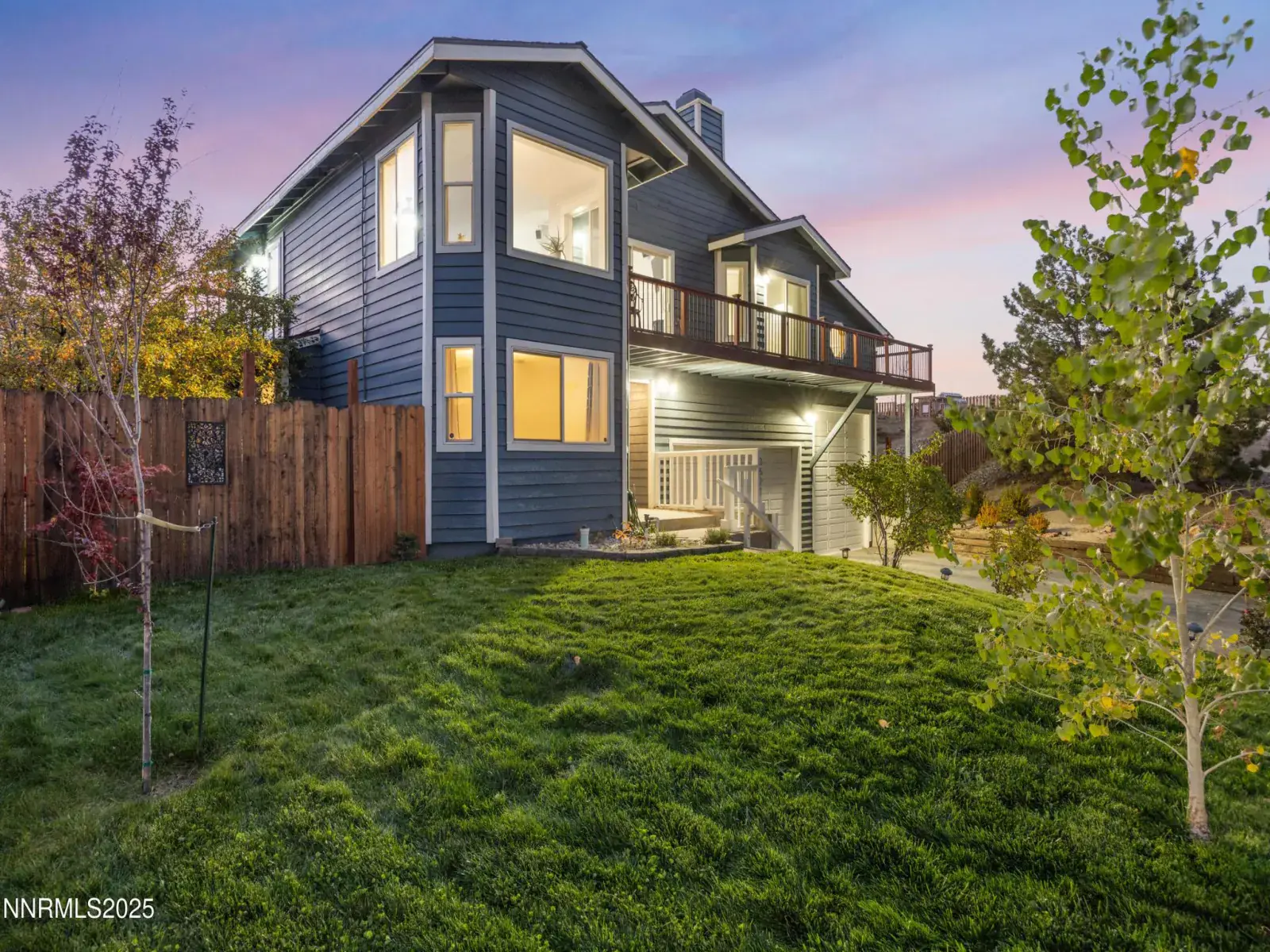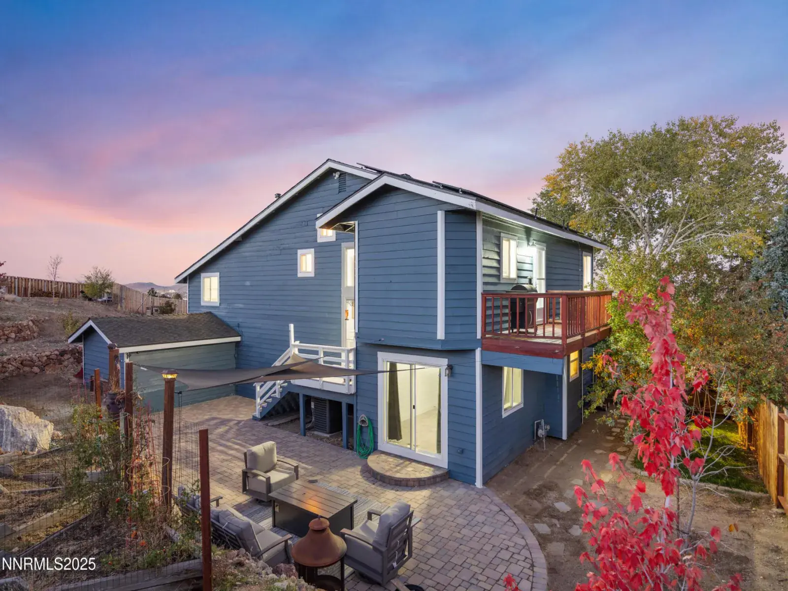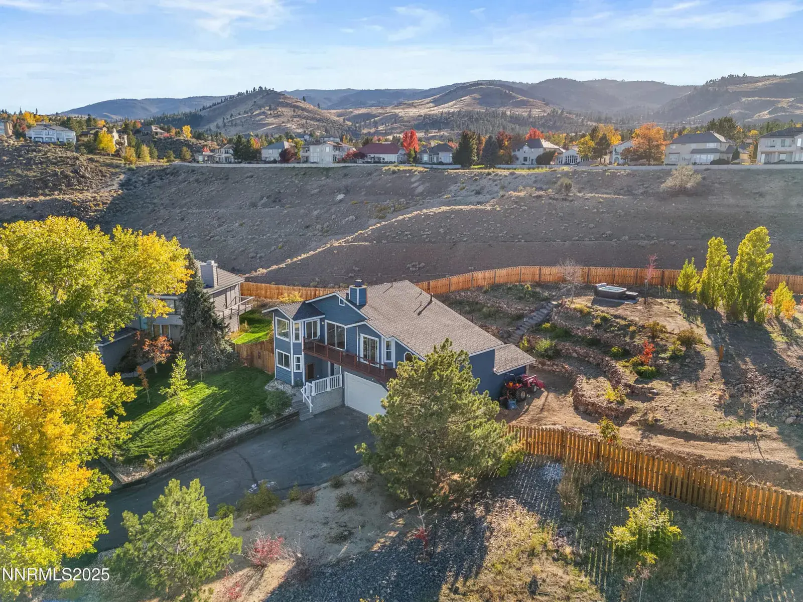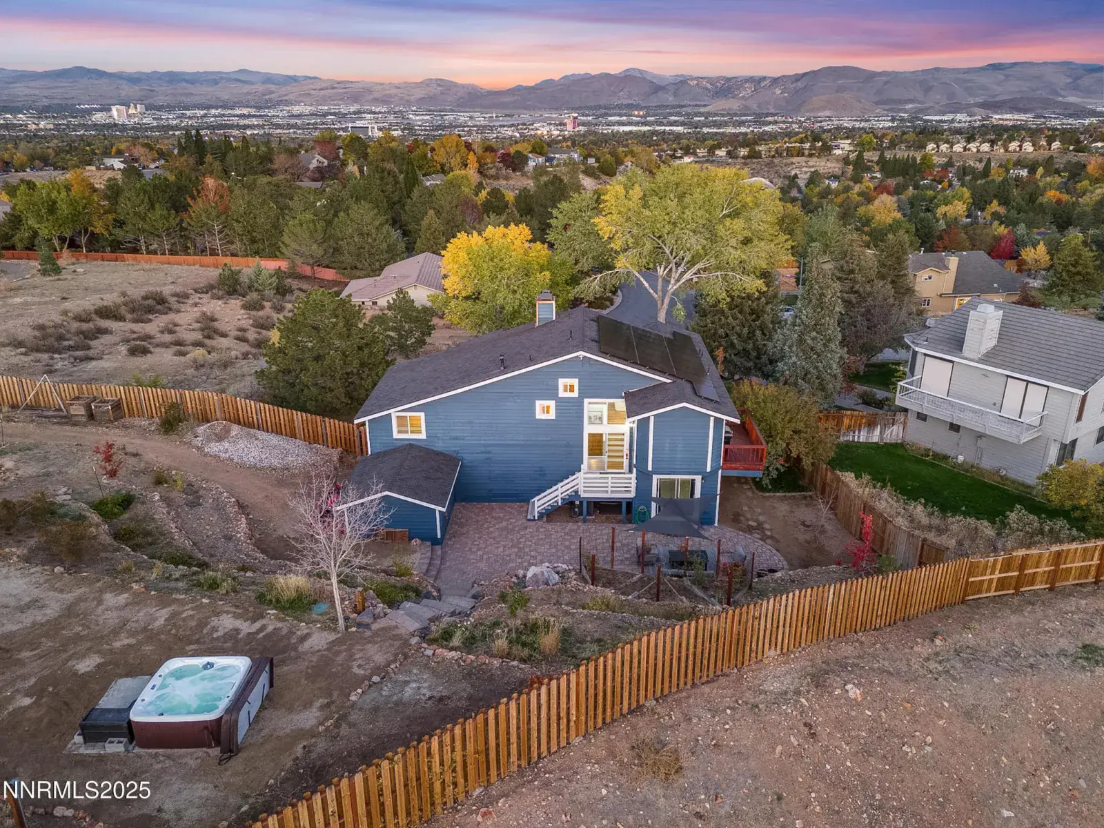 Your opportunity to own a home on an acre in one of the most highly desired neighborhoods of Old Southwest Reno has arrived! As you drive up to this gorgeous Caughlin Ranch home located in a quiet culdesac, you will be pleasantly surprised to see an oversized three car garage which features an RV garage in the third space. Upon entry, you will find teak hardwood floors, two bedrooms, a full bathroom, and the laundry area. As you walk up the stairs you will see the beautiful living space with views of the city from both the slider and large dining room windows, as well as the primary bedroom and attached flex space. With multiple decks along the front, side, and back of the home, there is no shortage of VIEWS. This home has been thoughtfully updated with stunning teak hardwood flooring installed in 2020, new roof (2020), siding painted in 2020, paid off solar installed in 2023, New AC and Furnaced installed in 2024, Tankless water heater installed in 2024, new fence in 2020, kitchen remodel in 2025, front and backyard irrigation, and a perfectly private split level backyard space with NO rear neighbors and walking steps to the hot tub pad — where you get the most stunning views from during your soak sesh. Do not miss your opportunity to call this one of a kind house a HOME.
