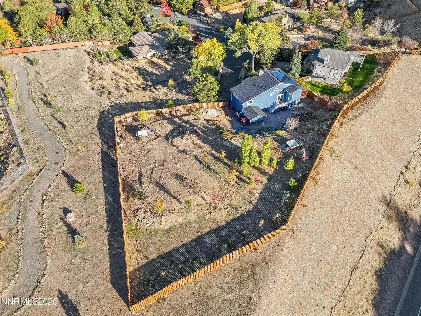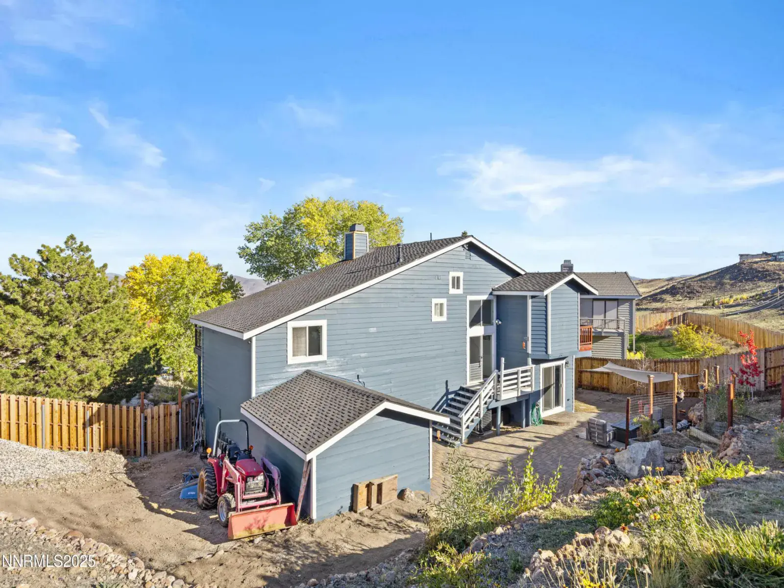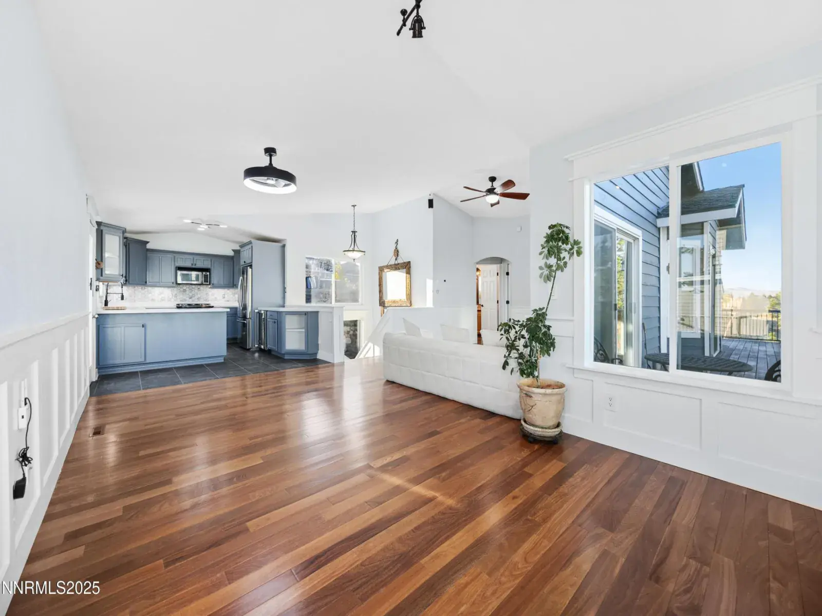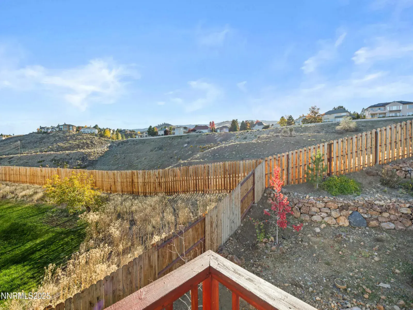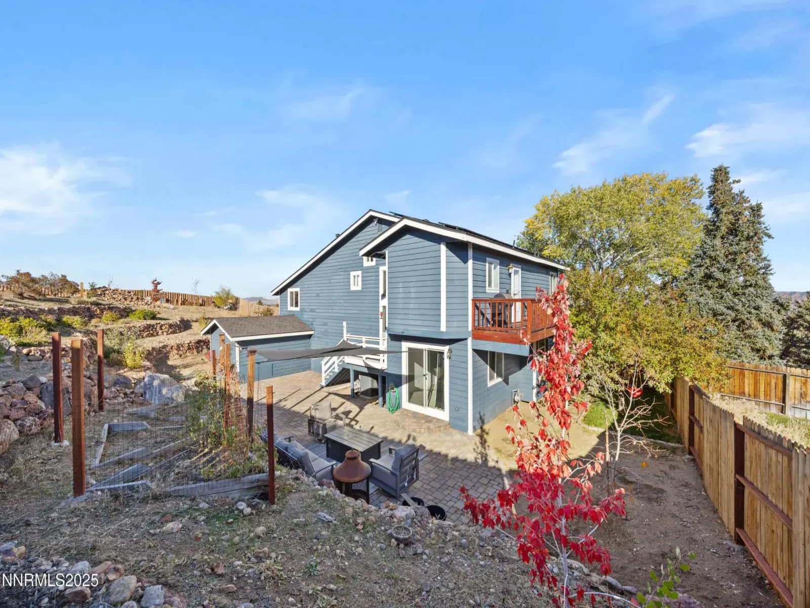 Your opportunity to own a home on an acre in one of the most highly desired neighborhoods of Old Southwest Reno has arrived! As you drive up to this gorgeous Caughlin Ranch home located in a quiet culdesac, you will be pleasantly surprised to see an oversized three car garage which features an RV garage in the third space. Upon entry, you will find teak hardwood floors, two bedrooms, a full bathroom, and the laundry area. As you walk up the stairs you will see the beautiful living space with views of the city from both the slider and large dining room windows, as well as the primary bedroom and attached flex space. With multiple decks along the front, side, and back of the home, there is no shortage of VIEWS. This home has been thoughtfully updated with stunning teak hardwood flooring installed in 2020, new roof (2020), siding painted in 2020, paid off solar installed in 2023, New AC and Furnaced installed in 2024, Tankless water heater installed in 2024, new fence in 2020, kitchen remodel in 2025, front and backyard irrigation, and a perfectly private split level backyard space with NO rear neighbors and walking steps to the hot tub pad — where you get the most stunning views from during your soak sesh. Do not miss your opportunity to call this one of a kind house a HOME.