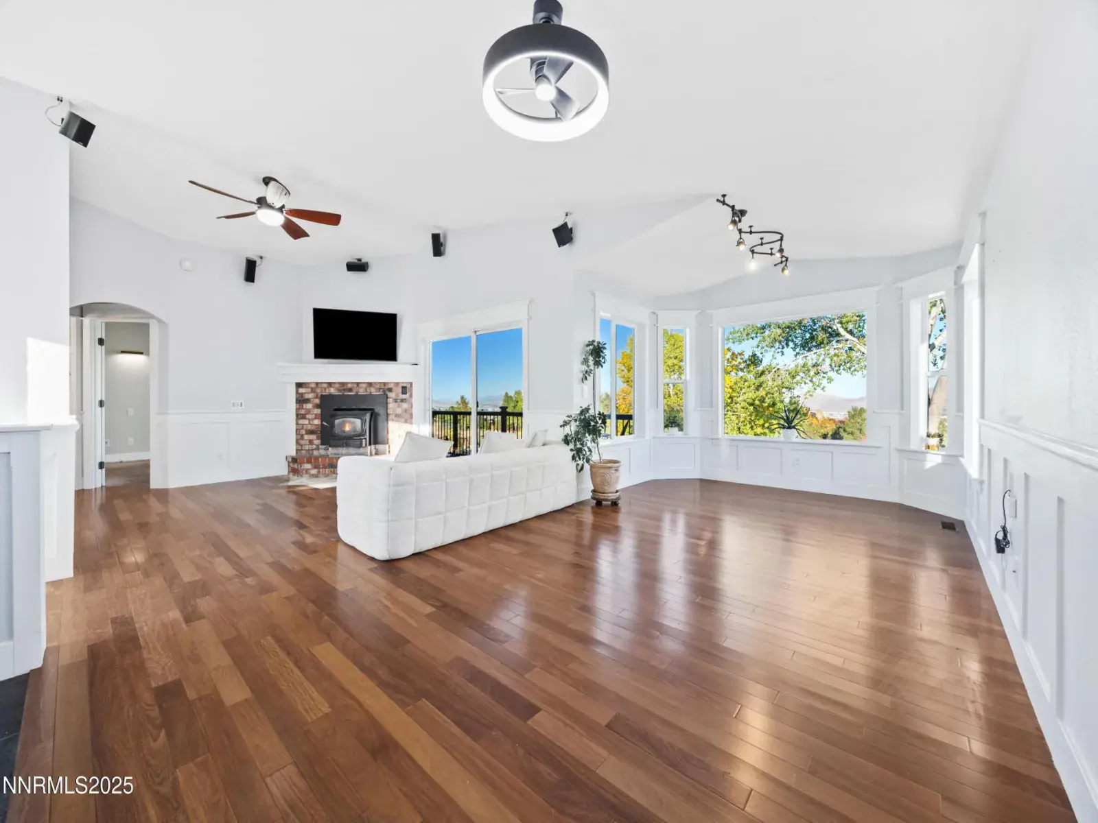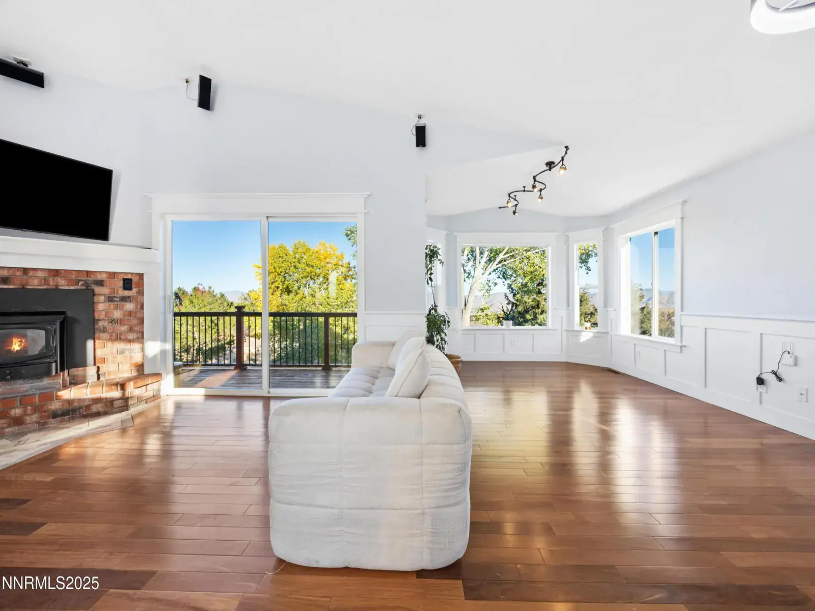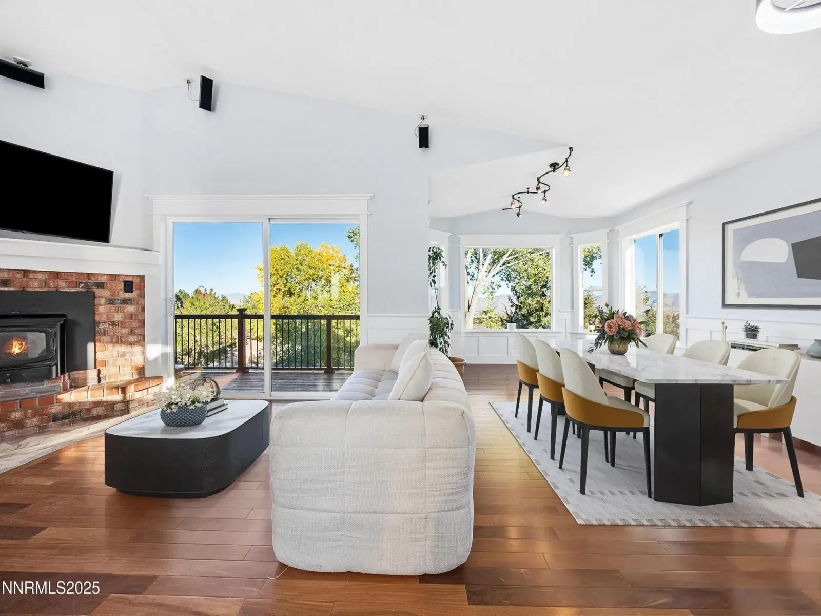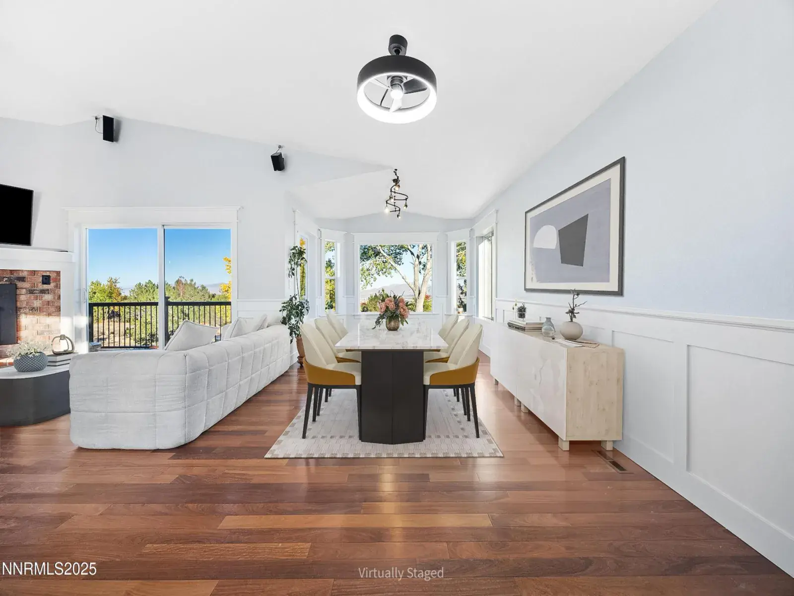 Your opportunity to own a home on an acre in one of the most highly desired neighborhoods of Old Southwest Reno has arrived! As you drive up to this gorgeous Caughlin Ranch home located in a quiet culdesac, you will be pleasantly surprised to see an oversized three car garage which features an RV garage in the third space. Upon entry, you will find teak hardwood floors, two bedrooms, a full bathroom, and the laundry area. As you walk up the stairs you will see the beautiful living space with views of the city from both the slider and large dining room windows, as well as the primary bedroom and attached flex space. With multiple decks along the front, side, and back of the home, there is no shortage of VIEWS. This home has been thoughtfully updated with stunning teak hardwood flooring installed in 2020, new roof (2020), siding painted in 2020, paid off solar installed in 2023, New AC and Furnaced installed in 2024, Tankless water heater installed in 2024, new fence in 2020, kitchen remodel in 2025, front and backyard irrigation, and a perfectly private split level backyard space with NO rear neighbors and walking steps to the hot tub pad — where you get the most stunning views from during your soak sesh. Do not miss your opportunity to call this one of a kind house a HOME.