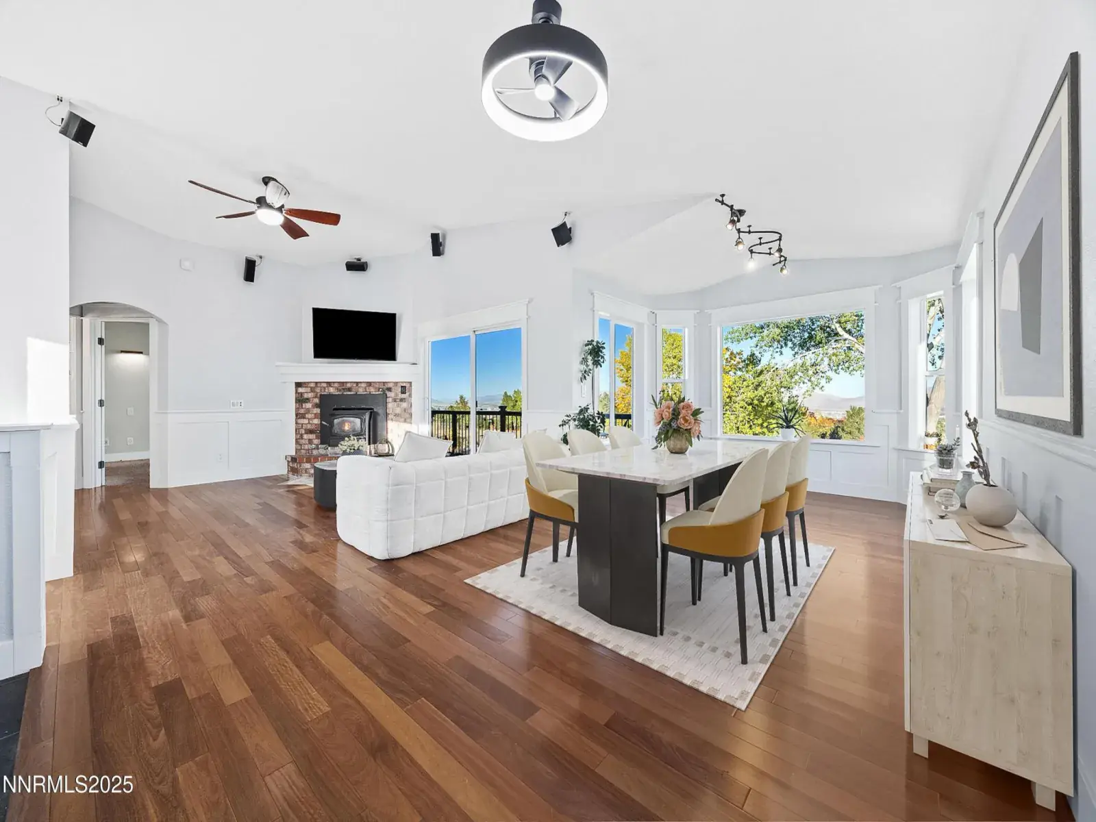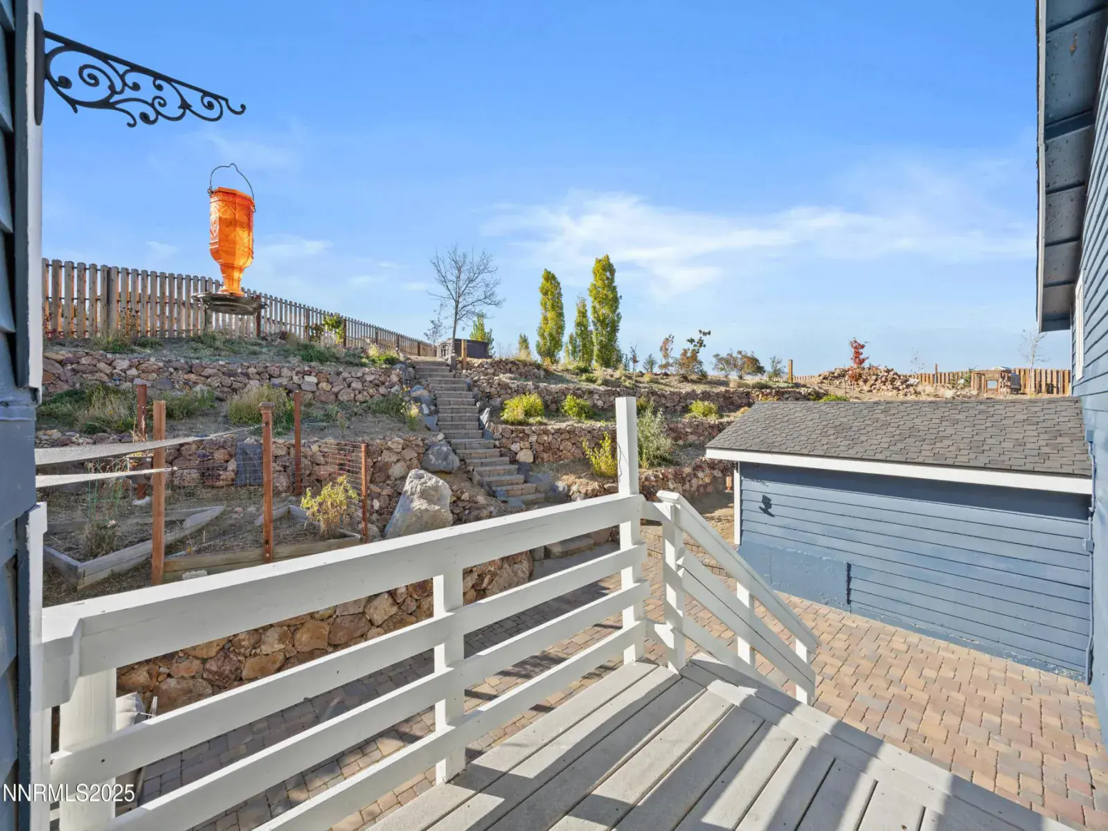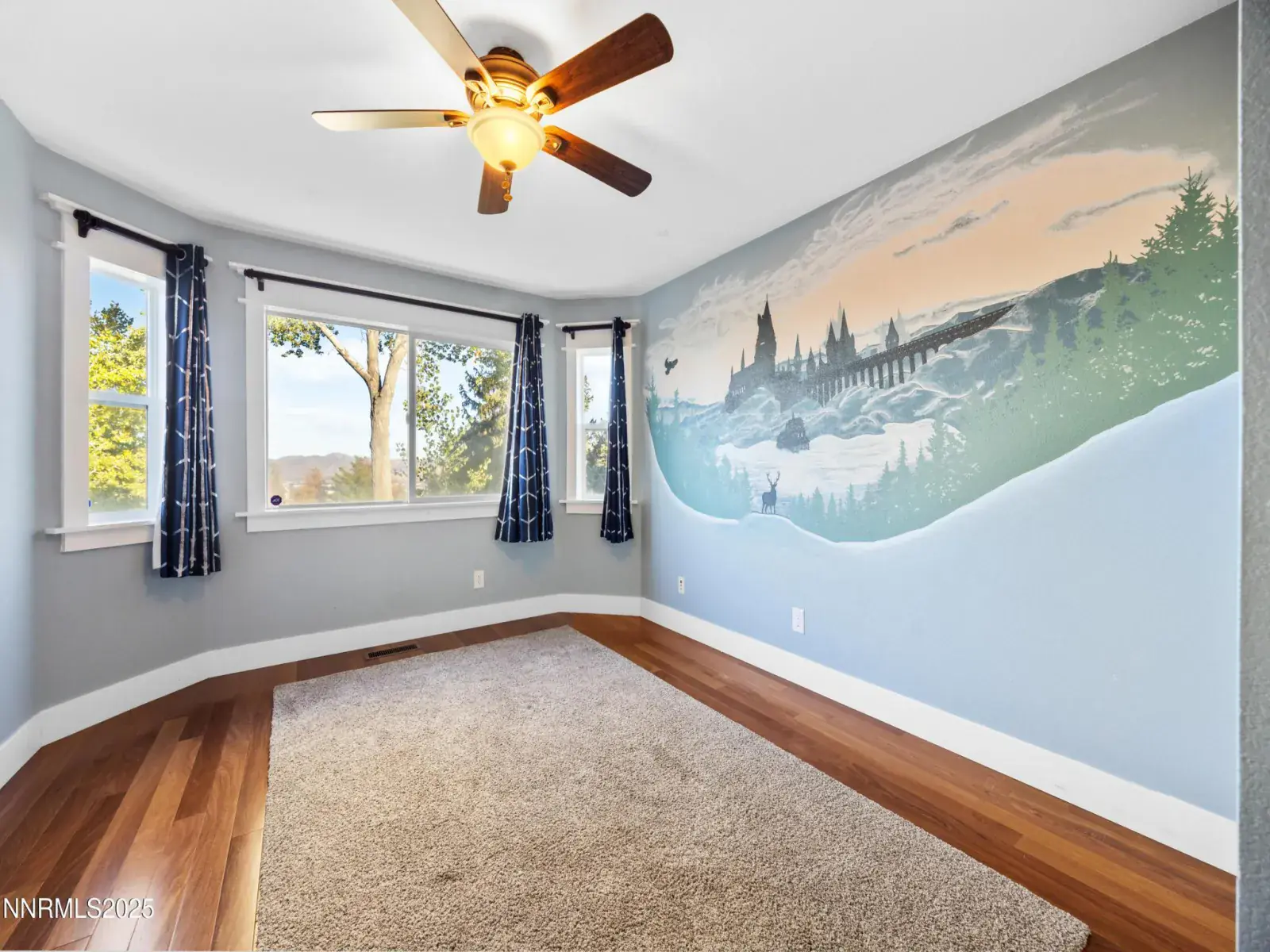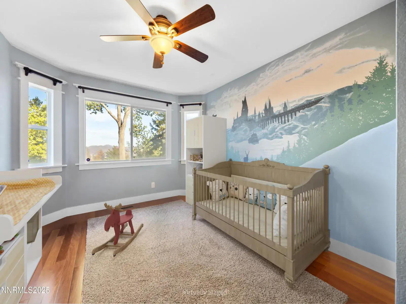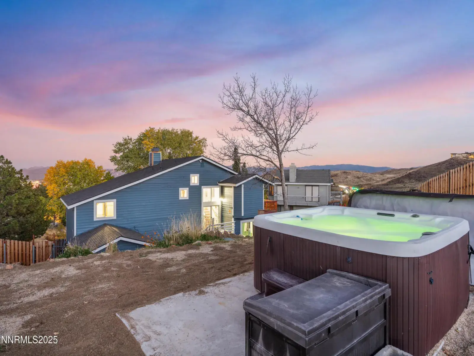 Your opportunity to own a home on an acre in one of the most highly desired neighborhoods of Old Southwest Reno has arrived! As you drive up to this gorgeous Caughlin Ranch home located in a quiet culdesac, you will be pleasantly surprised to see an oversized three car garage which features an RV garage in the third space. Upon entry, you will find teak hardwood floors, two bedrooms, a full bathroom, and the laundry area. As you walk up the stairs you will see the beautiful living space with views of the city from both the slider and large dining room windows, as well as the primary bedroom and attached flex space. With multiple decks along the front, side, and back of the home, there is no shortage of VIEWS. This home has been thoughtfully updated with stunning teak hardwood flooring installed in 2020, new roof (2020), siding painted in 2020, paid off solar installed in 2023, New AC and Furnaced installed in 2024, Tankless water heater installed in 2024, new fence in 2020, kitchen remodel in 2025, front and backyard irrigation, and a perfectly private split level backyard space with NO rear neighbors and walking steps to the hot tub pad — where you get the most stunning views from during your soak sesh. Do not miss your opportunity to call this one of a kind house a HOME.