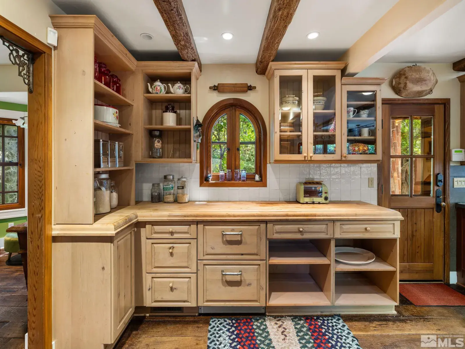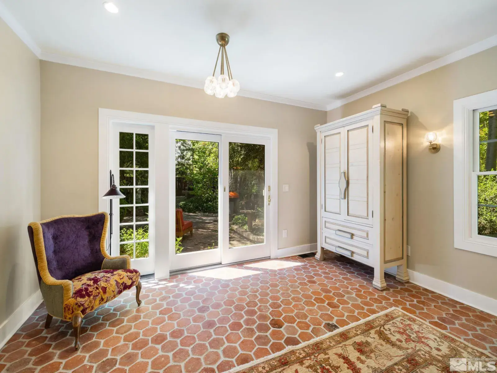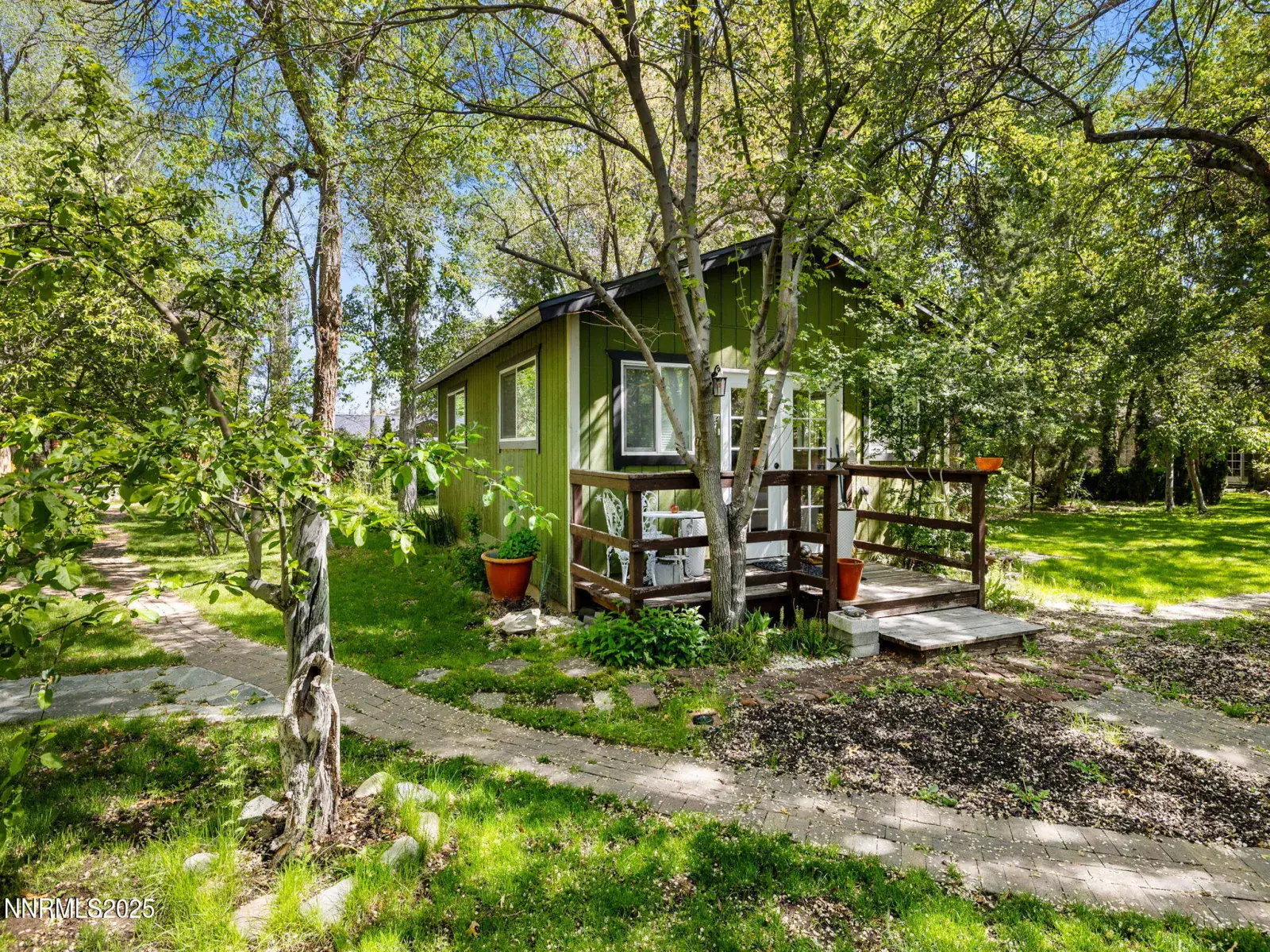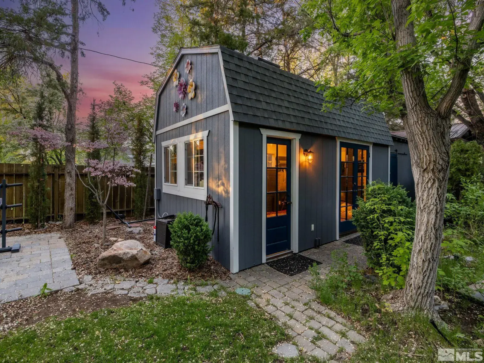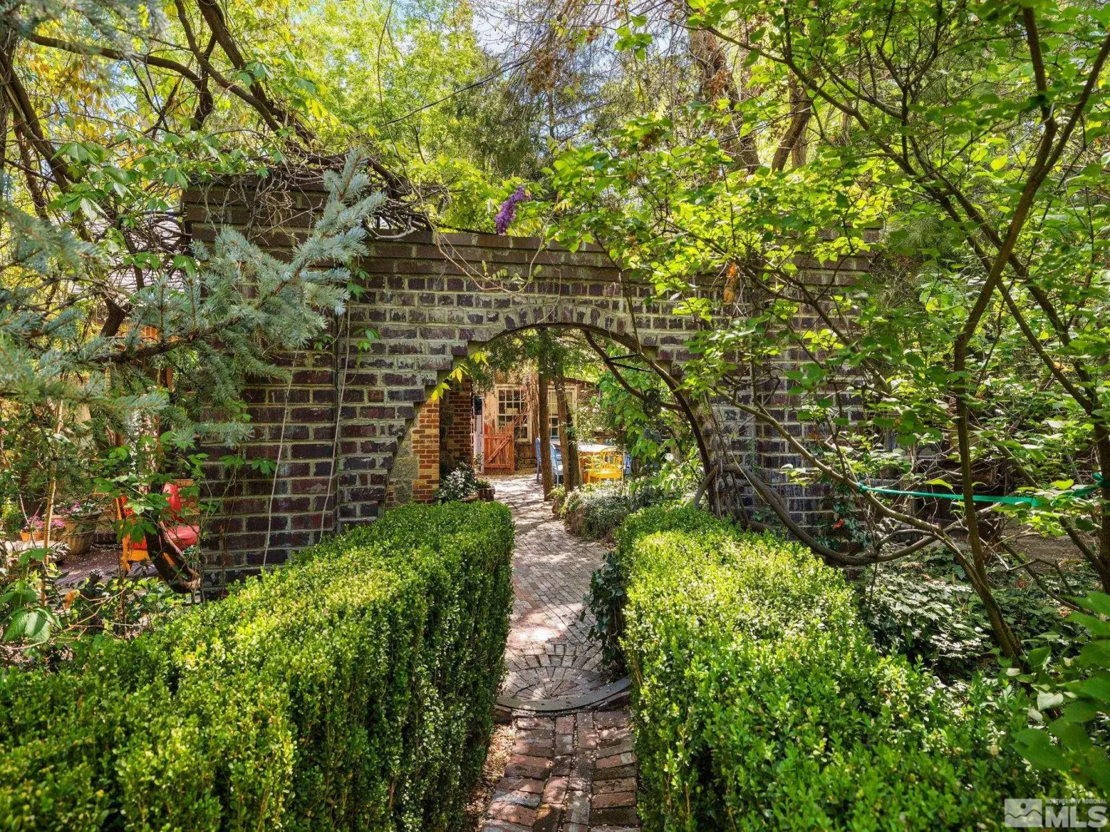 Now combined with 1550 Mount Rose, there are 3 homes that comprise this amazing estate. You would never know this private oasis is right in the middle of historic old southwest Reno. Offered for only the third time in a century, this jewel box estate sits on a 1.24 acre lot inspired by the cottages of England’s Cotswolds. The current owners spent 35 years meticulously crafting this into a one-of-a-kind property. The 2808 square foot main home, 840 square foot guesthouse, and 812 square foot additional guesthouse is enveloped in privacy by all the surrounding trees. Set back 50 feet from the street, the main home is practically invisible, enabling you to enjoy total privacy to roam the enchanted gardens. The main home has a granite stone and brick exterior, brick pillars with twisting Grapevine patterns, European iron sconces, and a welcoming arched front door. Features include handcrafted brushed cedar windows and doors, a cozy stone fireplace, Rocky Mountain bronze hardware, 300 year old salvaged French white oak floors and beams, hexagon antique terracotta tiles from France, and so much more. The kitchen offers separate zones for cooking and baking. The chef will enjoy the six burner Viking stove, French limestone counters, Heritage mahogany cabinets and Herbeau Fireclay farmhouse sink from France. The baker will delight in the custom marble countertop, Sub Zero drawers, and double Viking ovens. The dining room features a custom built William Ohs cabinet. Dine by the light of the Mimi London antique chandelier and exquisite Austrian sconces or dine outside on the patio at a table for 10 surrounded by extensive gardens. The primary bedroom is very spacious, featuring two cedar lined reach-in closets as well as two walk-in closets. The original flooring is intact and there are all new Pella double-hung windows and a large sliding door to the outside patio. Just outside you will find a hot tub and a separate 350 square foot workout studio with Peloton treadmill, high ceilings with skylights, and heated floors. The guest bedroom has welcoming salvaged terracotta tile flooring from France, lighting from Restoration Hardware and a new 8 foot sliding door to its own patio. The adjacent office could also be a third bedroom. It features English white wool carpet, Farrow & Ball wallpaper, two skylights and a new sliding door to a patio. The guest house has one bedroom, one bathroom, and a great room with nicely equipped kitchen. It has been updated with gas appliances, new water heater and furnace, two year old windows and newer roof. Use this fabulous home for older children, in-laws, guests or a caretaker, or as a short or long term rental. The grounds are truly exceptional, with gorgeous patios, meandering walkways, a Japanese moon gate, an extensive variety of old growth trees, boxwoods and flowers, in-ground gardens, multiple storage sheds, and 160 square foot greenhouse with plumbing and heating. All systems and electrical have been updated. Easily access the additional guest home at the back of the property from Mount Rose St. through an electric gate that welcomes you down the 145 foot driveway. An oversized carport provides ample space for vehicles, an RV, boat, toys or a workshop setup – an uncommon find in this area. This home was built in 1951 but remodeled in 2009. The thoughtfully designed interior features granite tile countertops, LG stainless steel appliances, wood windows, a tankless water heater, a spacious bedroom, walk-in closet and a spa like bathroom with stone walk-in shower. Enjoy summertime lounging by the sparkling 20X40 ft pool and rinse off in the super cool custom outdoor shower. The back patio is hot tub ready and there is an adorable shed for storage. The owners have plans for an enclosed garage adjacent to the main home that can be passed on to the buyer. Don’t miss the opportunity to make this exceptional home yours.
