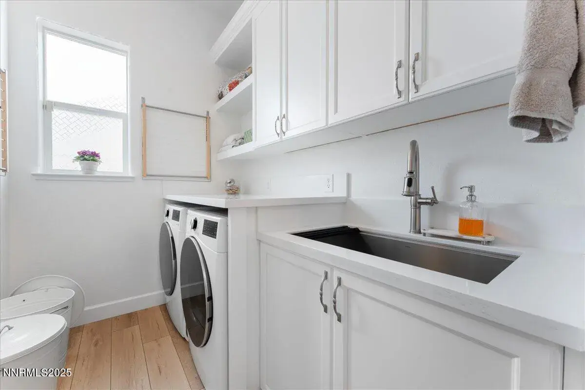 Cabinets, Laundry Room, Shelves, Sink, Washer Hookup