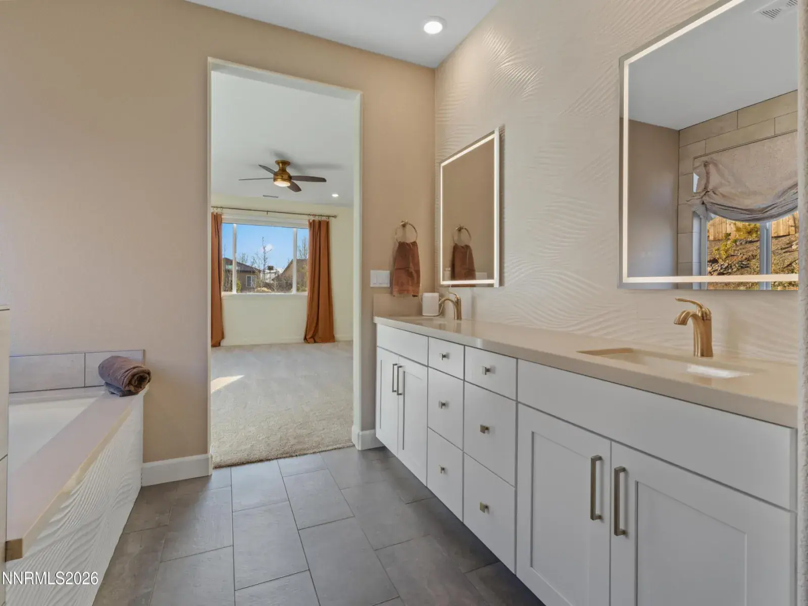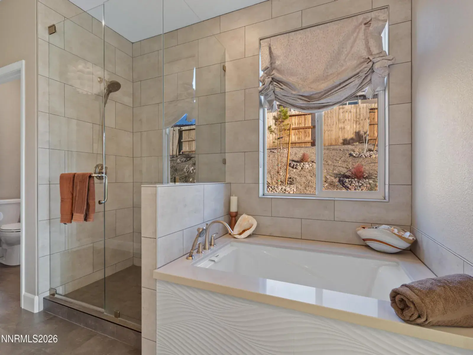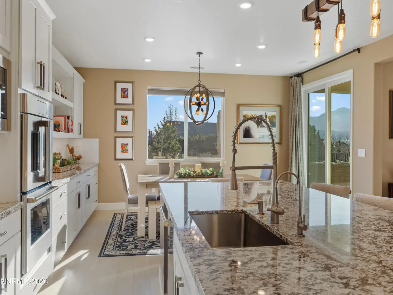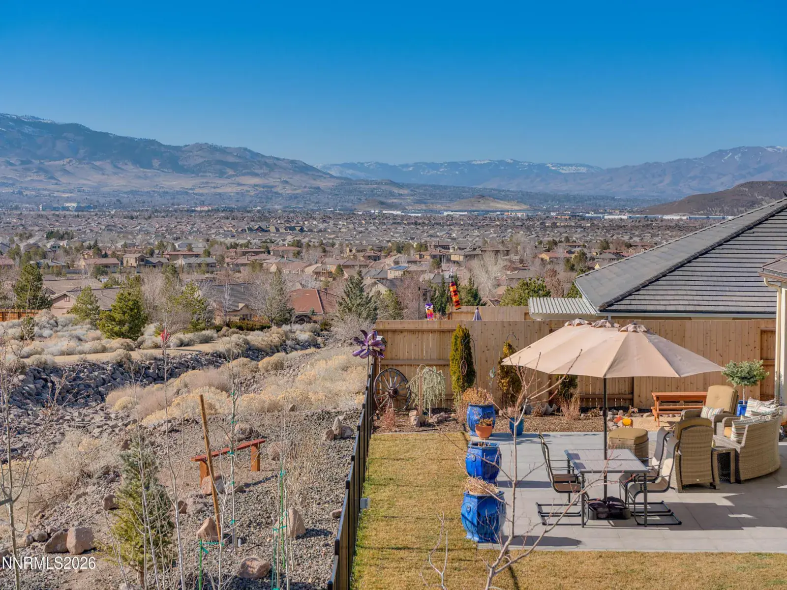 “Open house this Saturday from 10-1” Exceptional Home with Stunning Views and Custom Features Discover a one-of-a-kind property that truly stands out in this area. This home offers breathtaking views facing South toward Mount Rose, providing a picturesque backdrop every day. The gourmet kitchen is a chef’s dream, featuring a Monogram six-burner Professional Series range, double ovens with French doors, and a Monogram French door refrigerator. All cabinets are designed with soft-close drawers and custom rollouts, complemented by designer hardware, under-cabinet lighting, and a spacious walk-in pantry. Adjacent to the kitchen is a stylish bar area adorned with custom Hickory cabinets and fluted glass uppers, a wine and beverage fridge creating a stunning visual appeal. The great room is anchored by a striking 6 ft linear gas fireplace with remote control, showcasing Driftwood logs and River Rock. A custom solid oak mantle adds elegance, while recessed electrical outlets for the TV ensure a clean look. The wall features granite tile with a granite hearth, enhanced by custom two-tone paint and insulated window shades. Retreat to the primary bedroom, where luxury abounds. Experience heated tile floors and a custom-designed shower with oversized glass. The room also boasts a 5 ft soaking tub, designer Champagne Bronze hardware, LED dimmable anti-fog lighted mirrors, and Euro flower pendant lighting. With quartz countertops and ample storage, this space is both functional and serene. Step outside to a fully landscaped backyard that features 34 trees and a 750 ft tile patio, perfect for entertaining while enjoying the breathtaking views. There’s even a dedicated viewing area to soak in the scenery and a newer hot tub. Completing this exceptional property is an impressive 660 sq. ft. three-car garage, equipped with commercial-grade epoxy floors, additional can lights, and finished, textured walls and ceiling. With countless upgrades and meticulous attention to detail, this home truly has it all. A comprehensive list of features is attached for your review. Don’t miss the opportunity to make this remarkable property yours! Seller can make all furnishings available as well, check with listing agent!