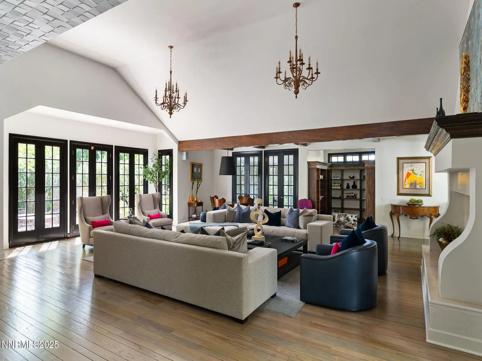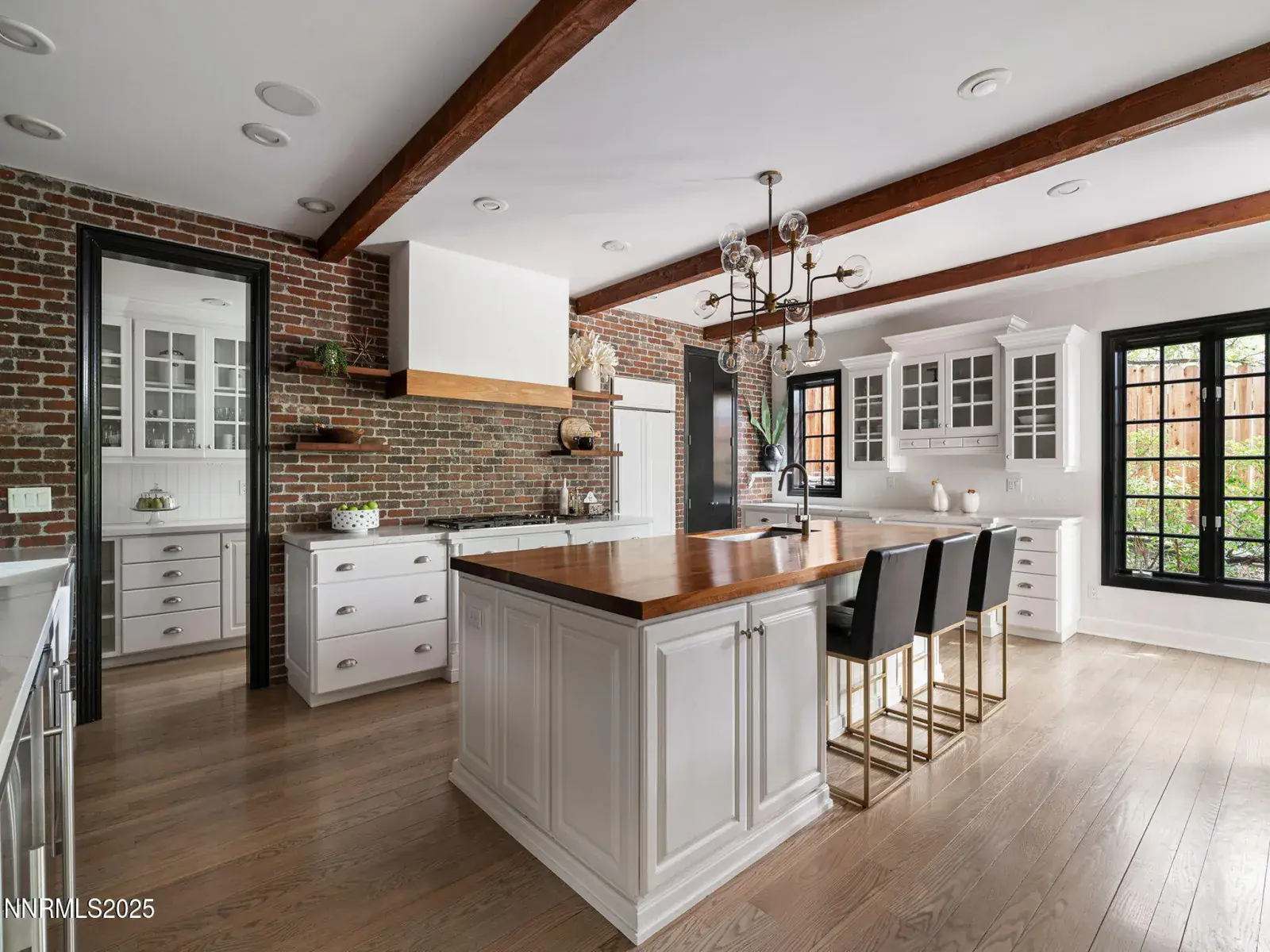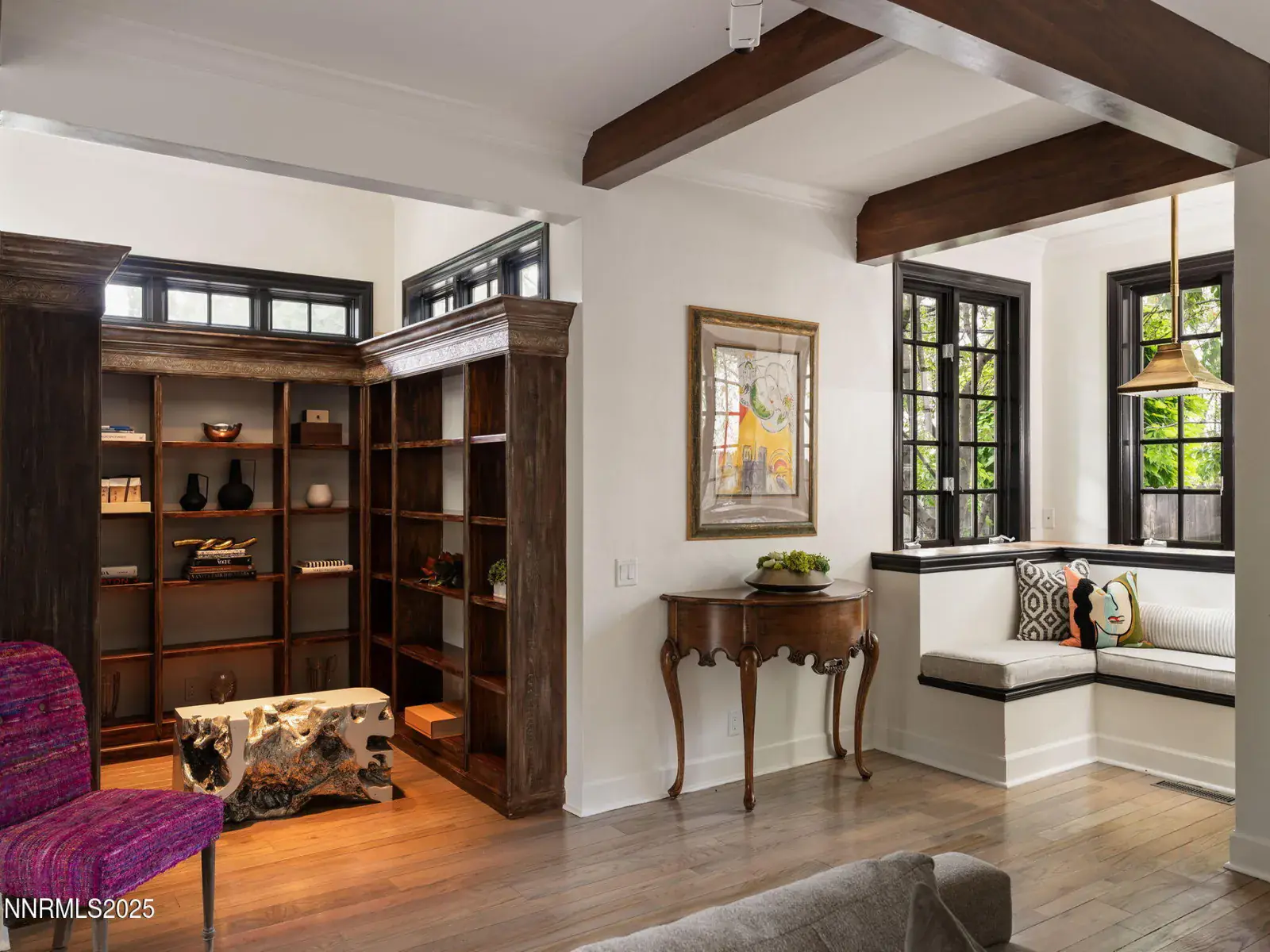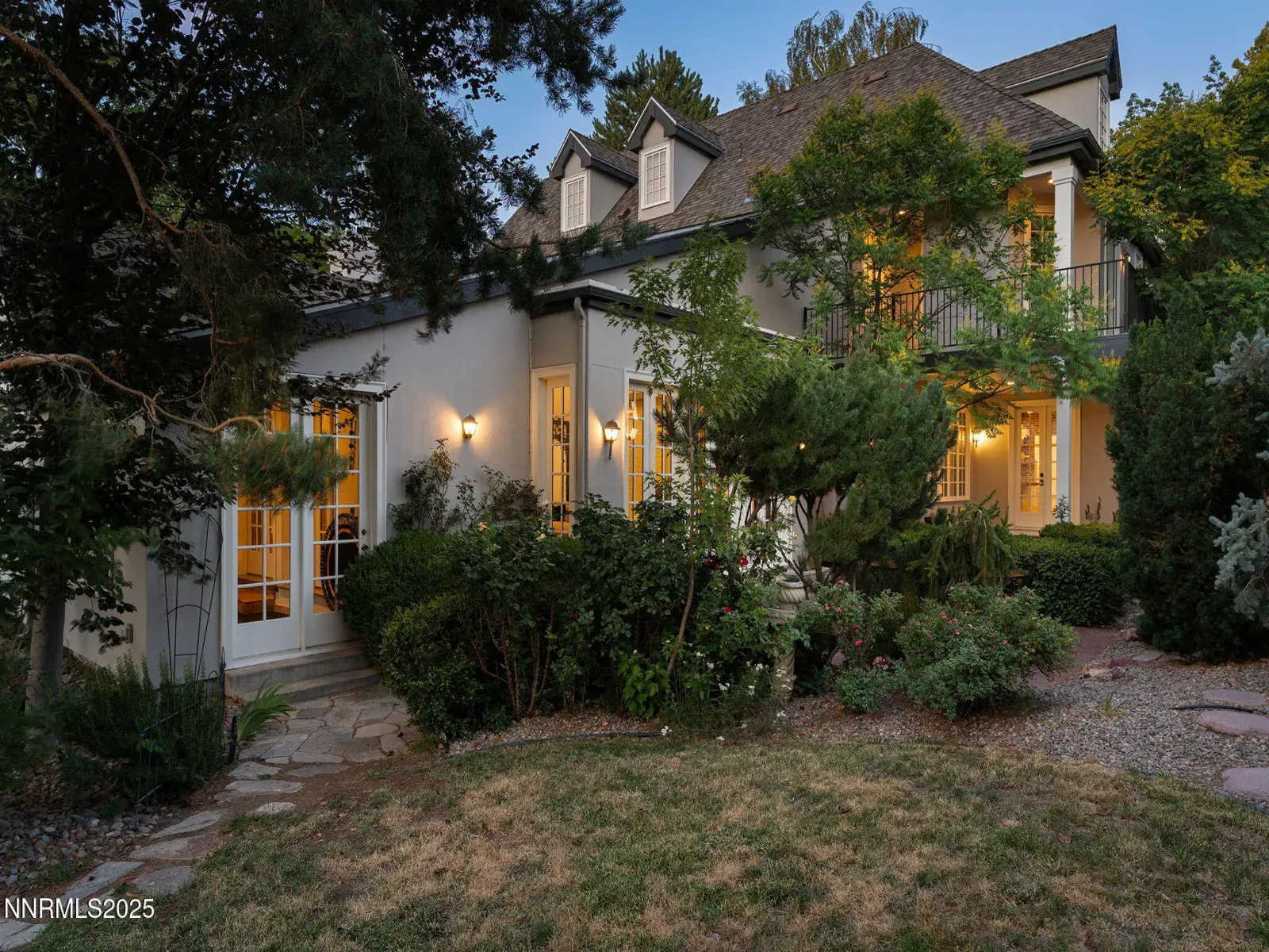 Confident, character-rich, and full of soul, this brick-and-plaster 4-bed/3.5-bath home combines old-world craftsmanship with quiet luxury across 5,699 square feet and a third of an acre. Nestled behind its French-inspired exterior on one of Reno’s most storied streets, it features a layered interior with soaring ceilings, artisan finishes, and a floor plan that unfolds into a rhythm of gathering spaces and private retreats. Every detail and corner tells a story, and the right buyer will feel it instantly. From the moment you step into the entry hall, it’s clear this isn’t a typical home. Artisan plaster walls, solid wood doors, and hand-honed finishes whisper of craftsmanship rarely seen in modern builds. The main-level suite has a fireplace, private terrace, radiant heated floors, and a boutique-worthy closet with floor-to-ceiling built-ins for seamless organization. Upstairs, a two-bedroom wing with a shared lounge and dry bar creates a tucked-away apartment-like zone—perfect for teens, guests, or anyone who values autonomy without absence. A second en-suite bedroom on the main level provides long-term flexibility for guests or multigenerational living. Another vaulted-beam bonus room offers space for a home office, media lounge, or creative studio. Vaulted ceilings with exposed beams and an arched fireplace give the living room architectural weight, while dual chandeliers add a subtle elegance. A grid of French doors and windows shapes the room’s rhythm and light. Despite its scale, the space envelops you with a built-in library and corners in which to gather or disappear. Off the living room, a converted garden studio with original brick floors serves as a home gym with views of the lush exterior. The kitchen invites you to make meals, memories, and moods. Brickwork and wood beam ceilings echo the entry and exterior, carrying the home’s language forward with warmth and texture. Custom cabinetry with soft-close drawers surrounds high-end appliances—including dual Sub-Zero refrigerator drawers, Café double ovens, Viking warming drawer, and a U-Line ice maker. A DCS Fisher & Paykel gas range with integrated ventilation stands ready for everything from weeknight dinners to holiday feasts. The dumbwaiter from the garage is a functional delight and a favorite party trick. Even the laundry room and functional closet just off the oversized garage have a point of view. With built-in cabinetry and finishes focused on everyday ease, everyday chores feel like a design moment. The garage features generous dimensions and clean finishes, offering storage and work space beyond parking. Outside, a brick path winds through shaded patios, fruit trees, terraced garden beds, and grassy expanses. Multiple seating areas—some open-air, others tucked beneath eaves—offer places to gather, pause, and exhale. A private courtyard—shaped by layers of landscape and framed by brick—has hosted vow renewals, milestone photos, and other meaningful celebrations over the years. A powered outbuilding with a Dutch door, surrounded by irrigated raised planting beds, anchors a corner of the yard with both purpose and potential. And then there’s the history of Greenridge itself, one of Reno’s original prestige neighborhoods. Developed in the 1930s by Norman Biltz and modeled after luxury subdivisions in Beverly Hills and the East Coast, it once drew names like Doris Duke, Clark Gable, and Marilyn Monroe. Today, the neighborhood has traded celebrity sightings for Halloween magic shows, front-yard wine nights, and strolls with dogs and drinks in tow. People wave from lawn chairs as children roam the curved streets on scooters and bikes, or walk to the nearby golf course for a Coke and fries. Homes like this—so layered, so finished, so cherished—are increasingly rare and even more so in neighborhoods like this.