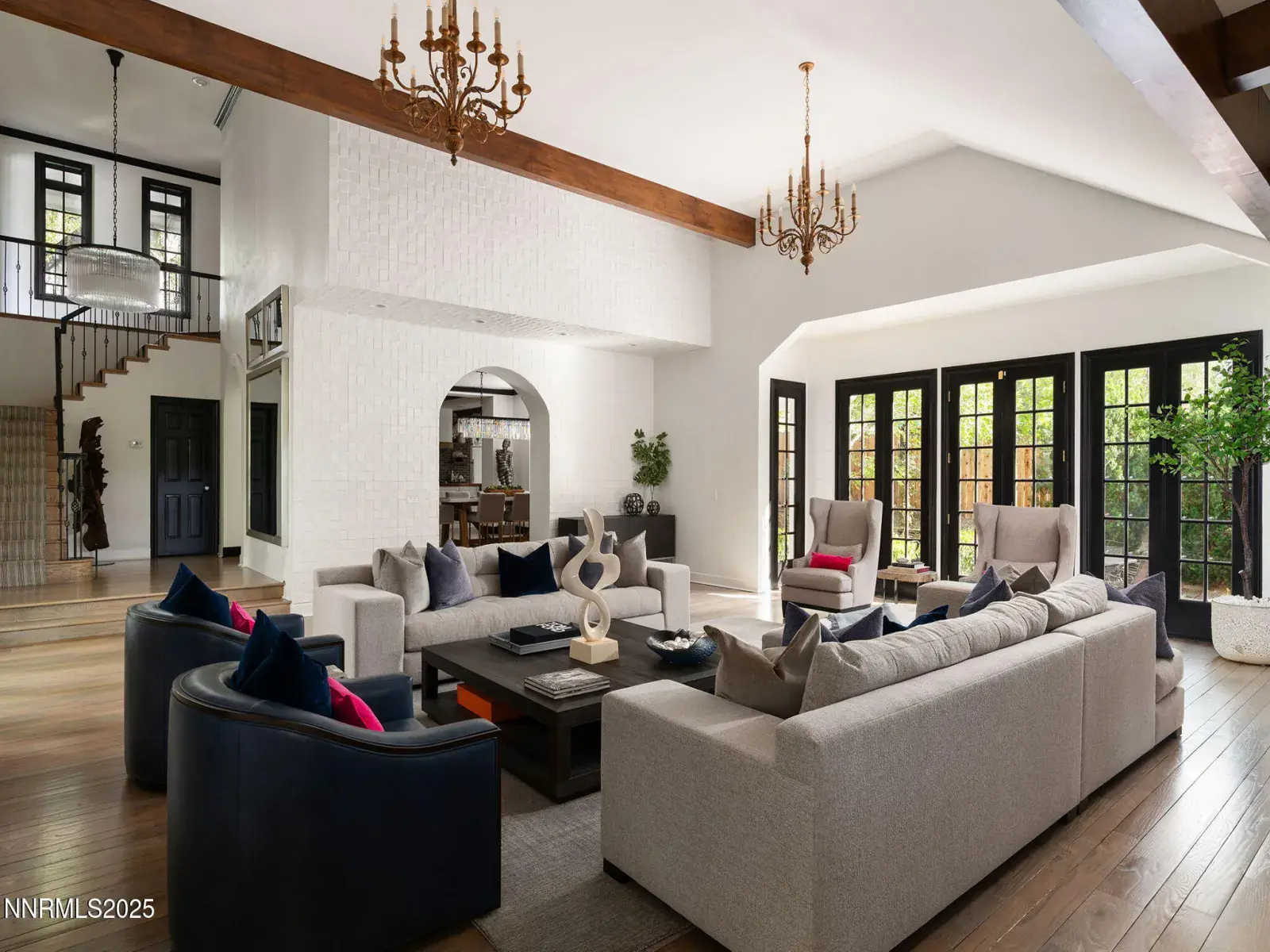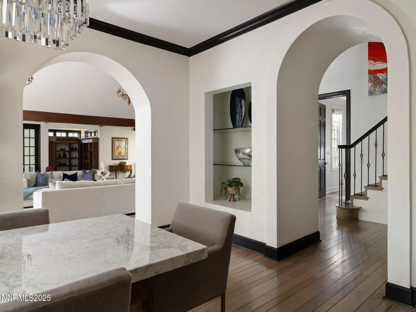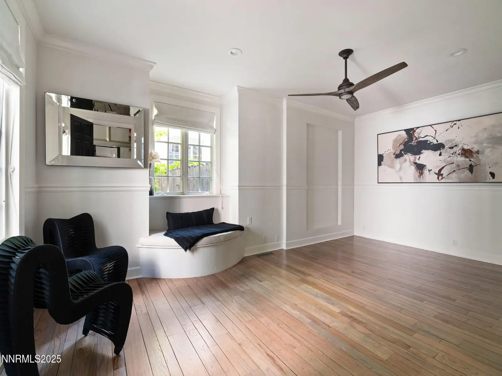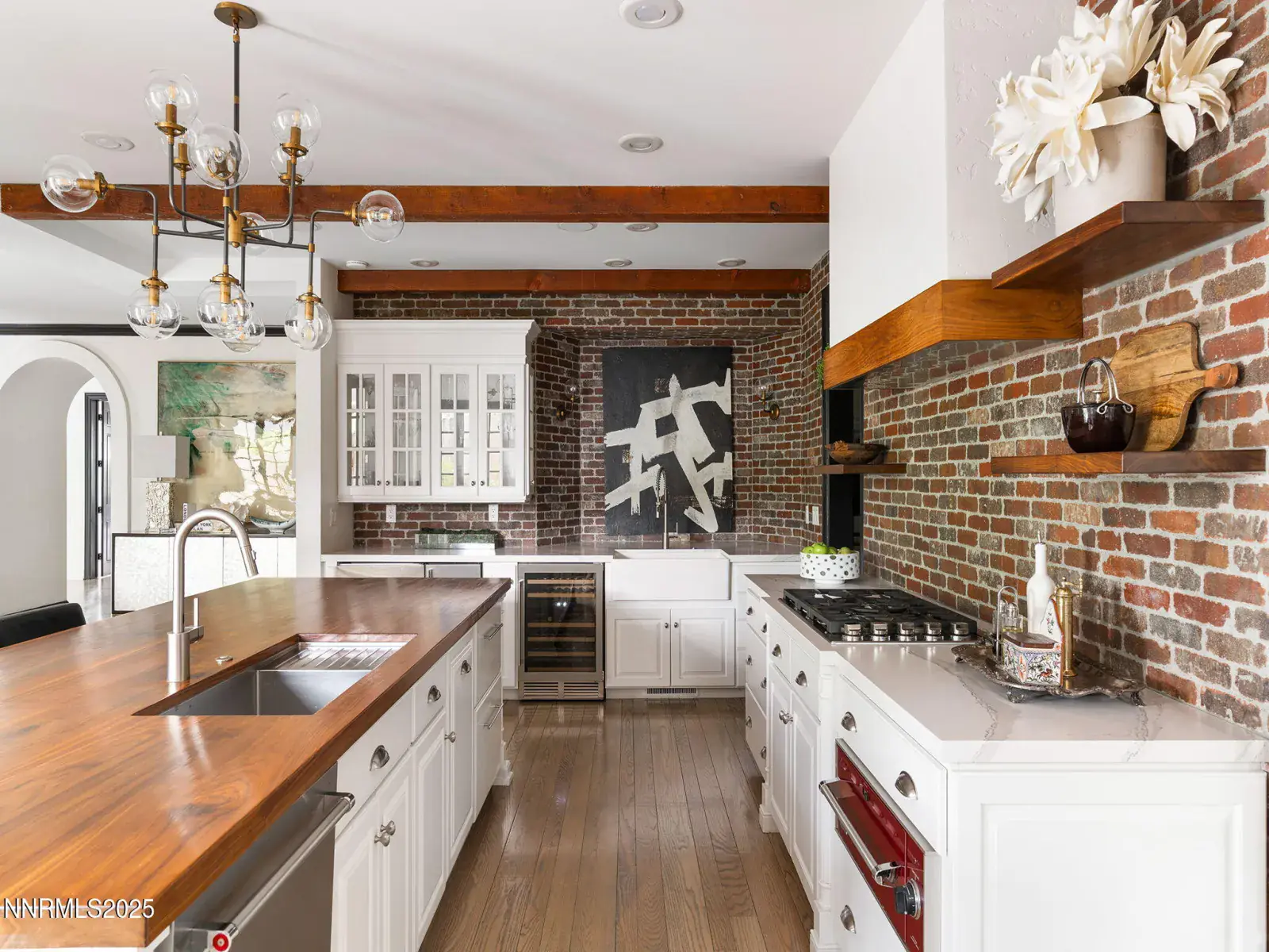 Confident, character-rich, and full of soul, this brick-and-plaster 4-bed/3.5-bath home combines old-world craftsmanship with quiet luxury across 5,699 square feet and a third of an acre. Nestled behind its French-inspired exterior on one of Reno’s most storied streets, it features a layered interior with soaring ceilings, artisan finishes, and a floor plan that unfolds into a rhythm of gathering spaces and private retreats. Every detail and corner tells a story, and the right buyer will feel it instantly. From the moment you step into the entry hall, it’s clear this isn’t a typical home. Artisan plaster walls, solid wood doors, and hand-honed finishes whisper of craftsmanship rarely seen in modern builds. The main-level suite has a fireplace, private terrace, radiant heated floors, and a boutique-worthy closet with floor-to-ceiling built-ins for seamless organization. Upstairs, a two-bedroom wing with a shared lounge and dry bar creates a tucked-away apartment-like zone—perfect for teens, guests, or anyone who values autonomy without absence. A second en-suite bedroom on the main level provides long-term flexibility for guests or multigenerational living. Another vaulted-beam bonus room offers space for a home office, media lounge, or creative studio. Vaulted ceilings with exposed beams and an arched fireplace give the living room architectural weight, while dual chandeliers add a subtle elegance. A grid of French doors and windows shapes the room’s rhythm and light. Despite its scale, the space envelops you with a built-in library and corners in which to gather or disappear. Off the living room, a converted garden studio with original brick floors serves as a home gym with views of the lush exterior. The kitchen invites you to make meals, memories, and moods. Brickwork and wood beam ceilings echo the entry and exterior, carrying the home’s language forward with warmth and texture. Custom cabinetry with soft-close drawers surrounds high-end appliances—including dual Sub-Zero refrigerator drawers, Café double ovens, Viking warming drawer, and a U-Line ice maker. A DCS Fisher & Paykel gas range with integrated ventilation stands ready for everything from weeknight dinners to holiday feasts. The dumbwaiter from the garage is a functional delight and a favorite party trick. Even the laundry room and functional closet just off the oversized garage have a point of view. With built-in cabinetry and finishes focused on everyday ease, everyday chores feel like a design moment. The garage features generous dimensions and clean finishes, offering storage and work space beyond parking. Outside, a brick path winds through shaded patios, fruit trees, terraced garden beds, and grassy expanses. Multiple seating areas—some open-air, others tucked beneath eaves—offer places to gather, pause, and exhale. A private courtyard—shaped by layers of landscape and framed by brick—has hosted vow renewals, milestone photos, and other meaningful celebrations over the years. A powered outbuilding with a Dutch door, surrounded by irrigated raised planting beds, anchors a corner of the yard with both purpose and potential. And then there’s the history of Greenridge itself, one of Reno’s original prestige neighborhoods. Developed in the 1930s by Norman Biltz and modeled after luxury subdivisions in Beverly Hills and the East Coast, it once drew names like Doris Duke, Clark Gable, and Marilyn Monroe. Today, the neighborhood has traded celebrity sightings for Halloween magic shows, front-yard wine nights, and strolls with dogs and drinks in tow. People wave from lawn chairs as children roam the curved streets on scooters and bikes, or walk to the nearby golf course for a Coke and fries. Homes like this—so layered, so finished, so cherished—are increasingly rare and even more so in neighborhoods like this.