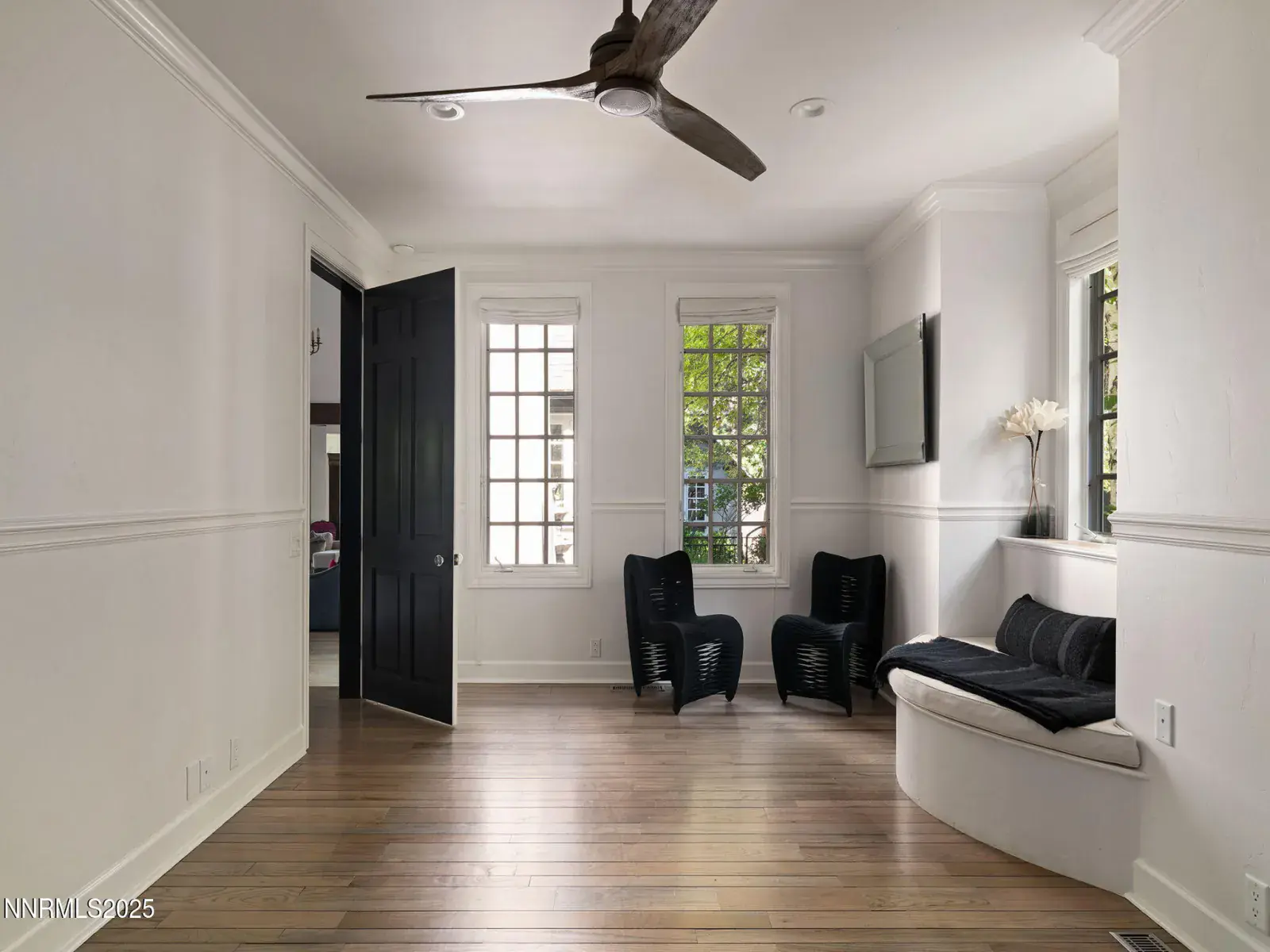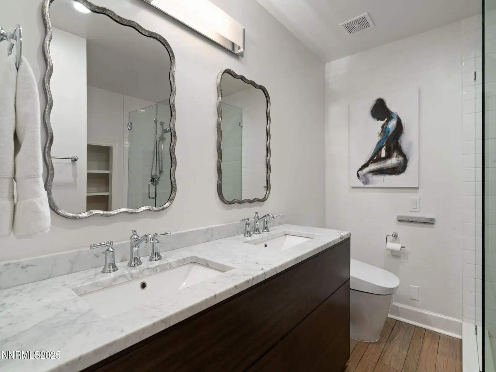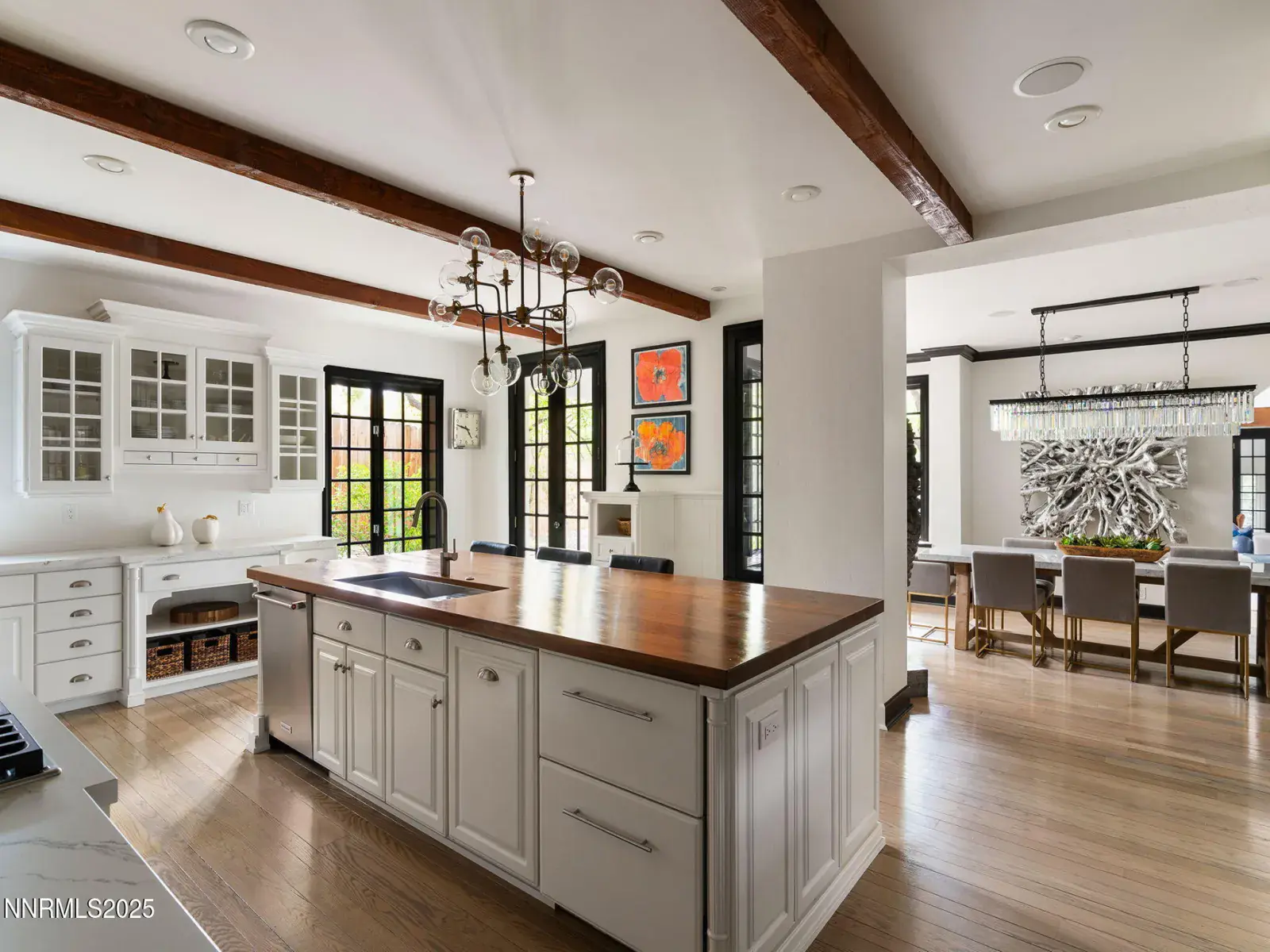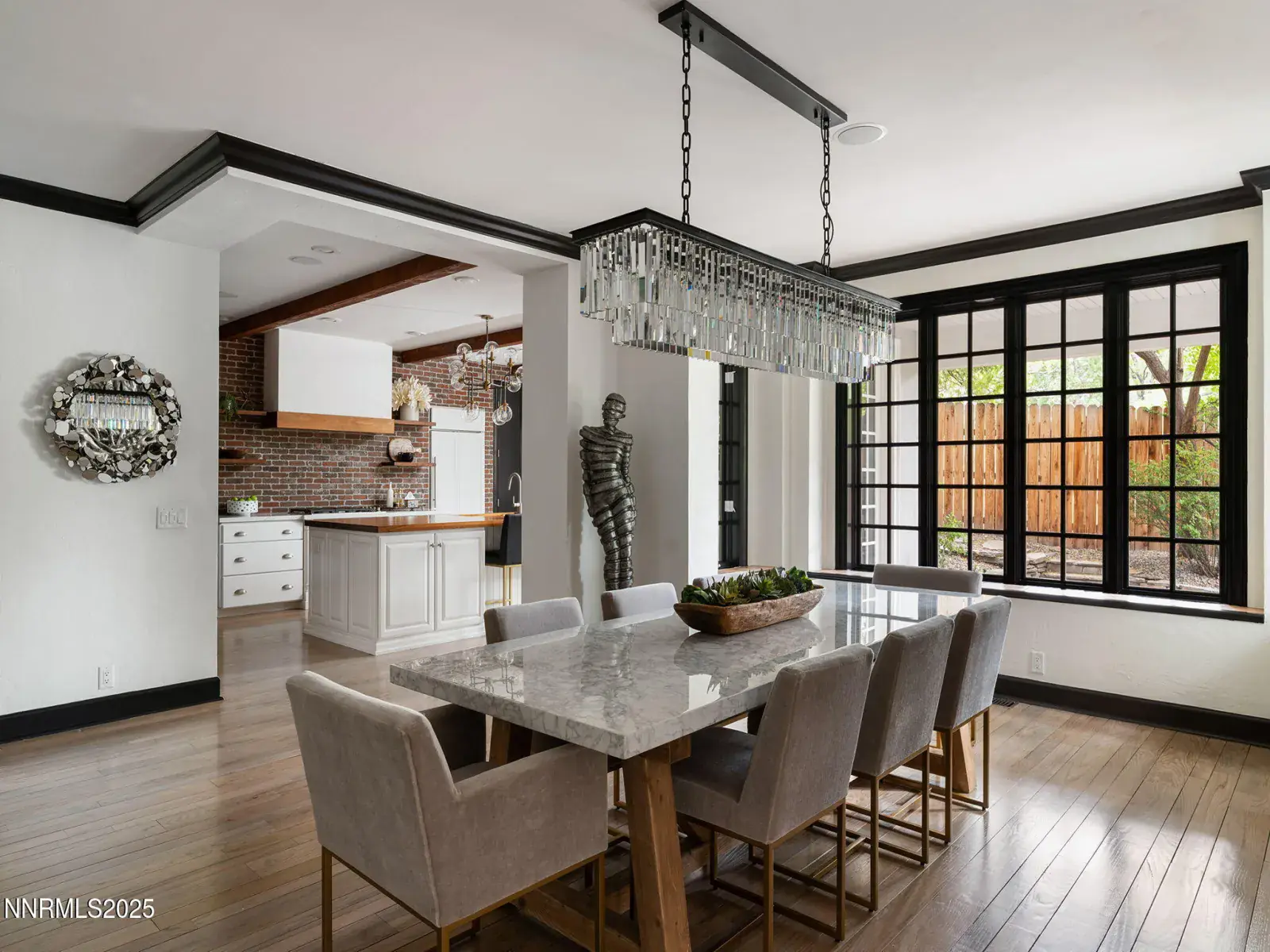 Confident, character-rich, and full of soul, this brick-and-plaster 4-bed/3.5-bath home combines old-world craftsmanship with quiet luxury across 5,699 square feet and a third of an acre. Nestled behind its French-inspired exterior on one of Reno’s most storied streets, it features a layered interior with soaring ceilings, artisan finishes, and a floor plan that unfolds into a rhythm of gathering spaces and private retreats. Every detail and corner tells a story, and the right buyer will feel it instantly. From the moment you step into the entry hall, it’s clear this isn’t a typical home. Artisan plaster walls, solid wood doors, and hand-honed finishes whisper of craftsmanship rarely seen in modern builds. The main-level suite has a fireplace, private terrace, radiant heated floors, and a boutique-worthy closet with floor-to-ceiling built-ins for seamless organization. Upstairs, a two-bedroom wing with a shared lounge and dry bar creates a tucked-away apartment-like zone—perfect for teens, guests, or anyone who values autonomy without absence. A second en-suite bedroom on the main level provides long-term flexibility for guests or multigenerational living. Another vaulted-beam bonus room offers space for a home office, media lounge, or creative studio. Vaulted ceilings with exposed beams and an arched fireplace give the living room architectural weight, while dual chandeliers add a subtle elegance. A grid of French doors and windows shapes the room’s rhythm and light. Despite its scale, the space envelops you with a built-in library and corners in which to gather or disappear. Off the living room, a converted garden studio with original brick floors serves as a home gym with views of the lush exterior. The kitchen invites you to make meals, memories, and moods. Brickwork and wood beam ceilings echo the entry and exterior, carrying the home’s language forward with warmth and texture. Custom cabinetry with soft-close drawers surrounds high-end appliances—including dual Sub-Zero refrigerator drawers, Café double ovens, Viking warming drawer, and a U-Line ice maker. A DCS Fisher & Paykel gas range with integrated ventilation stands ready for everything from weeknight dinners to holiday feasts. The dumbwaiter from the garage is a functional delight and a favorite party trick. Even the laundry room and functional closet just off the oversized garage have a point of view. With built-in cabinetry and finishes focused on everyday ease, everyday chores feel like a design moment. The garage features generous dimensions and clean finishes, offering storage and work space beyond parking. Outside, a brick path winds through shaded patios, fruit trees, terraced garden beds, and grassy expanses. Multiple seating areas—some open-air, others tucked beneath eaves—offer places to gather, pause, and exhale. A private courtyard—shaped by layers of landscape and framed by brick—has hosted vow renewals, milestone photos, and other meaningful celebrations over the years. A powered outbuilding with a Dutch door, surrounded by irrigated raised planting beds, anchors a corner of the yard with both purpose and potential. And then there’s the history of Greenridge itself, one of Reno’s original prestige neighborhoods. Developed in the 1930s by Norman Biltz and modeled after luxury subdivisions in Beverly Hills and the East Coast, it once drew names like Doris Duke, Clark Gable, and Marilyn Monroe. Today, the neighborhood has traded celebrity sightings for Halloween magic shows, front-yard wine nights, and strolls with dogs and drinks in tow. People wave from lawn chairs as children roam the curved streets on scooters and bikes, or walk to the nearby golf course for a Coke and fries. Homes like this—so layered, so finished, so cherished—are increasingly rare and even more so in neighborhoods like this.