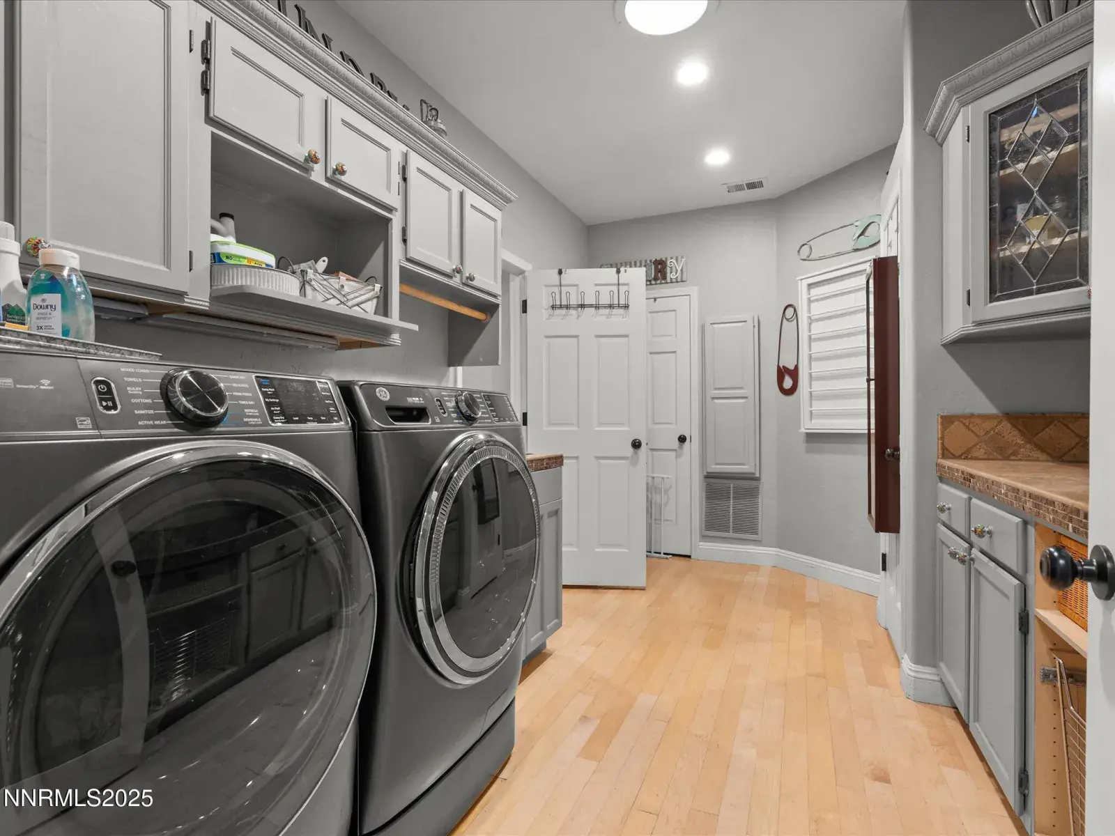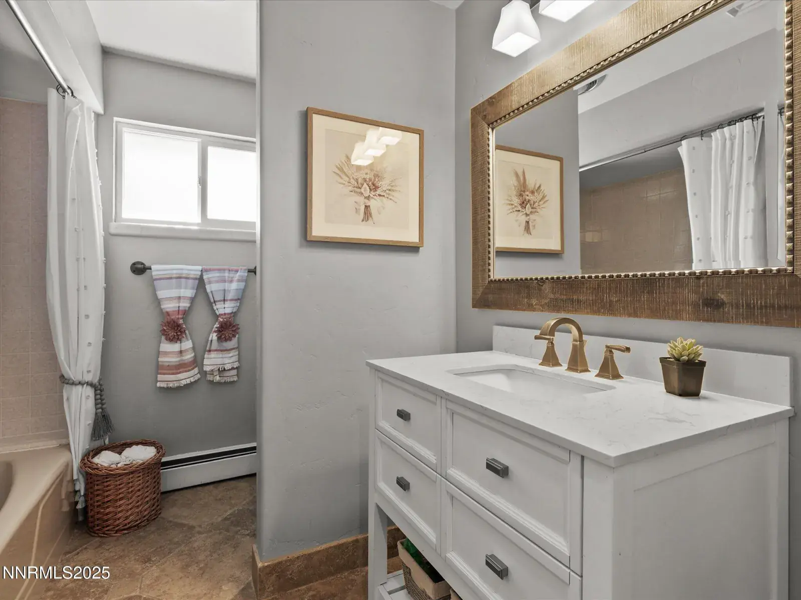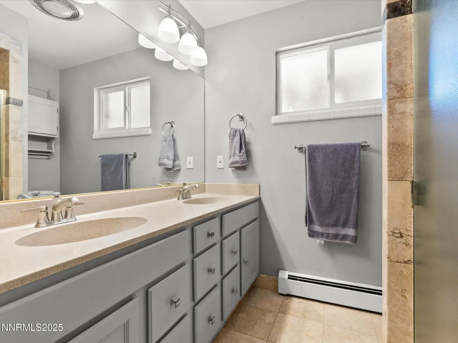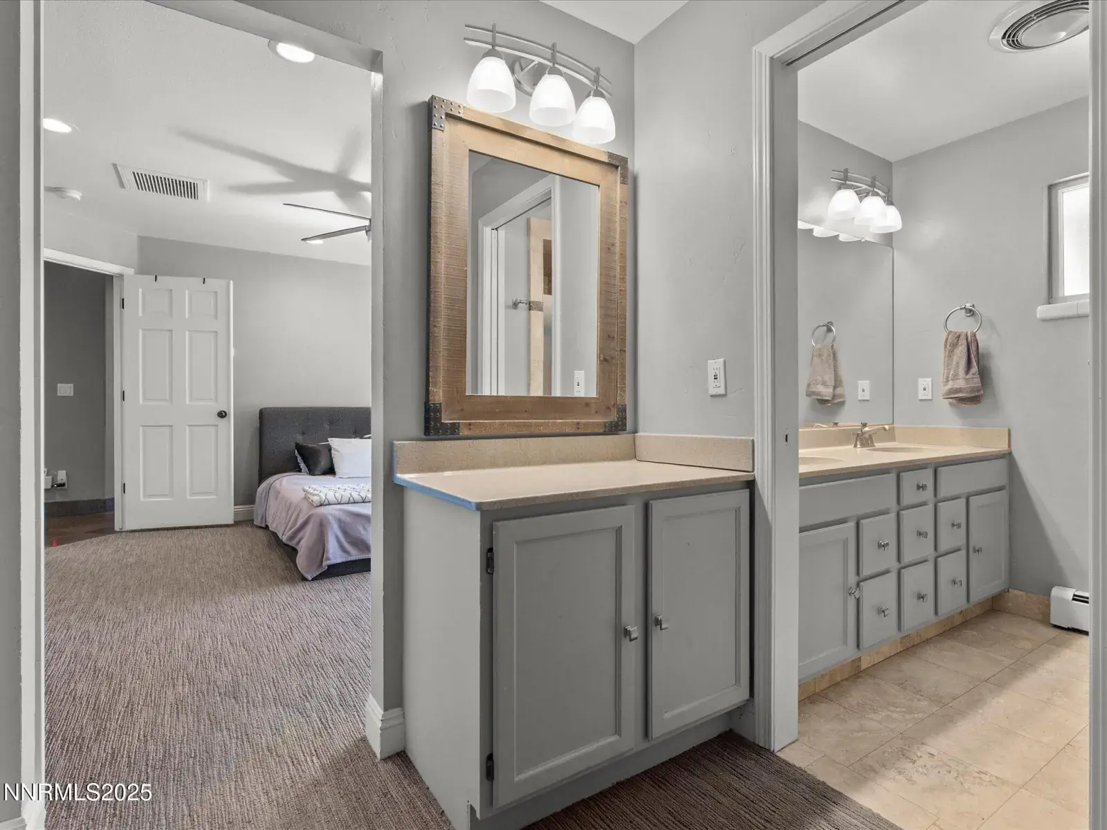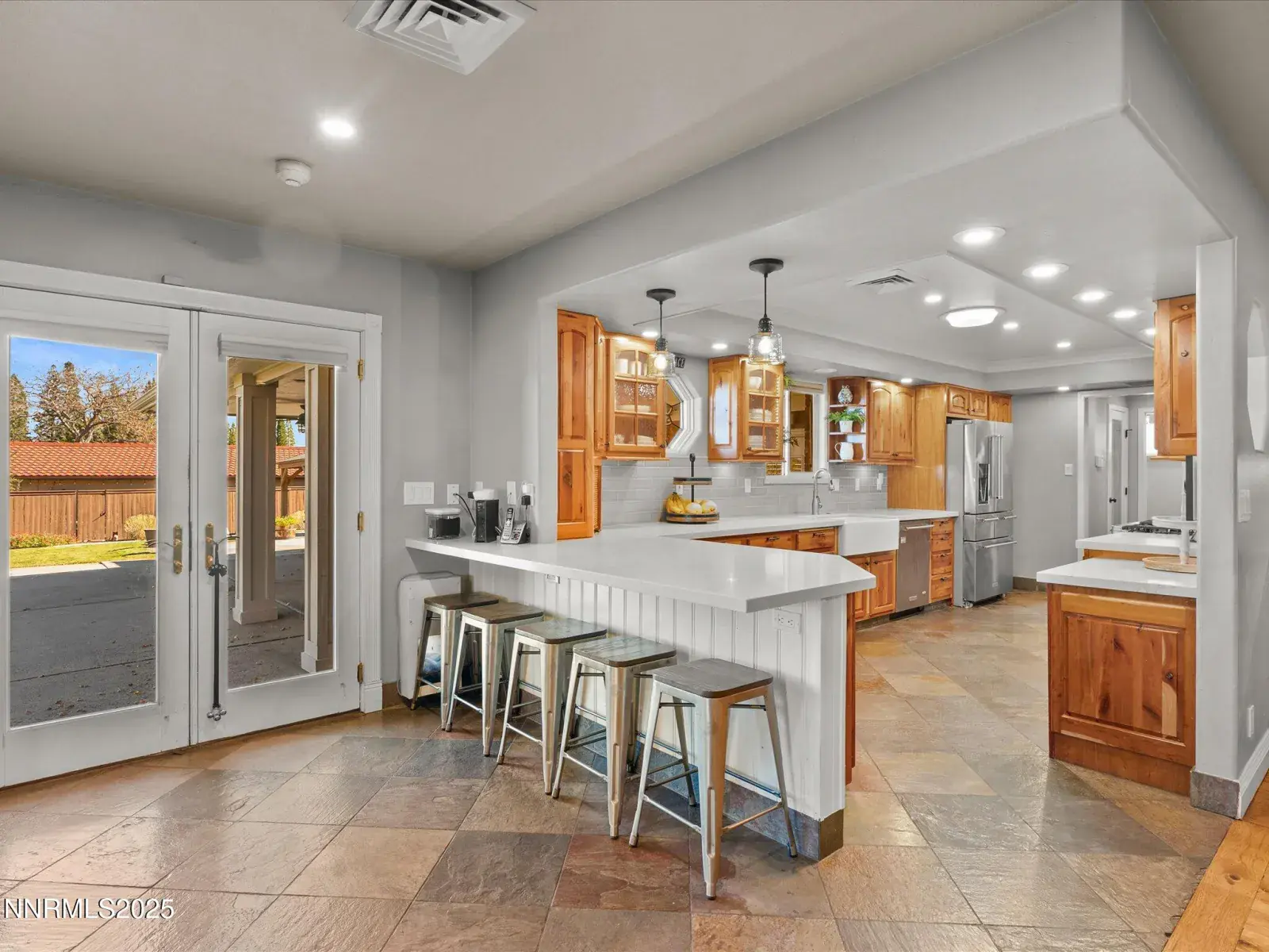 This spacious and beautifully maintained single-story home with a fully finished basement offers 6,336 sq ft of living space, thoughtfully designed for comfort, flexibility, and entertaining. The main level spans 3,940 sq ft and features a sprawling floor plan with both open and private spaces. The updated kitchen provides abundant counter space, stainless steel appliances, and a butler’s pantry with a second sink and dishwasher, perfect for hosting gatherings. Additional highlights include an office nook with built-ins, a family/playroom, and multiple fireplaces throughout the living and dining areas, as well as in the primary suite and the outdoor courtyard. Recently replaced recessed lighting and a solar tube in the entryway enhance the home’s natural light and warmth. The primary suite is a true retreat, offering mountain views and a separate sitting room with a private bar. A double-sided fireplace connects the sitting area to the spa-like bathroom, which features a jetted garden tub, separate shower, and dual vanities. The sitting room’s cozy ambiance makes it ideal as a reading nook, home gym, or office, while a massive walk-in closet with custom his-and-hers organization completes this luxurious space. Downstairs, the finished basement adds 2,396 sq ft of versatile living space, with a large family area and wood-burning fireplace, a full kitchen with a bar, two bedrooms, a full bath, and extra flexible space and storage rooms. A separate entrance from the 3-car garage makes this level ideal for guests, extended family, or multigenerational living. Outside, the 1.36-acre lot offers a park-like setting with mature landscaping, multiple seating areas, and mountain and downtown views. There’s ample space for RV and boat parking, a dump station, and an additional storage shed/workshop. The finished, insulated three-car garage features epoxy flooring and direct access to the basement. Additional features include fresh interior paint, new HVAC system in the main living area, an owned solar system, no HOA, and no rear neighbors. Located less than two miles from I-80 and five miles from downtown Reno, you’ll enjoy easy access to hiking, biking, and walking trails along the Truckee River, all while coming home to peace, space, and stunning views.