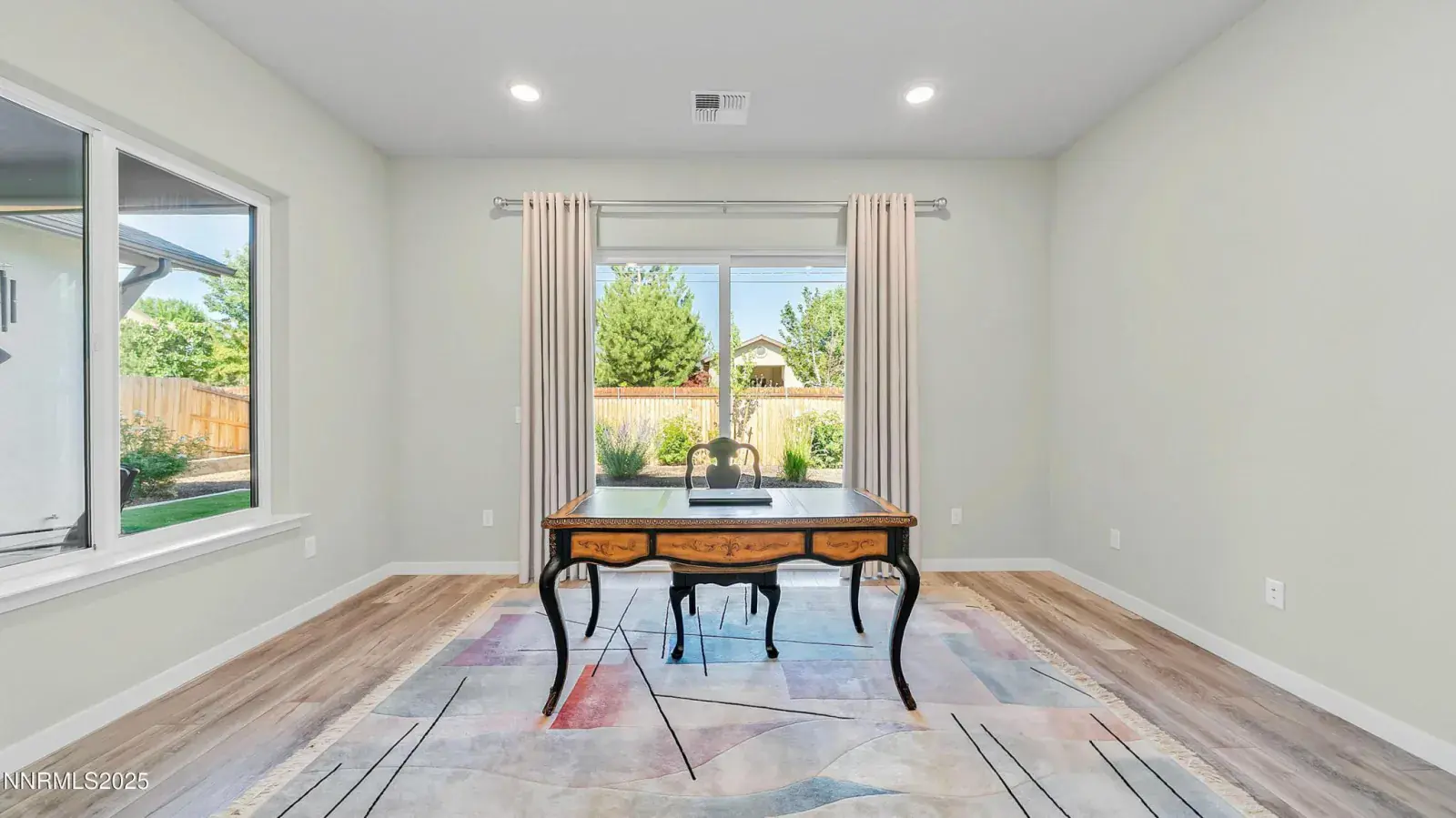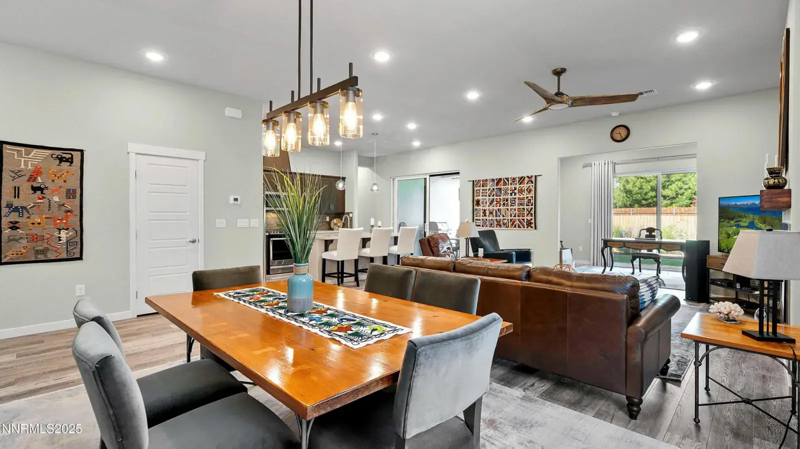 Tucked toward the end of a peaceful cul-de-sac within a gated community just off of Holcomb Ranch Ln, this nearly new single-level home (built in 2021) offers the perfect blend of modern sophistication and everyday comfort. Designed with an open concept layout, the floor-plan is both functional and inviting, featuring three spacious bedrooms, a dedicated office/bonus space, and 2.5 bathrooms. High ceilings and expansive windows flood the home with natural light, enhancing the warm yet contemporary palette that complements a wide array of styles. The heart of this home is the generous living room, seamlessly connecting to the kitchen and dining areas – ideal for both relaxed living or entertaining. Outfitted with stainless steel appliances, this kitchen offers both form and function. Step outside to the magnificent covered patio where serene mornings and lively gatherings await, all framed by low maintenance landscape that maximizes beauty with minimal upkeep. This refined residence is the perfect retreat for those who value privacy, convenience and elevated design.