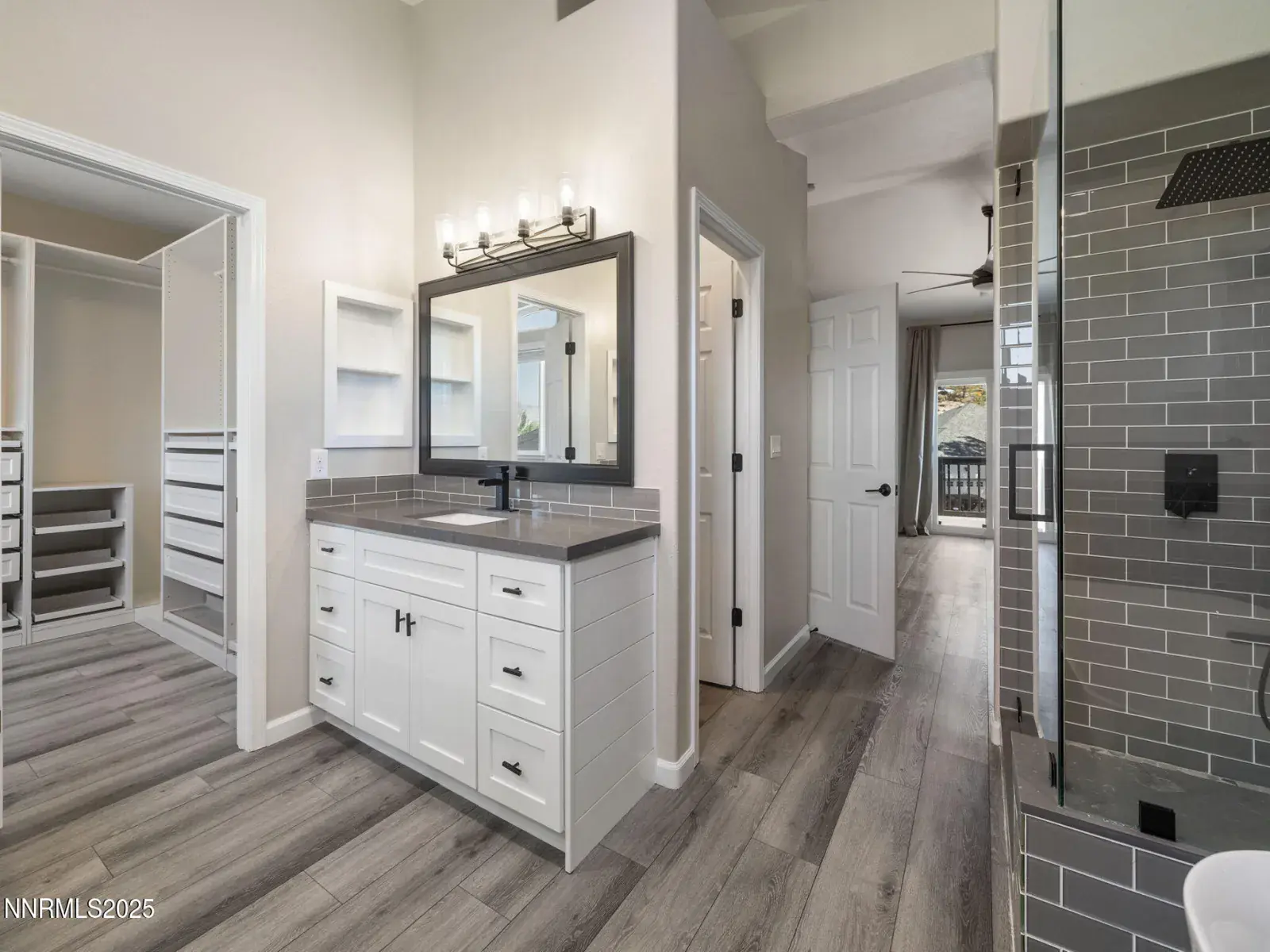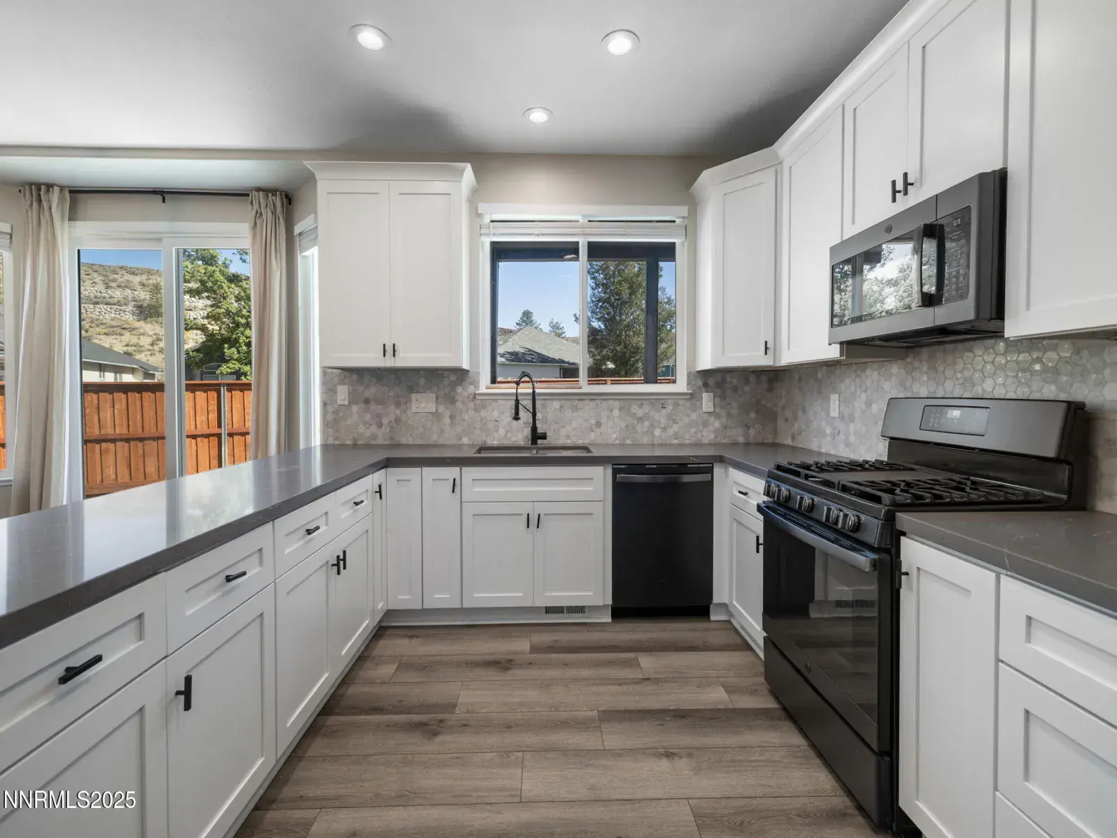 Seller is offering a credit for interest rate buy-down, closing costs, landscaping- if buyer is able to perform before 12/31/25. Modern comfort meets timeless design is this beautifully updated home on an oversized corner lot with NO HOA. The bright, airy floor plan connects the family and dining room, anchored by a cozy fireplace. The kitchen features newer appliances, quartz counters, new cabinets, and a walk-in pantry. The primary suite features vaulted ceilings, a new electric fireplace, and a fully remodeled spa-style bathroom with a free-standing tub, new cabinetry, quartz counters, and custom niches. The walk-in closet has a new organizer system designed for ultimate optimization. Throughout the home, you will find LVP flooring, black hardware, pine baseboards, LED lighting and fresh modern paint. The bonus room on the main floor makes for a perfect home office, gym, or 4th bedroom. Outside, enjoy fresh exterior paint, stained wood pillars, sound- reducing windows and a newly approved front and rear fencing- ready for pets, play and privacy. Located minutes from South Reno, downtown, and the Southwest connector, this home delivers a lifestyle of modern, low maintenance, and efficiency.