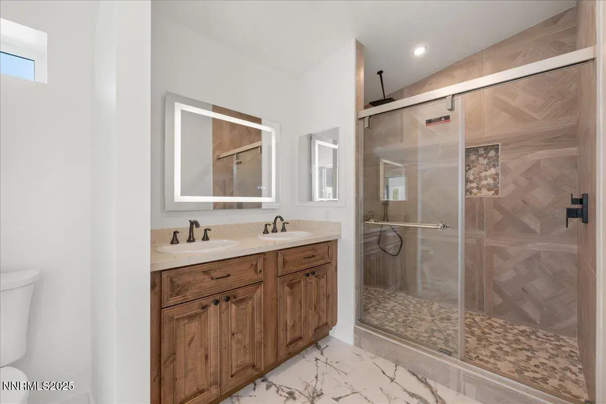 Introducing 8101 Leroy, a rare Reno retreat offering quintessential Nevada mountain views stretching across Hunter Creek, the Mt. Rose Wilderness, and out toward Verdi. Set on a full acre just 10 minutes from downtown, this property blends the ease of city access with the space, privacy, and freedoms of rural living. The property includes two separate, private dwelling units: a standalone 1 bedroom, 1 bathroom cottage with a kitchen, and a 4 bedroom, 2.5 bathroom ranch-style rambler. Both residences were completely renovated over the past two years by a high-end Lake Tahoe and Martis Camp general contractor, bringing luxury-level craftsmanship and thoughtful design throughout. Significant upgrades deliver comfort, efficiency, and long-term peace of mind, including a new metal roof on the cottage, mini-split heat pump systems for zone-controlled heating and cooling, a new a/c condenser, and new tankless water heaters. Inside, the homes feature beautifully tiled bathrooms with bold contemporary black-and-gold finishes, along with kitchens appointed with marble and quartz countertops and stainless steel appliances. The expansive yard is a blank slate ready for your vision, and the property also includes RV hookups for added flexibility. The yard offers many options for additional expansion such as a shop, garage, equestrian facilities or other outbuildings. Both homes offer well insulated from outside noise that helps create a quiet, serene living experience. With two distinct living spaces, the property provides a wide range of options—from multi-generational living to a dedicated office or studio, guest accommodations, or opportunities for additional long-term or short-term rental income.