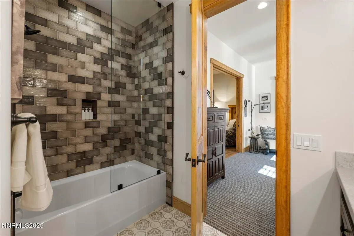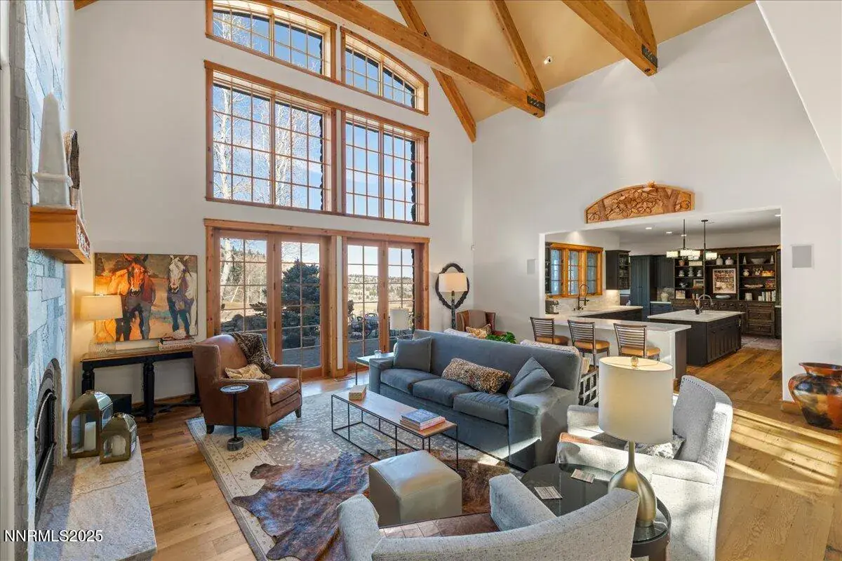 Contemporary Custom Remodel in Montreux! Set on a generous .53-acre lot in a desirable cul-de-sac, this stunning home features an extensive whole-house remodel complemented by a 1,600+ SF addition. The dramatic Great Room showcases vaulted beamed ceilings, sensational stone fireplace, tremendous floor-to-ceiling windows, and a custom-built media cabinet complete with large flat screen television that’s wired into the home’s sound system. Reclaimed historic red oak wood floors, Signature Hardware fixtures, custom millwork, and quality craftmanship add warmth and character throughout the home. The Gourmet Kitchen is a chef’s delight, complete with Calacutta Venezia Quartz countertops, handmade Italian tile backsplash, Allia Paris fireclay sinks, and top-of-the-line appliances including a Viking 6-burner range w/ griddle, Beko dishwasher, and built-in JennAir refrigerator. Enjoy casual dining and entertaining with the custom buffet and built-in banquette seating or a more formal experience in the elegant Dining Room. The adjacent 140+ bottle temperature-controlled wine room offers the perfect space for your collection. The first-floor Primary Suite features a rustic river rock fireplace, access to the backyard patio, white oak marble floors, cast iron pedestal tub, generous walk-in closet, and radiant heating. An expanded Guest Room Suite with adjacent Bonus/Office space also reside on the main level. Upstairs, there are two additional Guest Room Suites, a grand hallway balcony, plus a large Bonus/Flex space with Kitchenette that could be utilized as a second Family Room, Playroom, Home Theater, Office, or 5th Bedroom catered to your personal lifestyle. The home is equipped with three newer HVAC systems, a newer water heater, and Low-VOC 100 percent pure wool wall-to-wall carpeting, ensuring comfort and efficiency. The oversized 3-car garage features epoxy flooring and substantial built-in cabinetry. Step outside to your private retreat with an extensive paver patio, stunning waterfall feature, a fully fenced backyard, and panoramic meadow and mountain views. Nestled off Montreux’s “Signature Loop” of entirely custom-built homes, this property provides central access to Montreux’s world-class clubhouse amenities and the renowned Jack Nicklaus 18-hole signature golf course. Membership is optional and available separately. Be on the slopes of Mount Rose Ski Resort within 15 minutes, jet off from the Reno-Tahoe International Airport in 20, and enjoy the shores of beautiful Lake Tahoe in less than a 30-minute scenic drive. Bonus Opportunity: The seller owns the adjacent .49-acre vacant lot at 5735 Dijon Court, and will offer the buyer first rights to purchase, ensuring privacy and maintaining the stunning views. The perfect blend of historic character with modern functionality in Northern Nevada’s most coveted gated golf communities. The Montreux Lifestyle awaits!