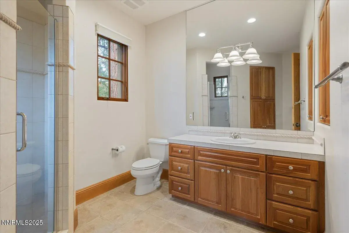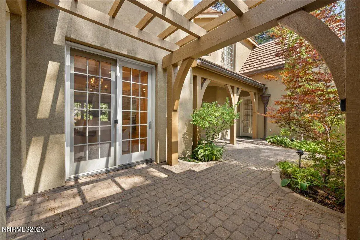 One of the most spacious cottage models in Montreux! Beautifully appointed with soaring ceilings, elegant hickory flooring, solid Knotty Alder doors and closets, Dacor, SubZero, and Bosch appliances, water softener, copper gutters, extensive stonework, paver driveways and patios, and resilient R-50+ insulated concrete form walls for superior durability and insulation. The main level features the Kitchen, Great Room, Dining Room, Breakfast Room, Office Area, Guest Room, Full Bath and Laundry Room. Great Room has large stone fireplace with TV above. A large Owner’s Suite, Junior Primary Suite, and open Loft reside upstairs. The Owner’s Suite impresses with a cozy sitting area, a dual-sided fireplace, and a large walk-in closet with custom built-in drawers and shelving. The private backyard provides a forested retreat with its shaded pergola and climbing vines, a spacious paver patio, and a peaceful seasonal creek behind the property. The private pergola-covered patio is ready for your spa with its 220v wiring. As part of the Montreux Cottages, the association takes care of exterior maintenance and landscaping, allowing you to enjoy your home without worries—stay comfortably or come and go as you please. Just a short stroll or golf cart ride from the world-class Montreux Clubhouse, you’ll have access to an array of amenities, including golf, dining, fitness center, and social activities. Only 15 minutes from Mt. Rose Ski Resort, 20 minutes from Reno-Tahoe International Airport, and a 30-minute scenic drive to the stunning shores of Lake Tahoe.