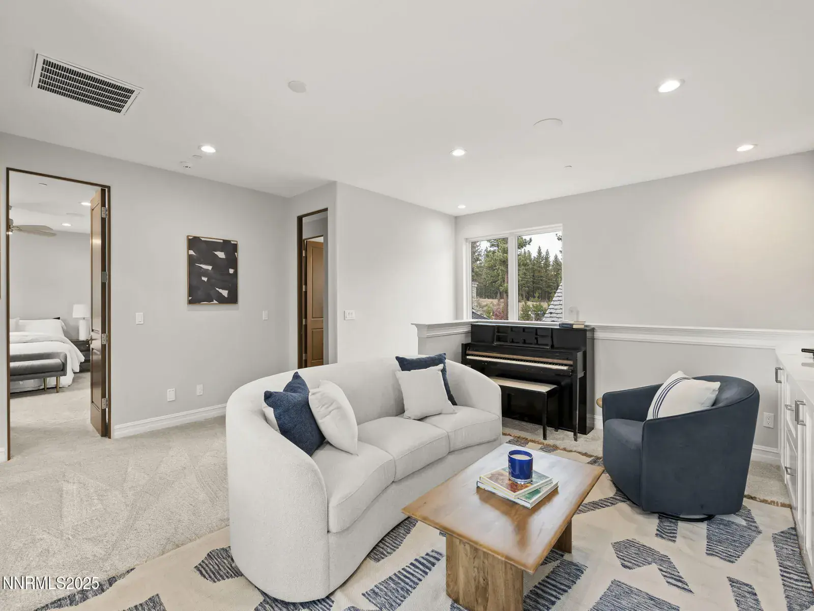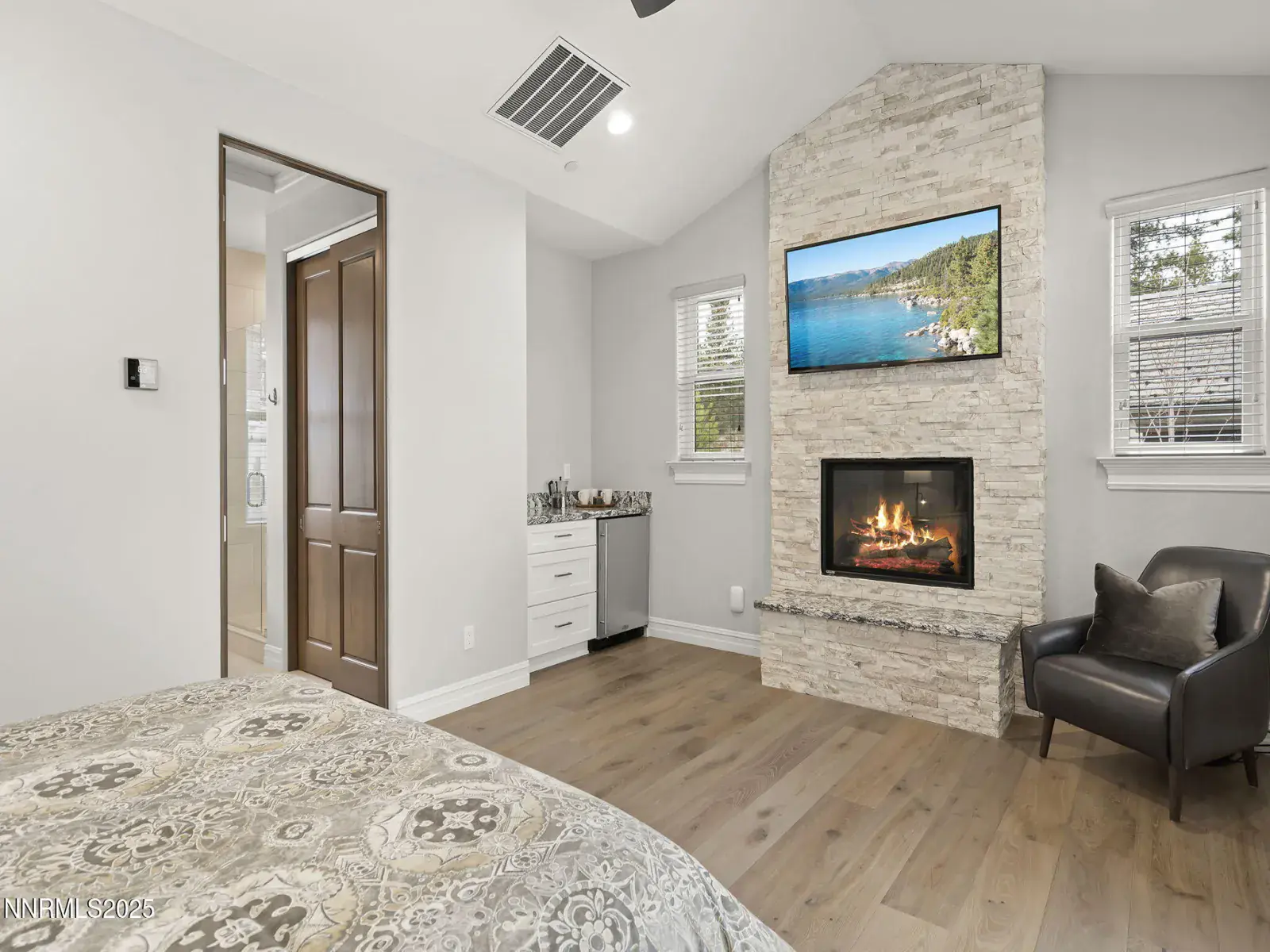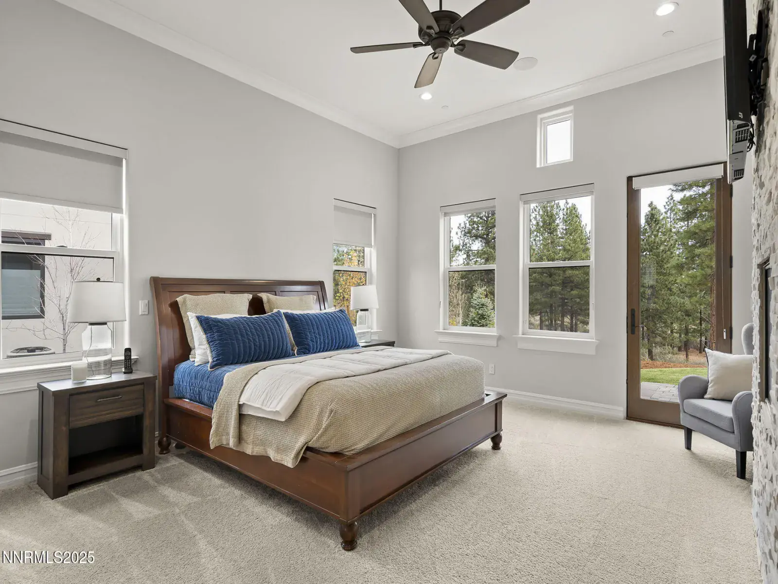 Discover luxury living in the prestigious Montreux gated community, nestled among towering pines. This stunning 4,470 sq. ft. Parc Foret home, built in 2019 by renowned local builders, offers 5 bedrooms, 5.5 bathrooms, and a 3-car garage with extended space for golf cart parking and electric vehicle charging. The main floor features a spacious Primary Suite and open living areas, designed for both comfort and elegance. Exquisite upgrades include European oak floors, radiant heat in the primary bath, exposed wood beams, striking rock fireplaces in the great room and primary bedroom, a stunning open-concept kitchen with dual islands perfect for cooking and entertaining, and a Control4 sound system with security. Enjoy a private guest casita in the courtyard and a backyard with a covered loggia, complete with built-in heaters, ideal for year-round outdoor entertaining. Located in the Montreux Golf and Country Club, home to a Jack Nicklaus Signature championship golf course, this property is just minutes from Lake Tahoe, top-tier shopping, schools, and Reno International Airport.