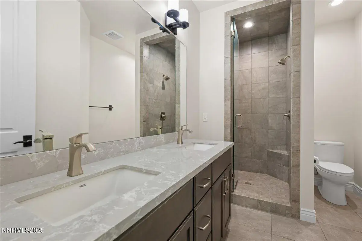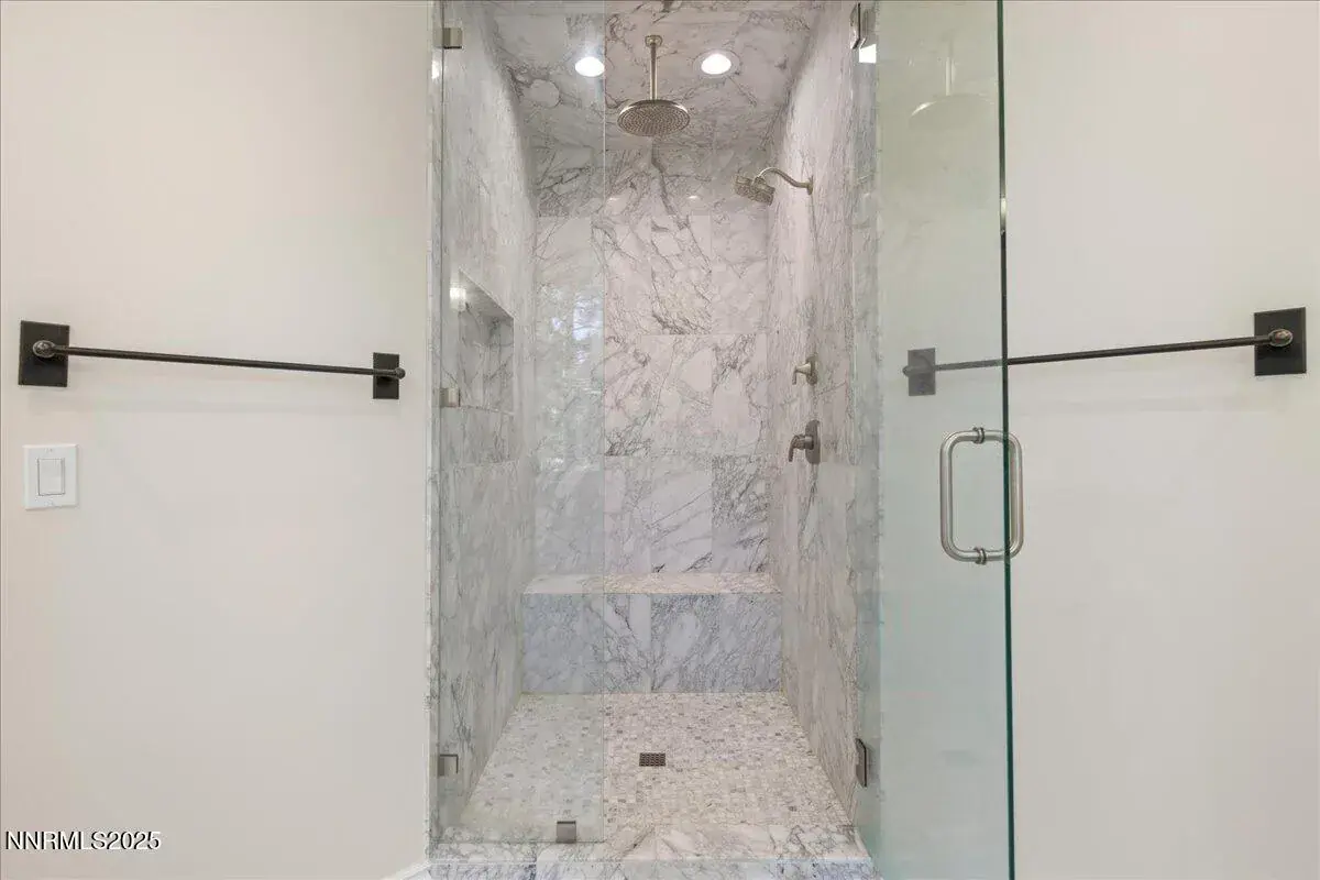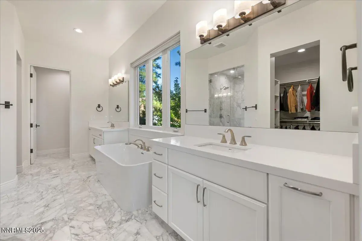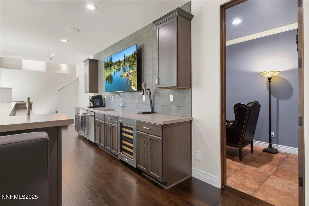 A Nearly New Parc Foret Masterpiece in Montreux – Luxury Meets Lifestyle. Nearly new (2021) custom home in the coveted Parc Foret enclave of Montreux! This one-of-a-kind floorplan features three oversized garages, including an RV bay with exceptional storage. Designed for convenience, the home offers desirable main-level living with a luxurious primary suite and an additional ensuite bedroom. The chef’s kitchen impresses with dual quartz islands, while the great room showcases a soaring vaulted ceiling and floor-to-ceiling slate fireplace. The daylight level expands the living space with a spacious rec room, custom wine room, wet bar, guest suites, and a sunroom. Thoughtful upgrades include hardwood, marble, and tile flooring (no carpet), solid Knotty Alder doors, Hunter Douglas electric blinds, and extensive custom cabinetry. Outdoors, enjoy manicured landscaping with mature trees, multiple patios, and low-maintenance design. All within walking distance to scenic trails and just minutes to Lake Tahoe and the airport—inside Nevada’s premier gated golf course community. A Social Membership to Montreux Golf & Country Club conveys with the home (buyer to pay transfer fee).