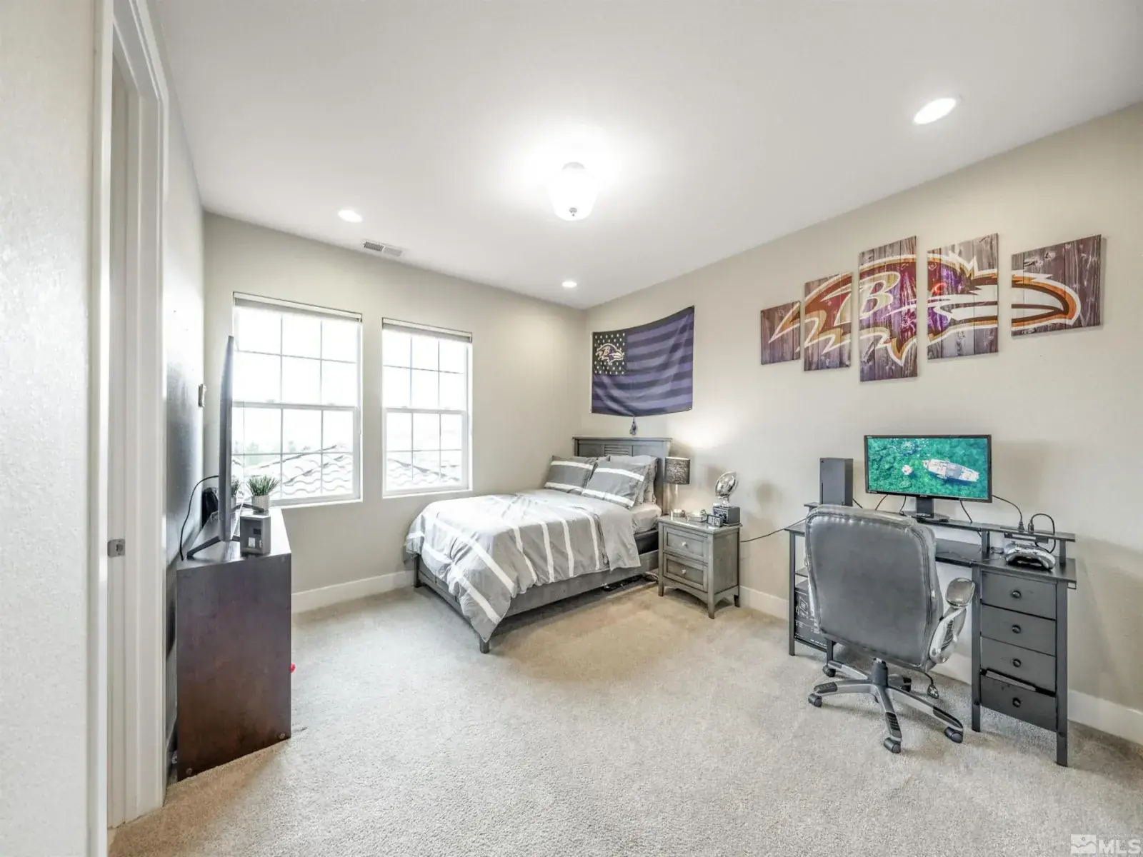 Welcome to your dream home at 13335 Satinspar Dr, Reno, NV 89511, a stunning 5-bedroom, 5.5-bathroom masterpiece spanning 4,421 sq. ft. in the prestigious gated Mountain Gate community. Built in 2018, this modern luxury residence blends sophisticated design with unparalleled functionality, featuring $150,000 in builder upgrades for a refined lifestyle. Step inside to an open-concept living space with soaring ceilings, expansive windows, and seamless indoor/outdoor flow. The gourmet kitchen is a chef’s, delight, boasting top-tier appliances, a large center island, and custom cabinetry. Entertain effortlessly in the spacious great room or retreat to the private backyard oasis, perfect for relaxing or hosting under Nevada’s starry skies. The primary suite is a serene escape with a spa-inspired bathroom, dual vanities, and generous closet space. Each additional bedroom offers en-suite baths, ideal for family or guests. A versatile bonus room and dedicated office space cater to work-from-home or creative needs. Eco-conscious and tech-forward, this home includes an attached garage with EV charging and energy-efficient systems. Nestled on a 0.33-acre lot, enjoy mountain views and easy access to South Reno’s top schools, shopping, and outdoor recreation, all within a secure, tranquil community. Don’t miss this rare opportunity to own a move-in-ready gem combining elegance, comfort, and modern convenience. Schedule your private tour today and experience luxury living at its finest!