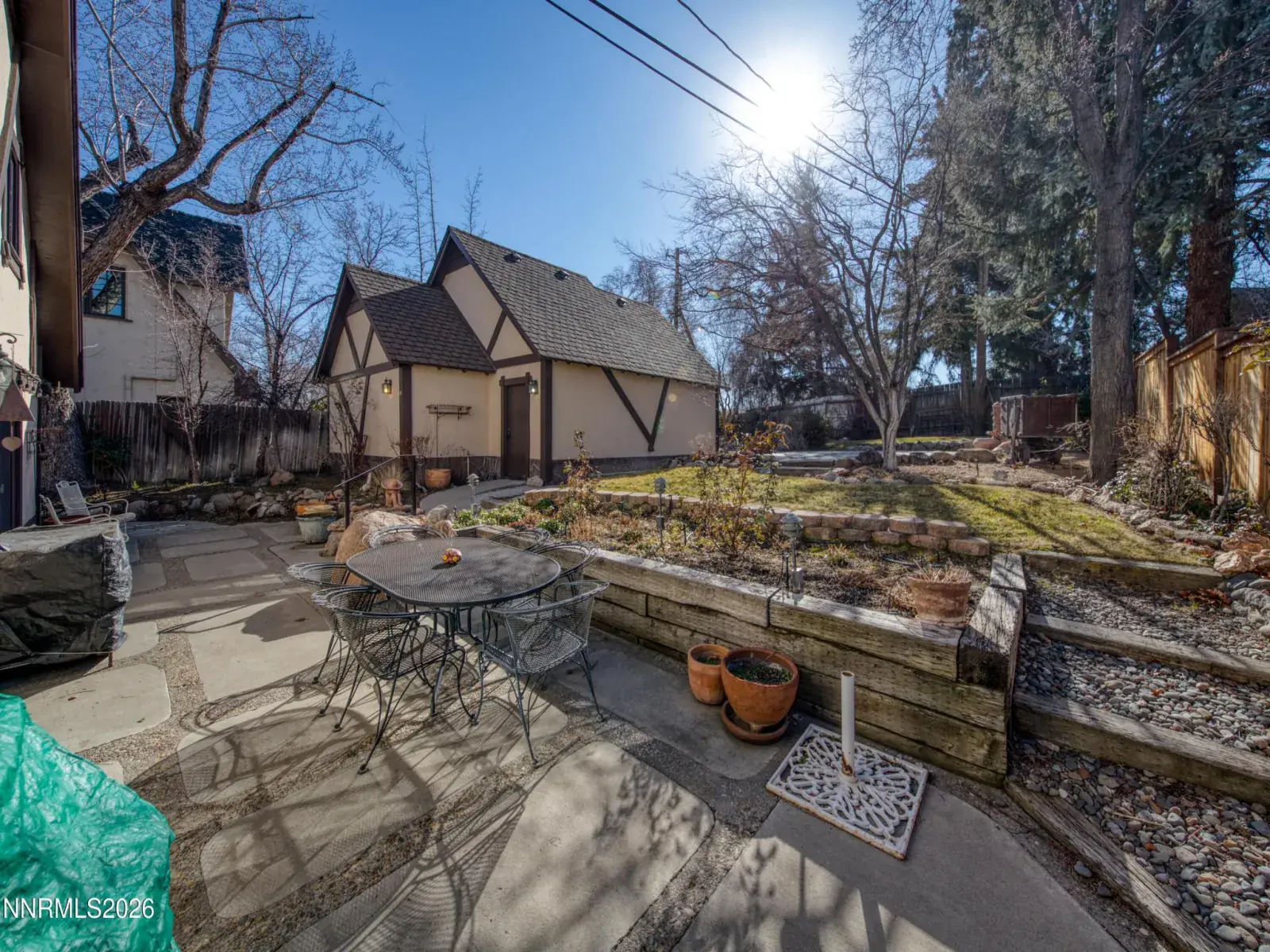 A home for you in the heart of Newlands Manor, a sought after neighborhood in Reno’s Historical District. The architecture is an authentic Tudor with stucco and timber. The leaded glass and true divided light windows bring the sunshine in. Large beams criss cross the ceiling adding texture and character through out the large living area. The living room’s focal point is the gigantic stone fireplace with an extraordinary reclaimed wood mantle. There are a total of 4 fireplaces located through out the home. A separate family room/ den is located just off the kitchen/dining area and feature another beautiful stone fireplace with a reclaimed wooden mantle. French doors lead to a private patio and is surrounded by 50 year old pines and assorted trees. The back yard is filled with perennials and terraced with a second patio. The kitchen and dining room open to each other providing a lively and convivial atmosphere for family and friends. There is a built in breakfast nook, large center island, leathered granite counters, and a stainless steel backsplash! The primary suite is on the main level and has a stacked washer and dryer in the walkin closet. There is a wonderful soaking tub and large separate shower. There are 4 additional bedrooms on the second floor. The third level is used as an office and is an additional 432 SF not included in the square footage. It includes built in shelves and desk and features skylights. A detached, large 663 SF, 2 car garage has a work bench and built in shelving. An electronic gate located on Manor Drive provides access to the garage. You will surely be enchanted when you see this home.