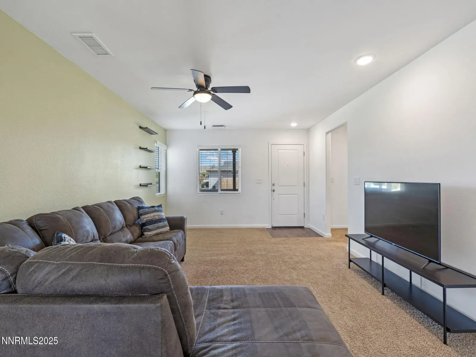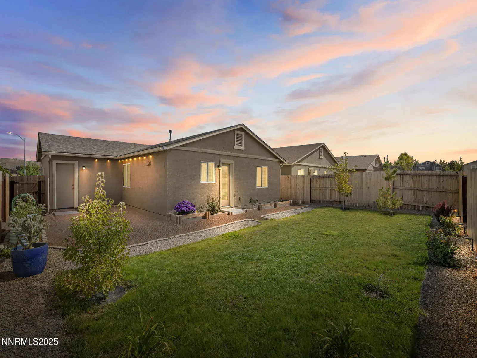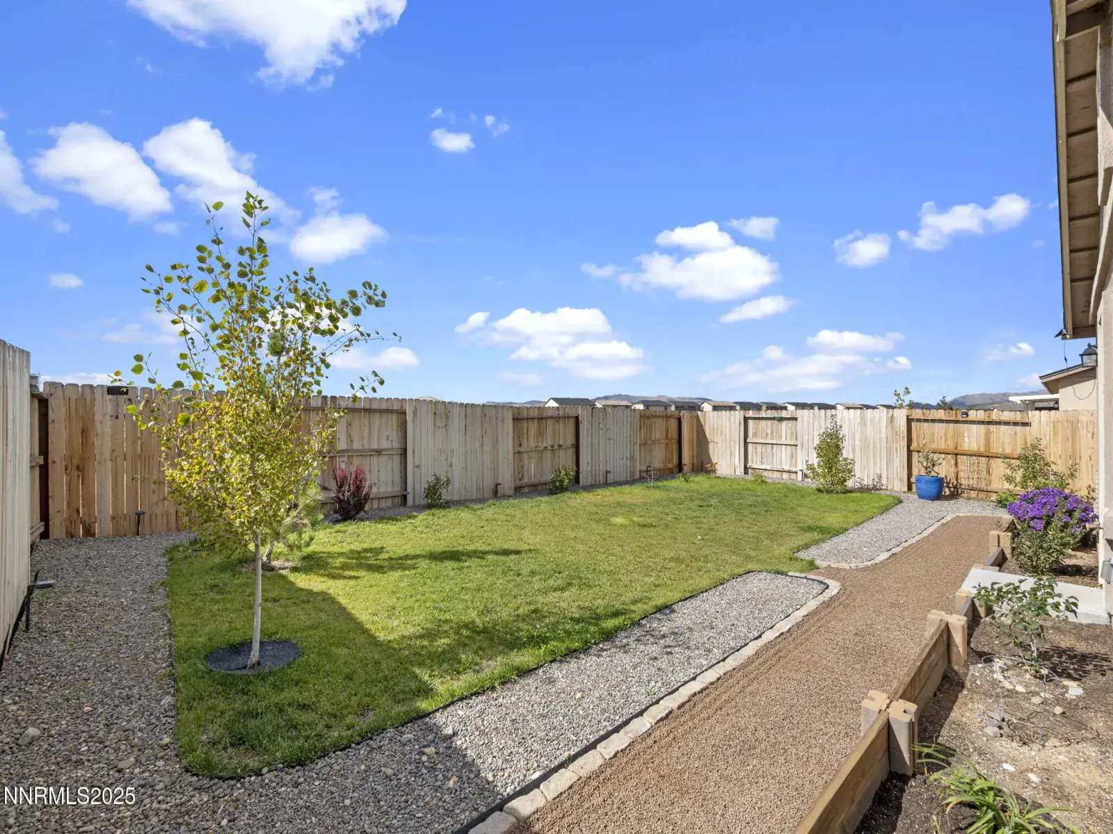Better than New. Fully Finished Backyard with no Back neighbors and great Views. This is an Immaculately kept, newer, NV Flats home tucked away in a quiet neighborhood within Lemon Valley, built in 2022 with quality upgrades throughout. This 3-bedroom, 2-bath residence features a bright open floor plan with a stylish kitchen showcasing granite slab counters, stainless steel appliances, and upgraded cabinetry. The spacious living area is complimented by quality laminate flooring, modern fixtures, and plenty of natural light. The primary suite provides a relaxing retreat, while the additional bedrooms offer flexibility for guests, work, or hobbies. Step outside to a thoughtfully landscaped yard, and wide-open mountain views. Backing to open land with easy access to trails and Swan Lake, this home combines comfort, style, and an unbeatable setting.