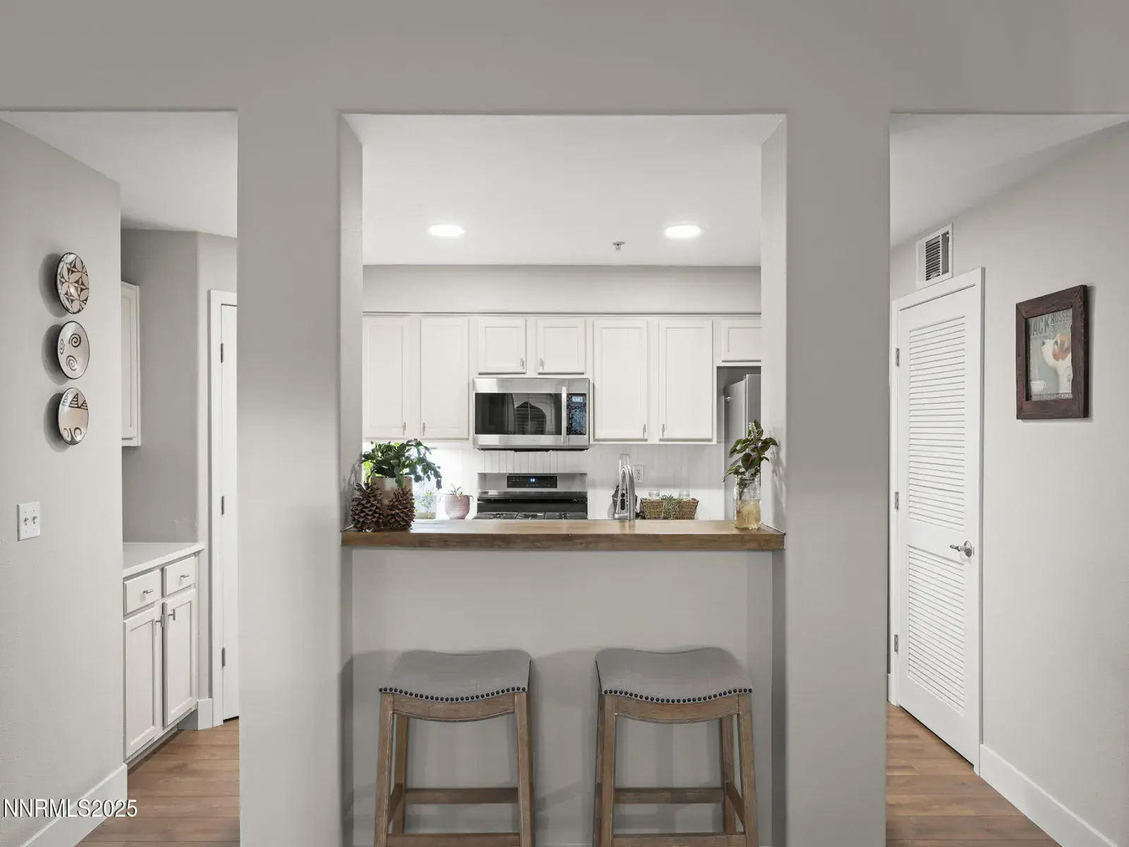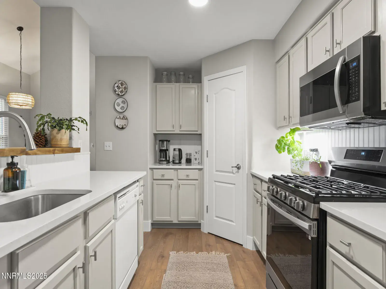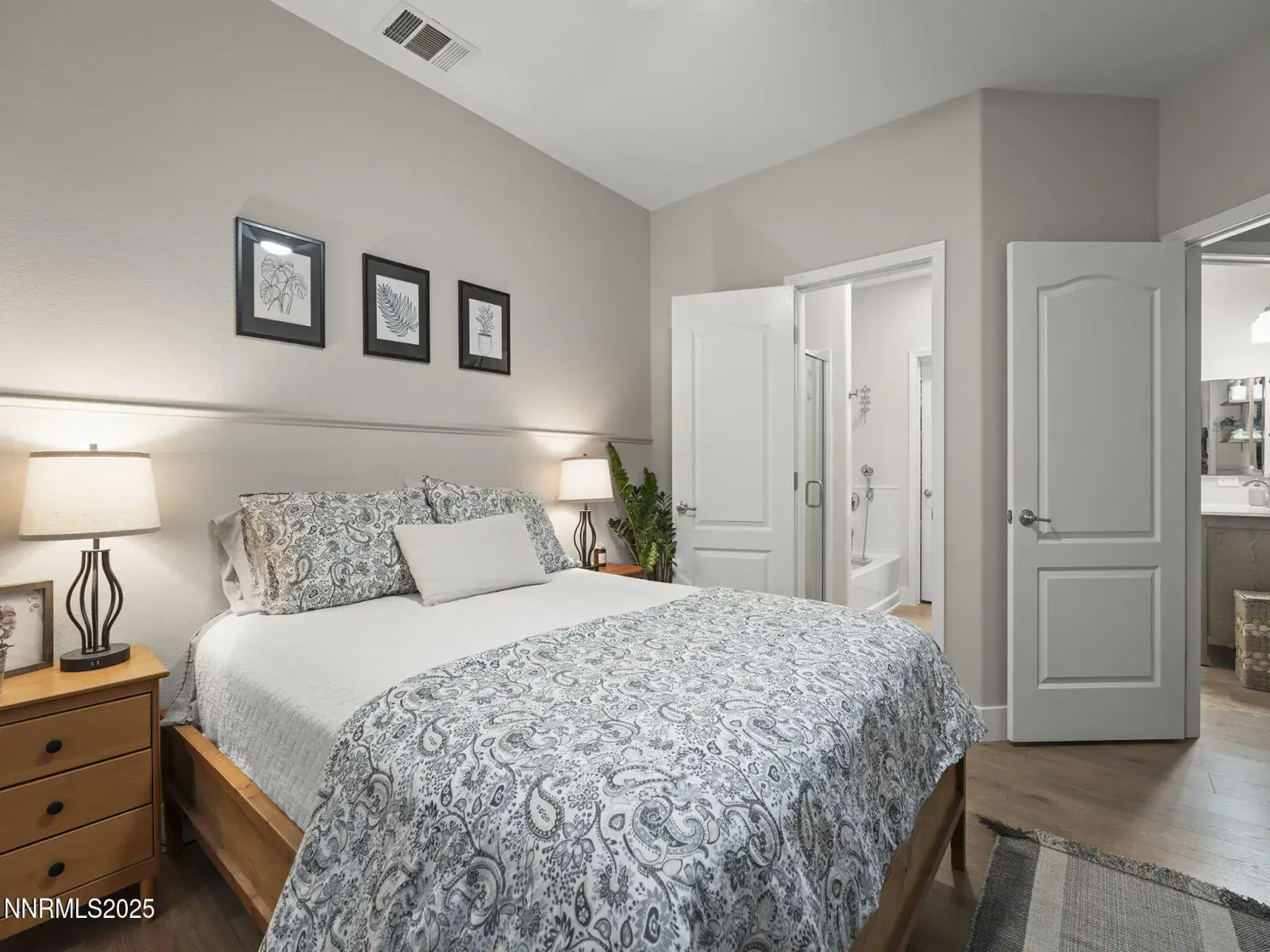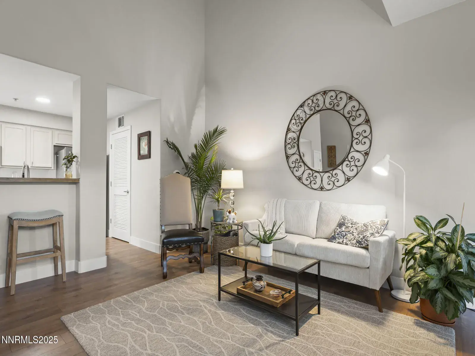 Beautifully renovated sunny condo in the quiet, gated community of Triana. This south-facing home is move-in ready with abundant natural light in every room. Recently remodeled with fresh paint, new baseboards, and professionally installed premium wood-based flooring. The home features new energy-efficient double-pane windows, an open floor plan with a spacious living area, a gas fireplace, an EcoBee smart thermostat, modern vaulted ceilings, and a patio balcony with views of the Sierra mountains! The master bedroom has a large walk-in closet, a second private balcony, and the remodeled bathroom has a soaking tub and a separate shower. The kitchen is updated with new quartz countertops, professionally refinished cabinets, a walk-in pantry, new stainless steel appliances, and a breakfast bar. There is a beautiful separate dining room, a laundry room with a new washer and dryer, and there’s an additional loft space that’s perfect for a second bedroom, office, or workout room. Attached oversized one-car garage with extra storage and additional designated parking spot directly in front. The community offers a pool, hot tub, playground, hiking trails, and is conveniently located within minutes to downtown, RNO airport, 2 hospitals, and only 30 minutes to beautiful Lake Tahoe and world-class skiing! Don’t miss out on this turn-key home, with six months remaining on the home warranty, transferable to the new owner. This is a must-see, and the seller is motivated. Mortgage savings may be available for buyers of this listing.