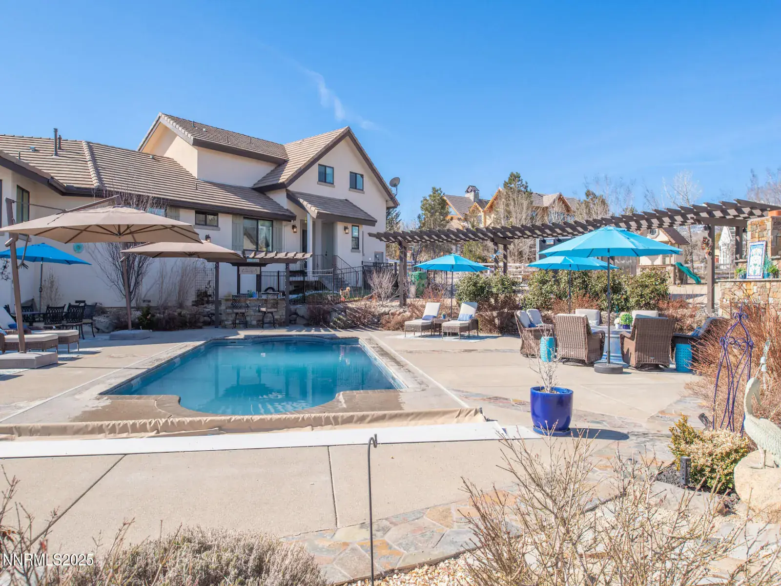 Gated luxurious equestrian estate, with all the options! Barn (3 stalls), pool, riding arena, great room with vaulted ceilings, and direct access to the 1.7 mile riding trail that surrounds the 26 homesite community. Located in certainly one of the nicest neighborhoods in SW Reno, adjacent to the HOA pond for the great night sounds of crickets and frogs. The owner /agent built this home, with a number of small but very cool features and upgraded systems. All of the house is on one level, except the game room, which is above the garage, on the opposite end of the primary. Call owner agent for details and schedule you personal tour.