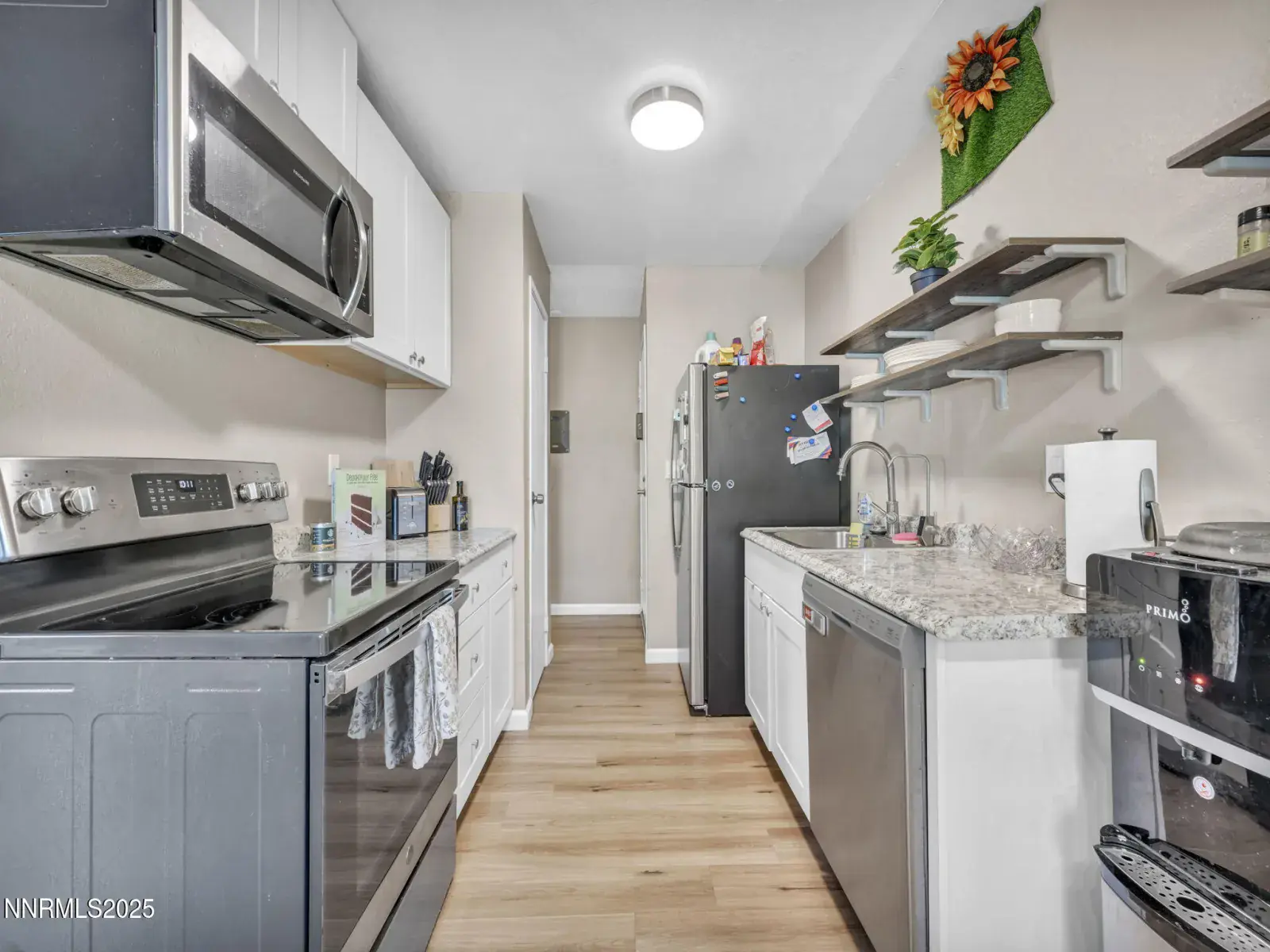 This remodeled condo in South Reno’s Peckham Gardens is a must-see for first-time homeowners and savvy investors alike. A cozy 860 square feet, this charming two-bedroom, one-bathroom residence boasts an array of newer upgrades. Step inside to be greeted by an abundance of natural light filtering through brand new Debella windows with a 20 year warranty, illuminating the inviting living room adorned with stylish new vinyl flooring. The walls have new paint, offering a crisp, modern ambiance., Condo has sleek white shaker cabinets in the kitchen, complete with extra shelves for added storage, a brand new oven/stove, dishwasher and a GE stainless steel refrigerator. The thoughtful renovations extend beyond aesthetics, with a brand new HVAC system with 10 year warranty and updated plumbing in kitchen and bathroom with added new faucets. Condo also has new lighting fixtures and switches throughout. Enjoy tranquil mornings or relaxing evenings on your private patio. The property also includes a designated parking port for your convenience, and community laundry rooms. Residents are treated to fantastic amenities, including access to a seasonal pool, tennis courts, and meticulously maintained common areas. Additionally, the condo’s prime location places you within walking distance to Meadow Wood Mall, where a plethora of shopping, dining, and transportation options await. WASHER AND DRYER NOT IN UNIT.