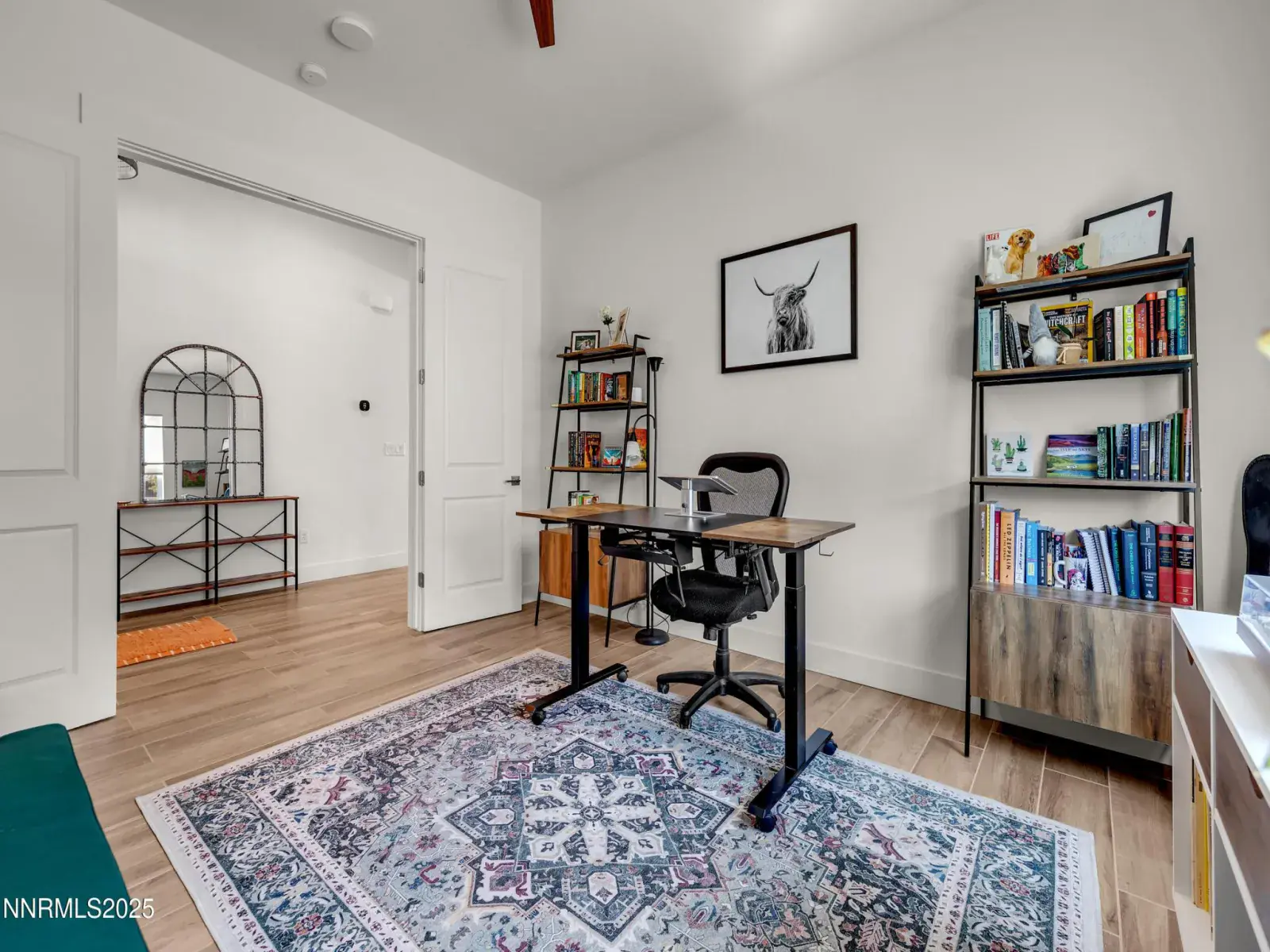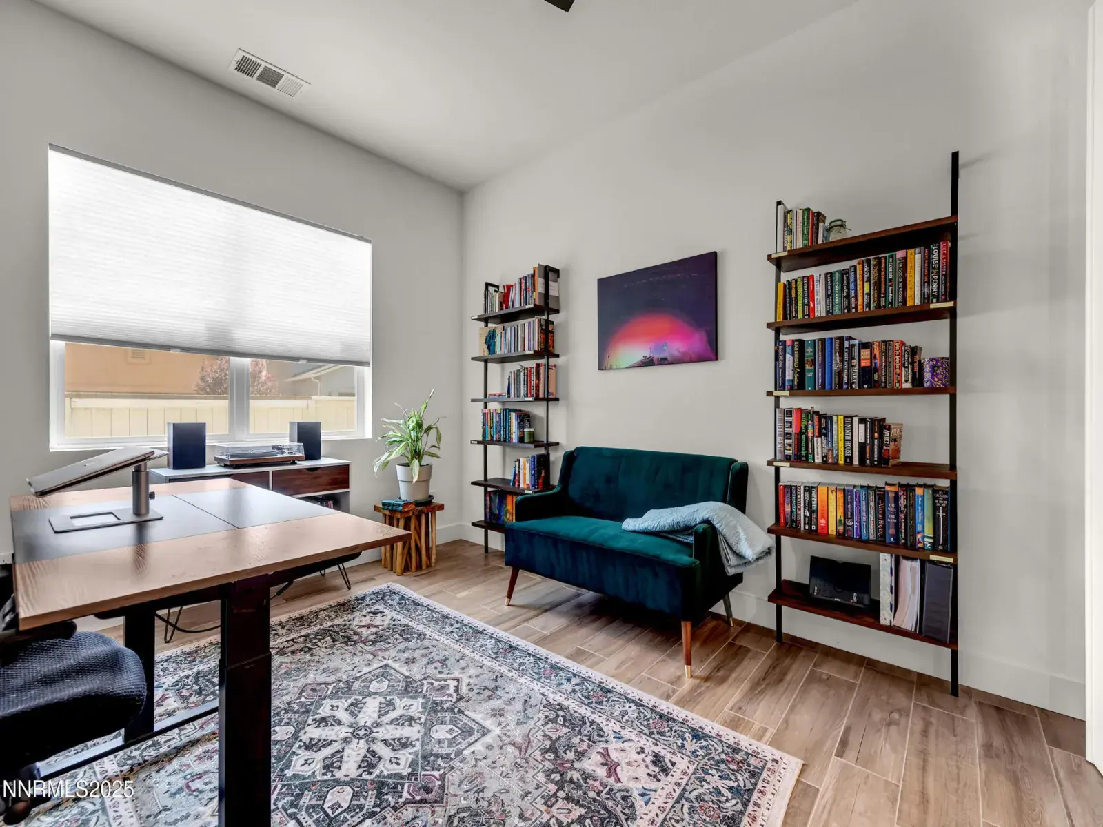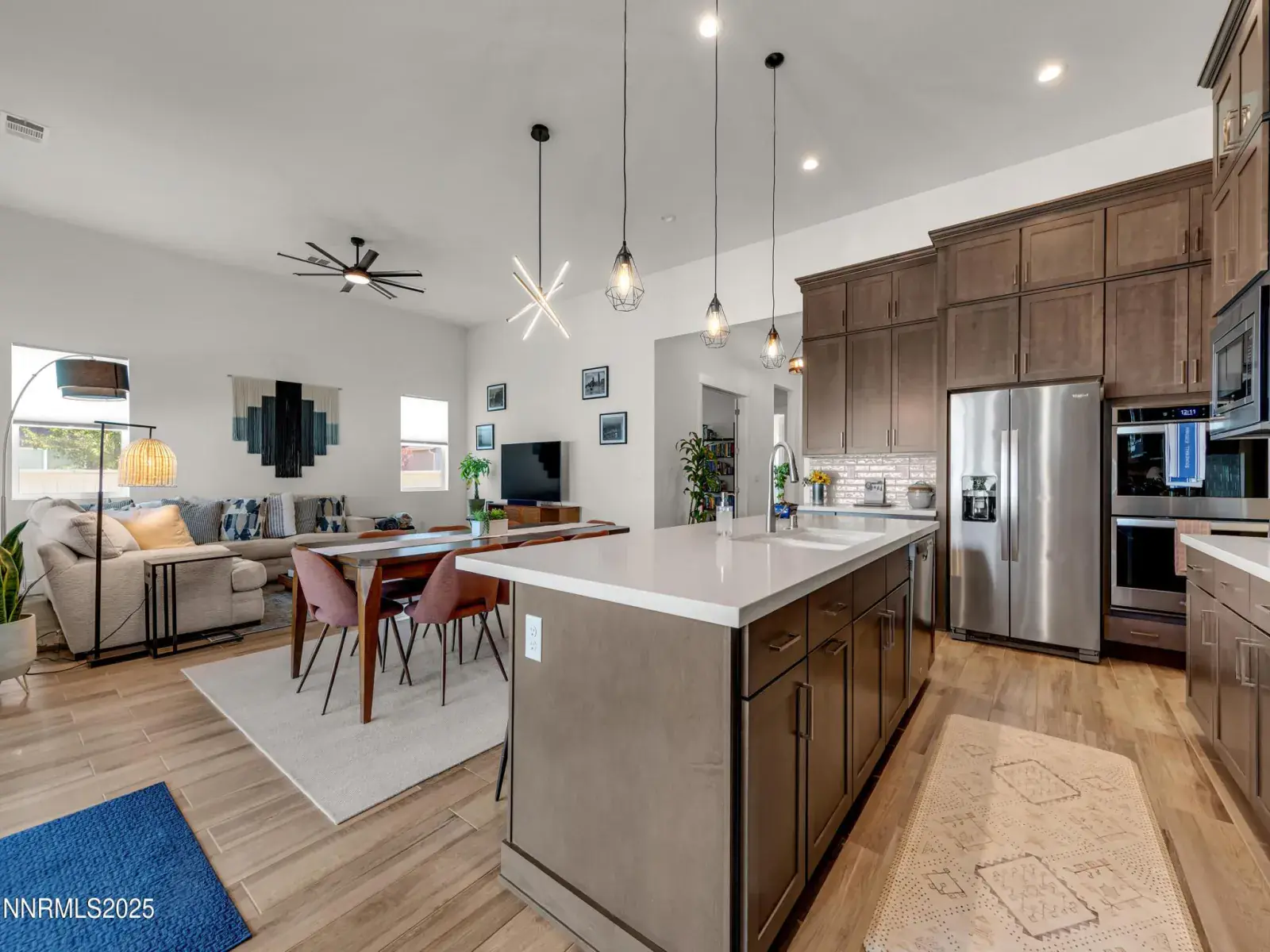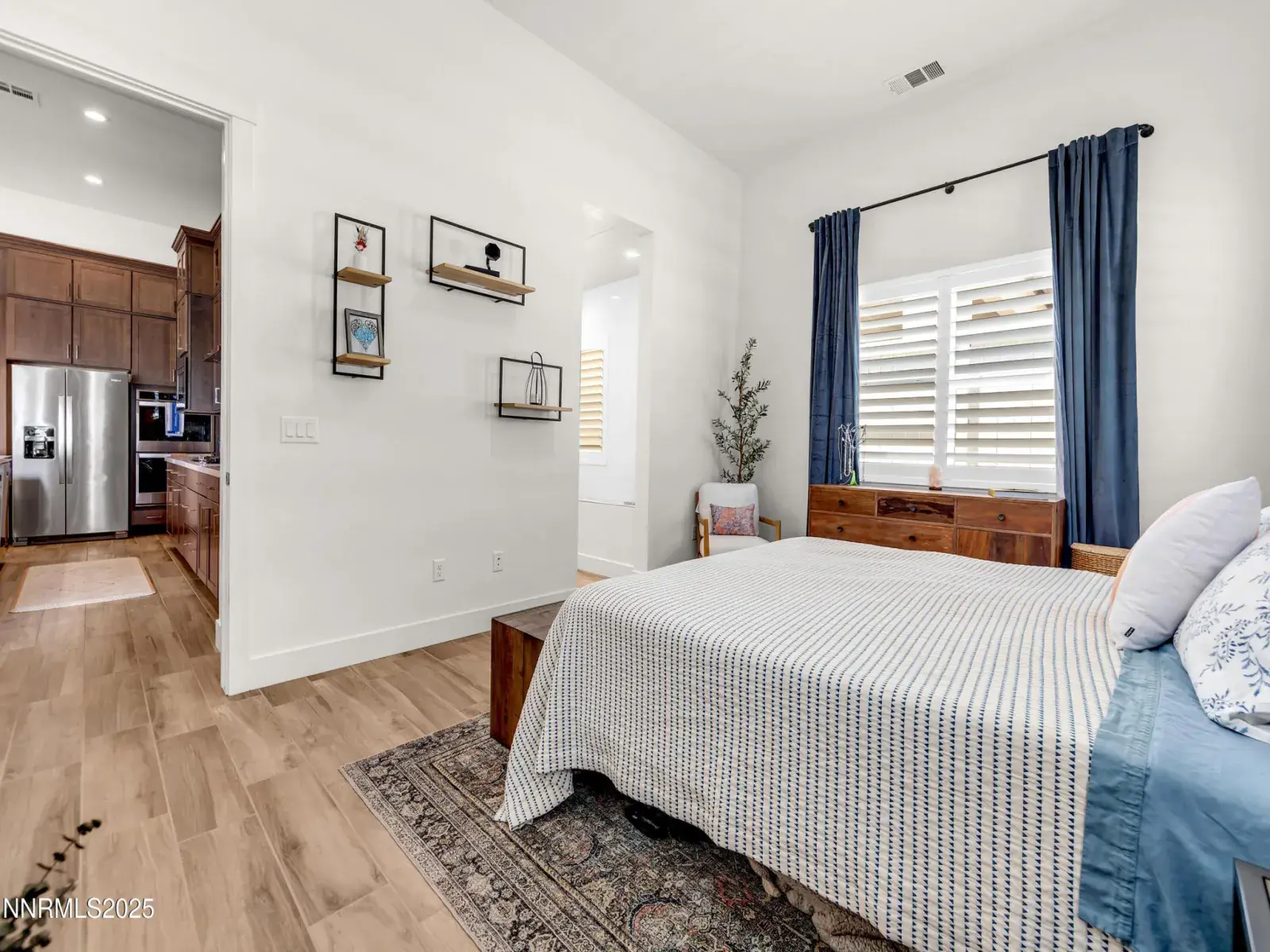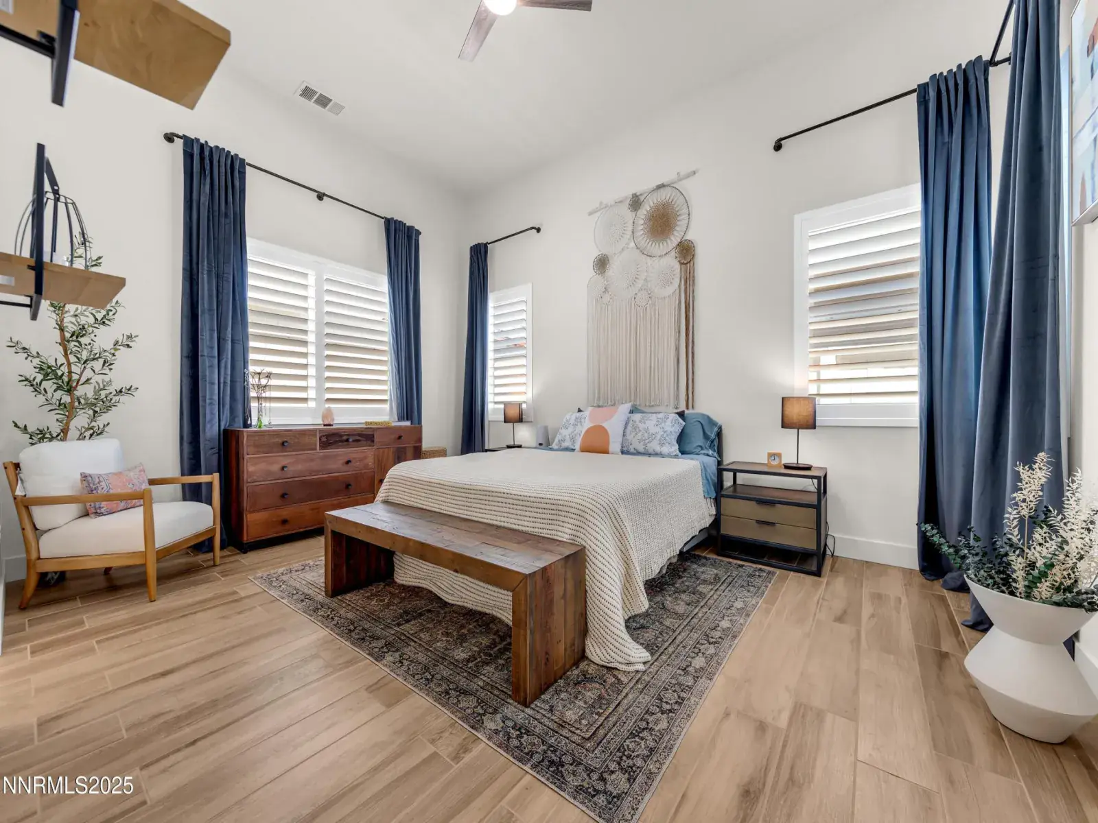 Welcome to luxury lifestyle living at Cantaro in Rancharrach! Tucked behind private gates, this exquisite home offers 2 bedrooms, 2 bathrooms plus an office, all on a premium corner lot. Enjoy the convenience of being less than 10 minutes from the Reno Tahoe airport and downtown Reno, making travel and city outings a breeze. Additionally, Lake Tahoe is just 45 minutes away, offering endless recreational opportunities. The thoughtfully chosen neutral color palette throughout the home makes it easy for you to, make this home your own! The open concept floor plan features double ovens in the kitchen, perfect for culinary enthusiasts. Step outside to a fully landscaped, low-maintenance backyard featuring raised redwood vegetable beds with an automatic drip system. The covered patio is plumbed for a gas BBQ and equipped with speakers, lights, and fan wiring, ideal for outdoor entertaining.Inside, discover two shower heads in the primary bath, California closets in the primary bedroom, and high ceilings throughout adding to the spacious ambiance. Experience modern living with smart home features including ecobee for heating and cooling, a Rinnai tankless water heater, and myQ garage technology. Don’t miss this opportunity to own a home that combines comfort, convenience, and sophistication in one desirable location!
