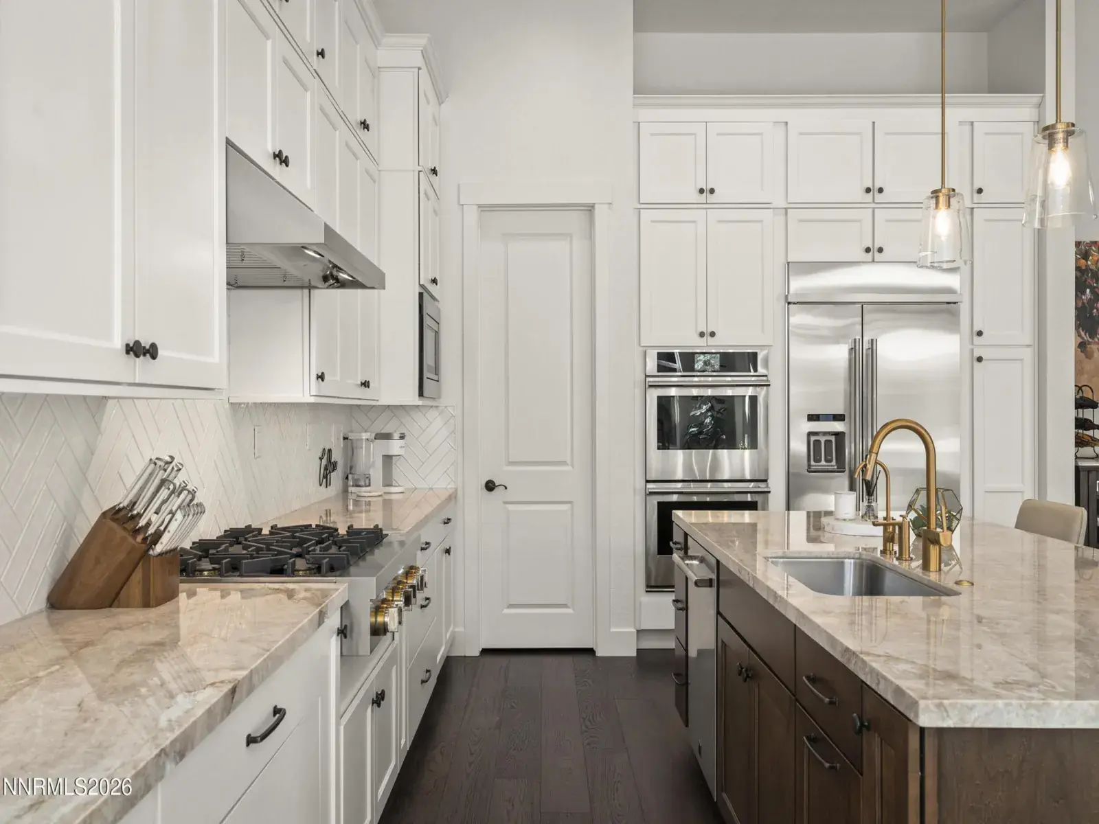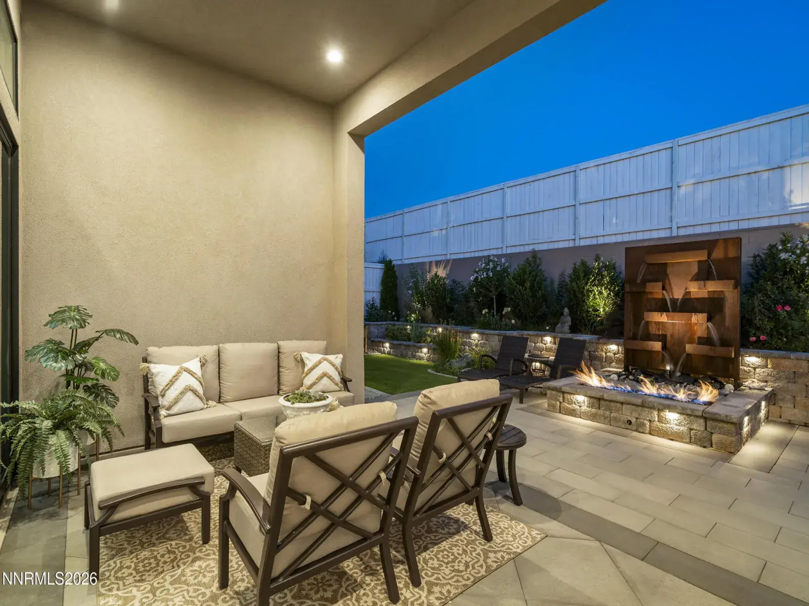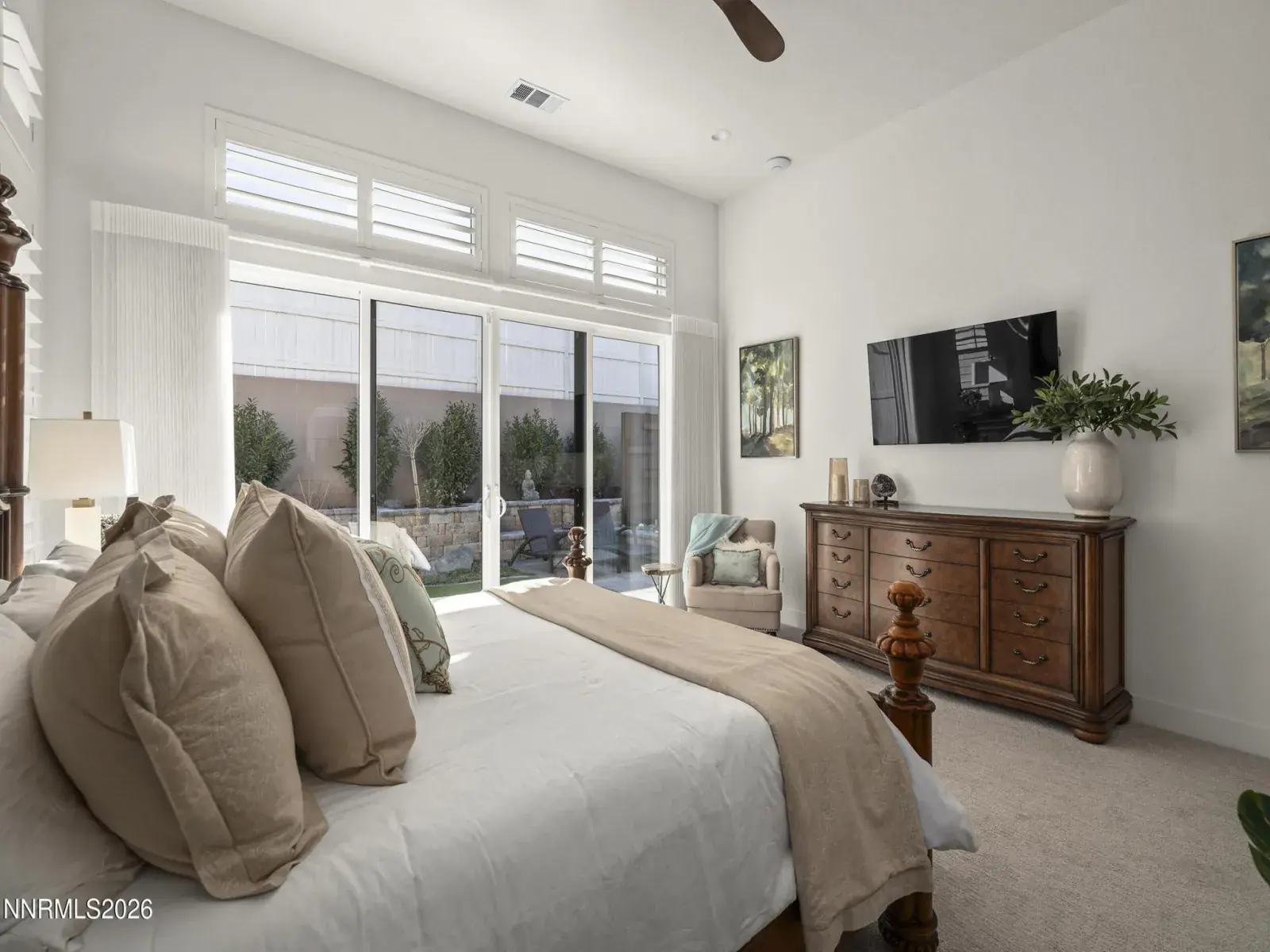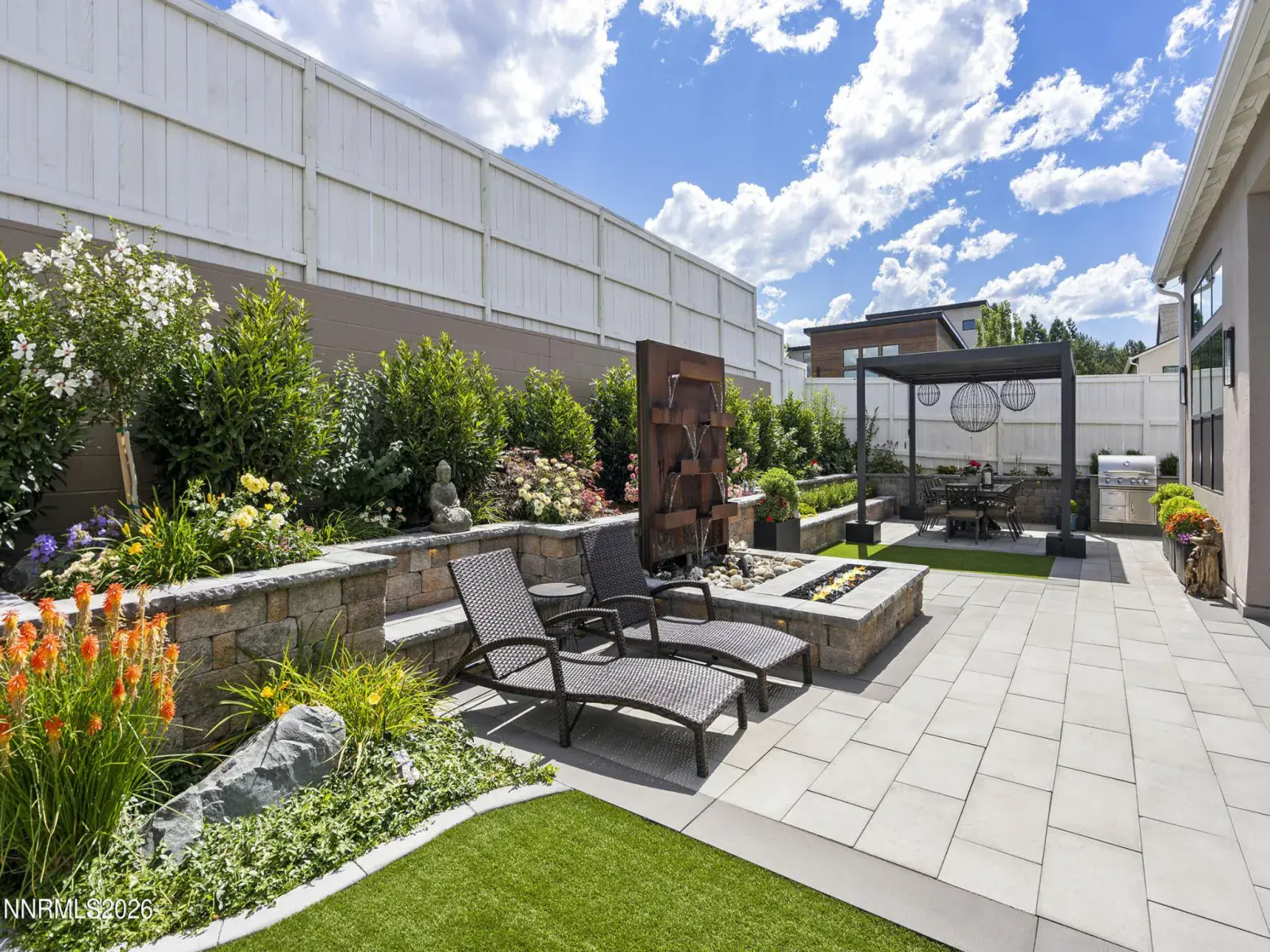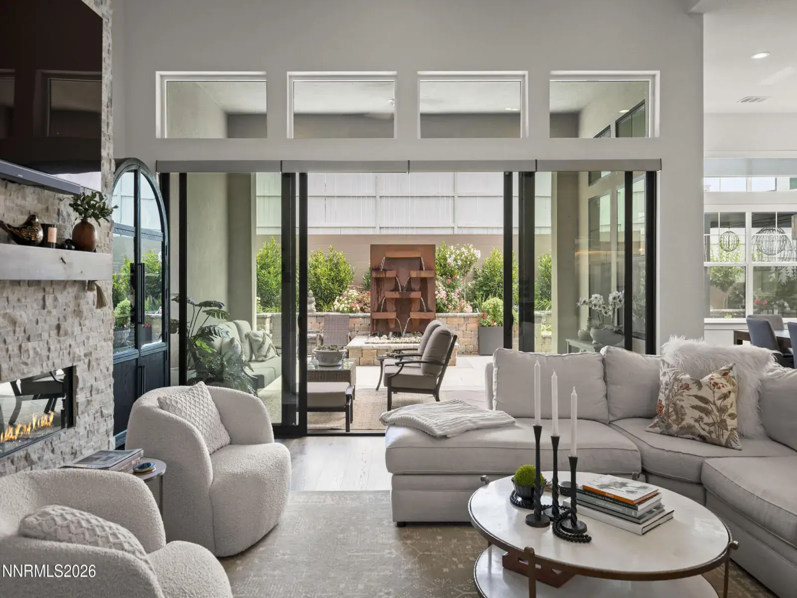 Experience elevated living in the prestigious gated community of Rancharrah. This impeccably upgraded residence offers 3 bedrooms, 3 full en-suite bathrooms, and an elegant powder room for guests—thoughtfully designed for both privacy and entertaining. No detail has been overlooked, with high-end finishes throughout, including beautiful oak flooring and a stunning chef’s kitchen anchored by Taj Mahal quartzite countertops and fully upgraded JennAir appliances. The dramatic floor-to-ceiling stone fireplace serves as the show-stopping focal point of the great room, creating the perfect setting for cozy evenings, while the dining area—highlighted by a striking chandelier—flows seamlessly and fills the space with natural light. Custom California Closets and added built-in shelving in the guest suites maximize storage while maintaining clean, designer lines. Hunter Douglas shades and shutters have been upgraded throughout, offering both sophistication and functionality. The backyard is a true retreat—professionally completed with a tranquil water feature, fire pit, built-in barbecue, and full drip irrigation system for effortless maintenance. Ideal for entertaining or relaxing under Reno’s expansive skies. Residents enjoy exceptional resort-style amenities at The Club at Rancharrah, just a short distance away, featuring a pool with cantina and poolside service, private dining at Nineteen 57, a three-level fitness center with classes, spa and salon, pickleball and bocce courts, and curated social events for all ages. Beyond the gates, The Village at Rancharrah offers fine dining, boutiques, and wellness services. Ideally located near Bartley Ranch Regional Park, Reno-Tahoe International Airport, Midtown, and Downtown Reno—with Mt. Rose Ski Tahoe just 18 minutes away and Lake Tahoe only 40 minutes from your door. Don’t miss your opportunity to own in one of Reno’s most sought-after luxury communities. This home offers modern elegance, thoughtful upgrades, and turnkey convenience.