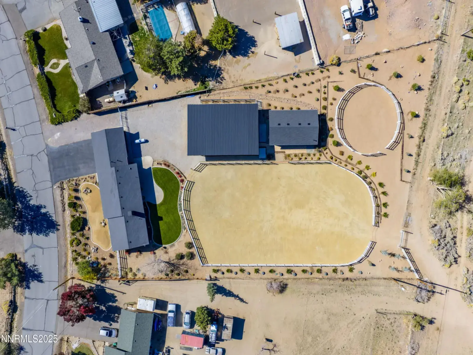 Set on 1.23 acres of serene South Reno countryside, this rare equestrian estate offers the best of both worlds; modern living paired with the timeless charm of country life. Thoughtfully designed for those who value space, style, and connection to the outdoors, every detail of this property tells a story of balance and beauty. The fully equipped equestrian facilities feature five extra wide horse stalls, a large riding arena, round pen, and a wash-station crafted to support both leisure riding and serious training. Inside the single-level main residence, the living spaces flow effortlessly from the kitchen to the dining and living areas warmed by a pellet stove. The home’s fresh, modern exterior and open-concept design reflect a contemporary aesthetic while maintaining an inviting, homey feel. The detached 960 square foot guest studio redefines versatility. Offering a sleek, fully remodeled retreat with a full kitchen, bath, 9+ft ceilings, stainless steel appliances, a Murphy bed, and an oversized walk-in shower. Whether used as a multi-gen suite, private guest quarters or creative workspace, it’s a space that adapts to your lifestyle. Outdoors, lush yet low-maintenance landscaping surrounds inviting gathering spaces. There’s also ample side-yard parking for an RV, horse trailer, or toys of choice. This property blends practicality and pure enjoyment all in one!