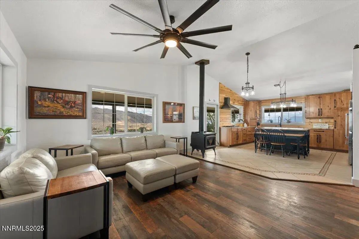 Every detail reflects pride of ownership, with thoughtful updates throughout the home in recent years. Outside, you’ll find both an attached 2-car garage and a detached 2-car garage, perfect for vehicles, tools, or hobbies. RV parking with partial hookups makes welcoming guests or planning adventures simple. Imagine evenings on the covered porch, watching Nevada’s famous sunsets paint the sky, or catching glimpses of wildlife crossing your land.
