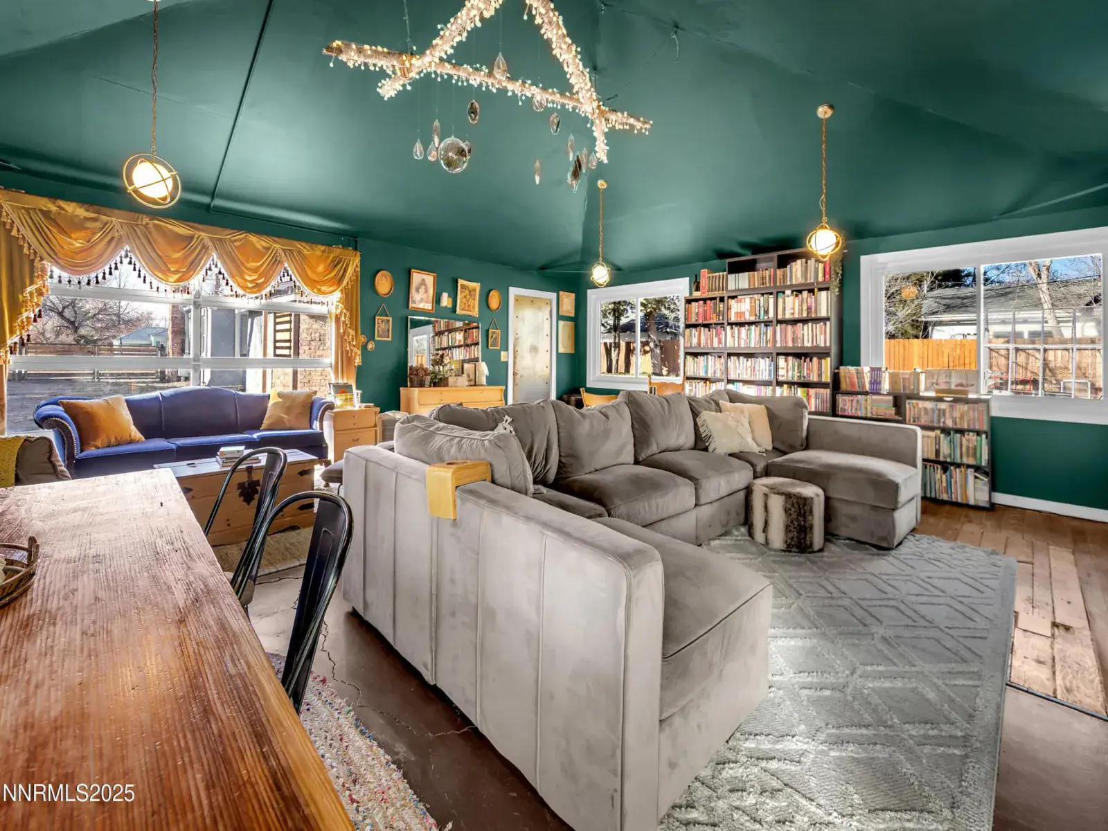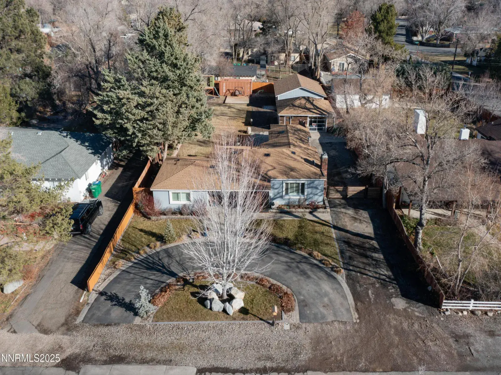 OPEN HOUSES Fri. 1/9 4-6pm and Sat. 1/10 11am-1pm. Midcentury soul with vintage elegance, crafted for modern living. Exceptional Old Southwest Reno residence designed for buyers who value open spaces, room to be creative, and a coveted location. Set on over 1/3 acre, the property offers rare flexibility with a detached studio/flex space (approximately 525 additional sq ft, not included in the home’s square footage), a second oversized two-car garage with workshop, RV parking, and thoughtfully curated custom details throughout. At the heart of the home, the great room impresses with warm wood floors, plantation shutters, and a striking fireplace enhanced by a new wood-stove insert for added efficiency and ambiance. The updated kitchen is equal parts beautiful and functional, featuring double ovens, a cabinet-faced built-in refrigerator, wine fridge tucked into the island, and a brand-new JennAir induction cooktop (to be installed 1/20). Functional floor plan flows effortlessly with three bedrooms—two en-suite—plus a dedicated office/den and laundry room. Recent improvements include a new septic leach field (four lines to 45′), newly planted pine trees in the front yard, fresh sod in the backyard, and multiple newer windows throughout. The backyard is where this home truly flexes…complete with a covered outdoor dining room, expansive lawn, paver patio off the primary suite, greenhouse, kid’s playhouse, raised garden bed, gated driveway, and even a cargo container for additional storage. No HOA. Low property taxes. Convenience and community: Located just around the corner from Rivermount (Triangle) Park, minutes to Midtown, Downtown, and Caughlin Ranch trails. Zoned for top schools: Roy Gomm, Swope and Reno High. Add in quick access to Mayberry Raley’s (2 minutes), Reno-Tahoe International Airport (10 minutes), and Truckee (30 minutes), and you have something truly special.