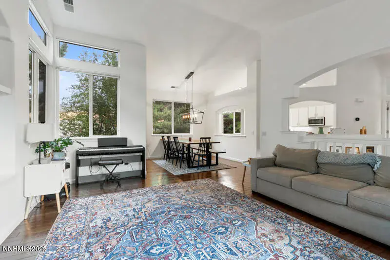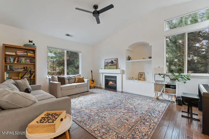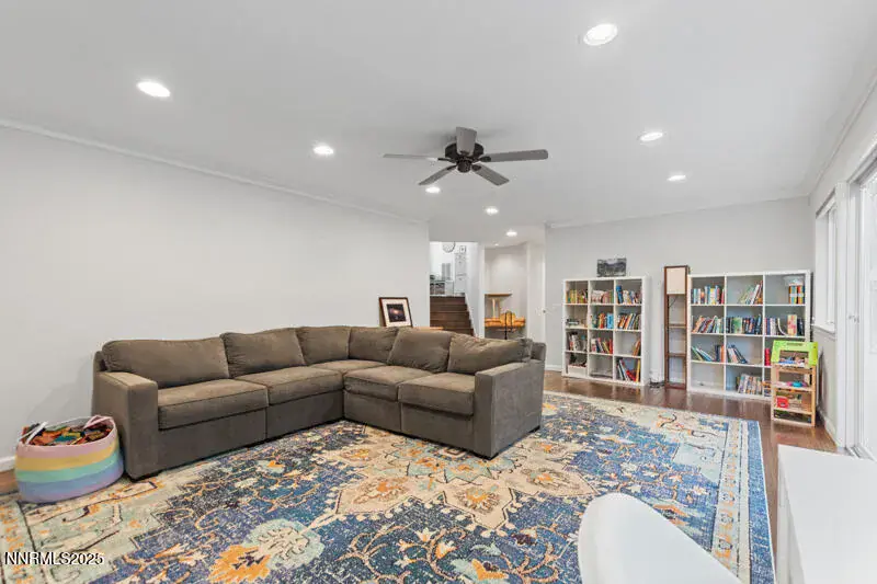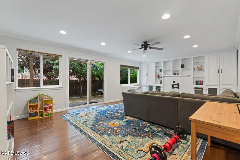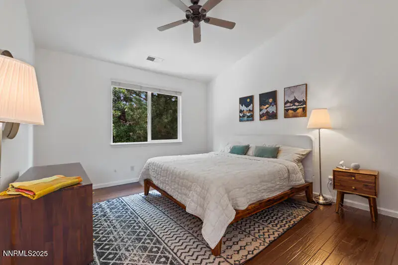 Just went back on the market!! Fantastic opportunity. Tucked away on a quiet cul-de-sac in one of West Reno’s most sought-after neighborhoods, this stunning home offers both privacy and convenience — with no HOA and a rare 3-car garage. The serene backyard feels like a retreat, surrounded by mature trees that provide shade, privacy, and a beautiful backdrop for outdoor living. Inside, you’ll find fresh neutral paint, richly toned hardwood floors, and a functional layout designed for flexibility. The main-level primary suite includes a versatile bonus area — ideal for a home office, nursery, or reading nook. Downstairs, a spacious flex room opens the door to endless possibilities: a 4th bedroom, gym, second living area, or den with gorgeous custom built-in cabinetry. The kitchen features slab granite counters, crisp white cabinetry, and updated recessed lighting, creating a bright and modern space to gather. Located just minutes from hiking trails, the Truckee River, and everyday amenities, with quick access to McCarran and I-80, this home blends peaceful living with city convenience.